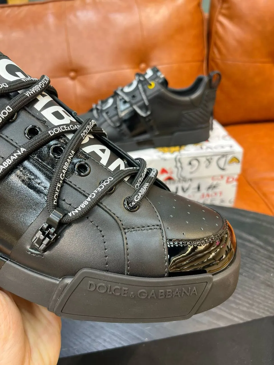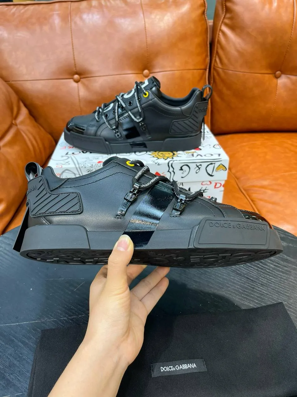 Шнуровка дополнена декоративными элементами и крупным логотипом DOLCE, что делает дизайн узнаваемым и уникальным. Контрастная подошва обеспечивает комфорт и отличную амортизацию при ходьбе. Эти кроссовки идеально подойдут для создания стильных городских образов, сочетая комфорт, люкс и современную энергетику бренда Dolce & Gabbana.