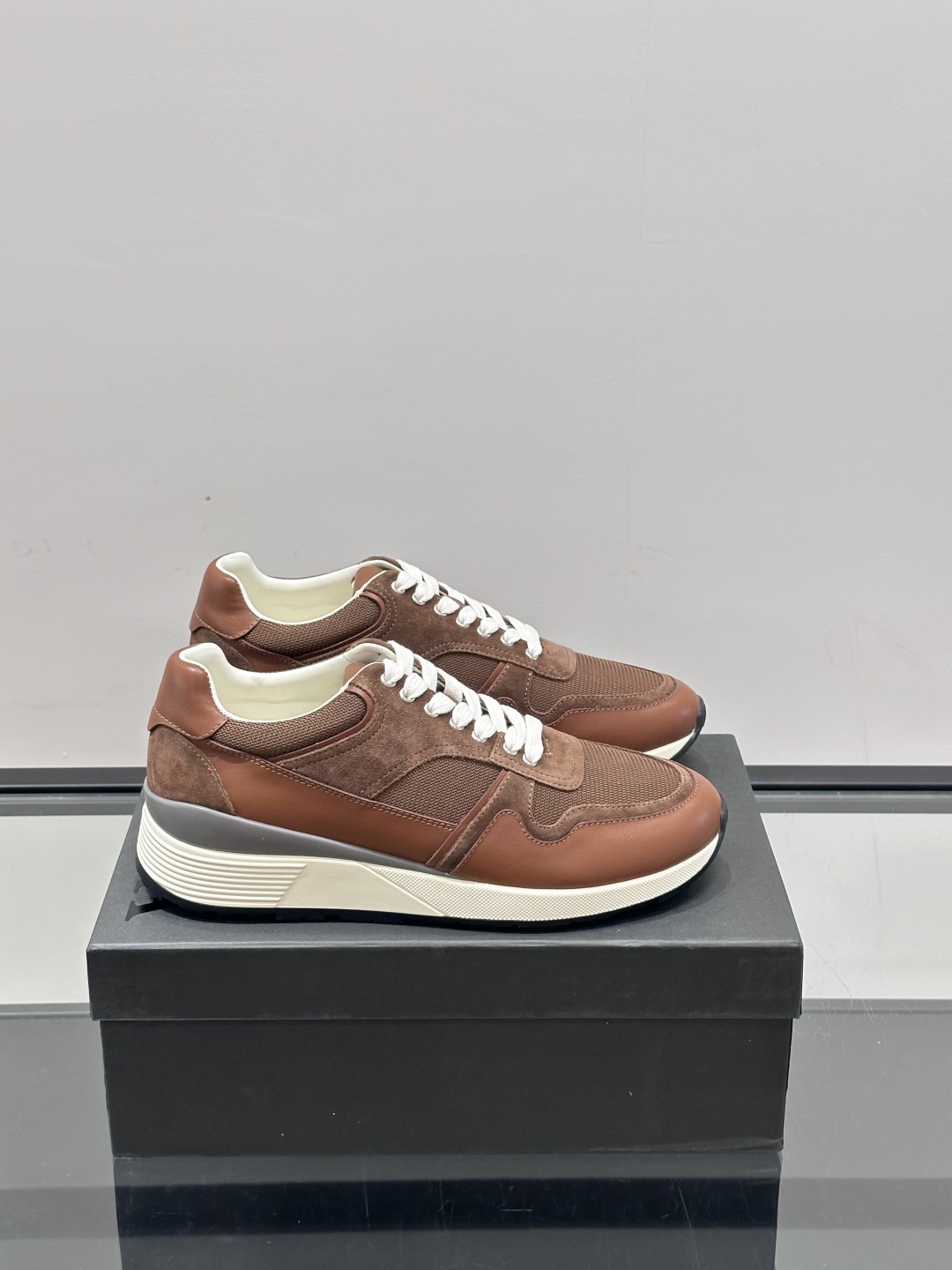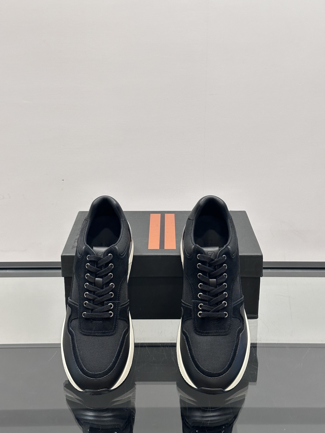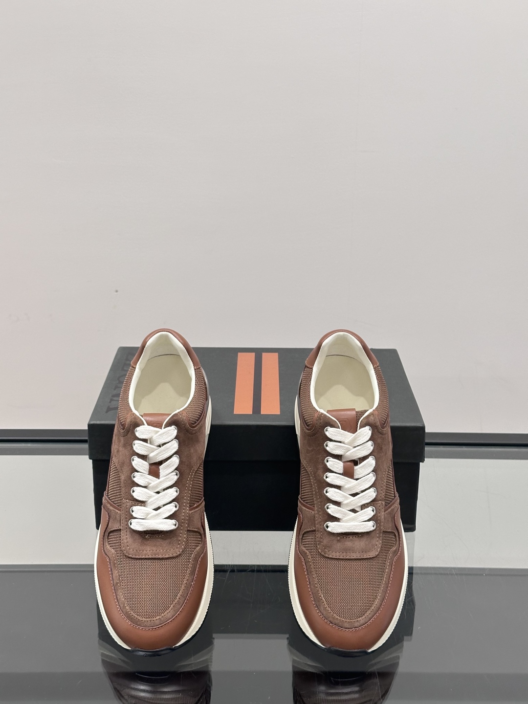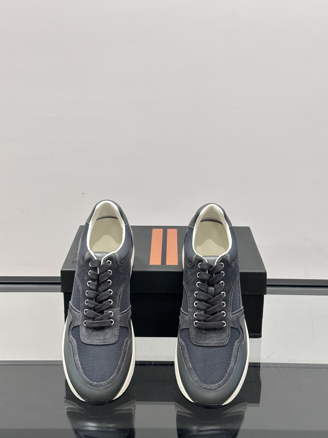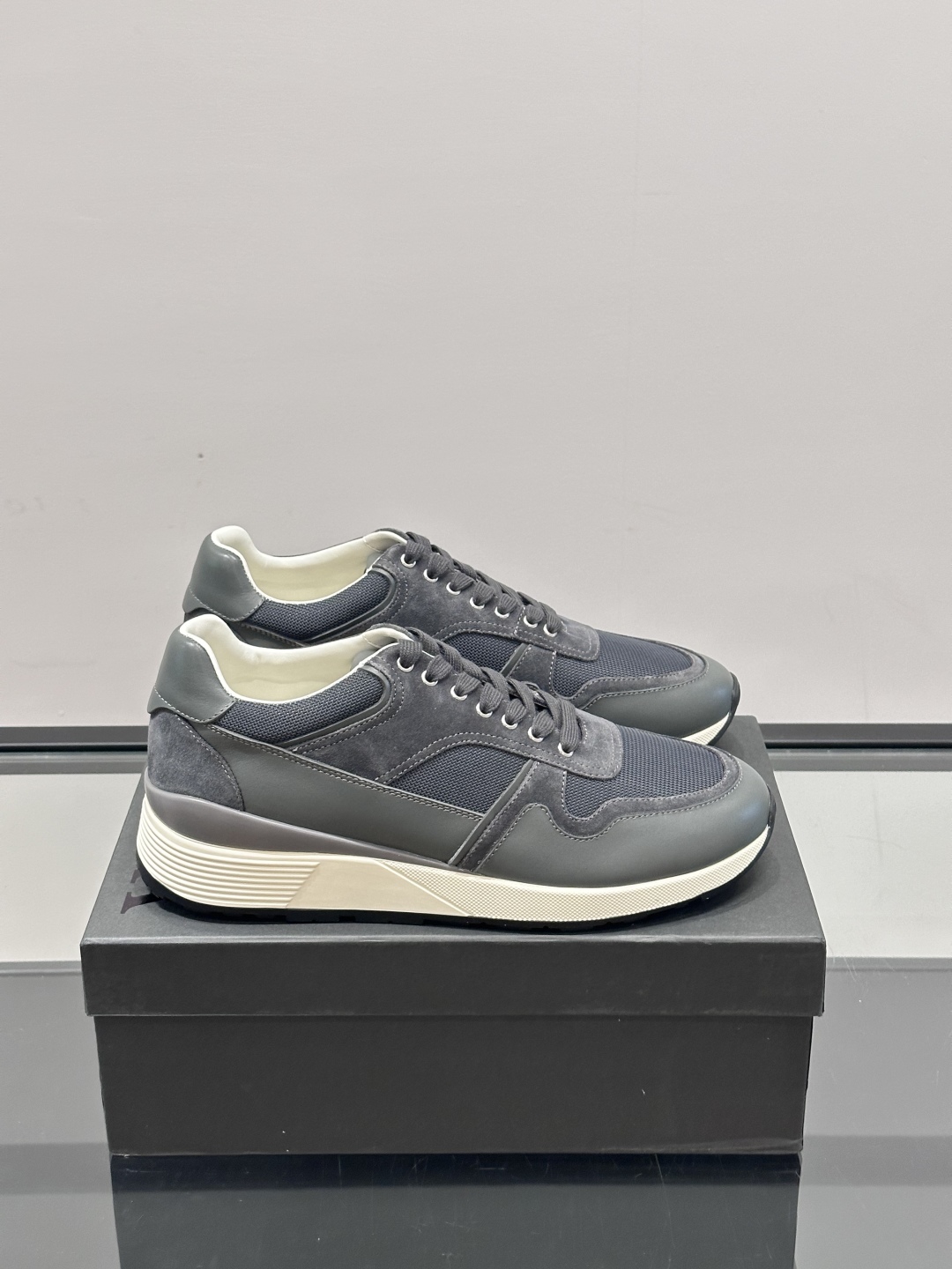Стильные мужские кроссовки от Ermenegildo Zegna — воплощение итальянской элегантности и современного комфорта. Верх выполнен из высококачественной телячьей кожи и текстиля, что обеспечивает исключительную мягкость, долговечность и приятные тактильные ощущения.