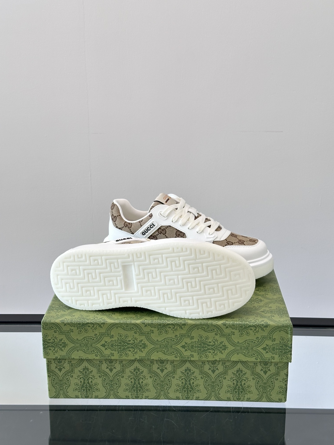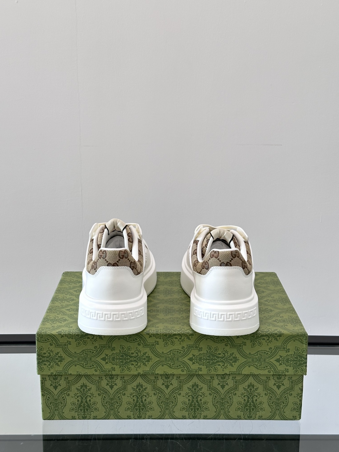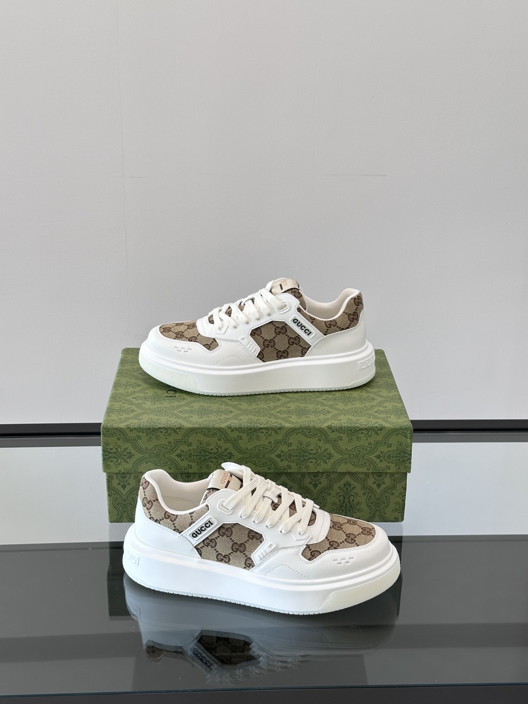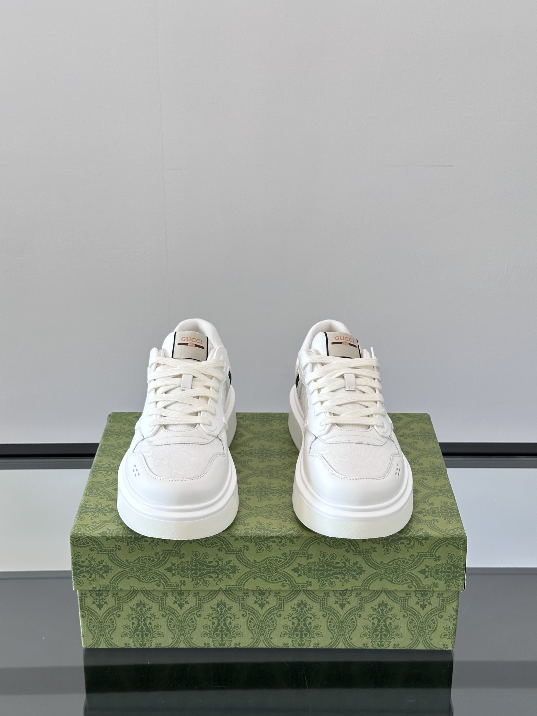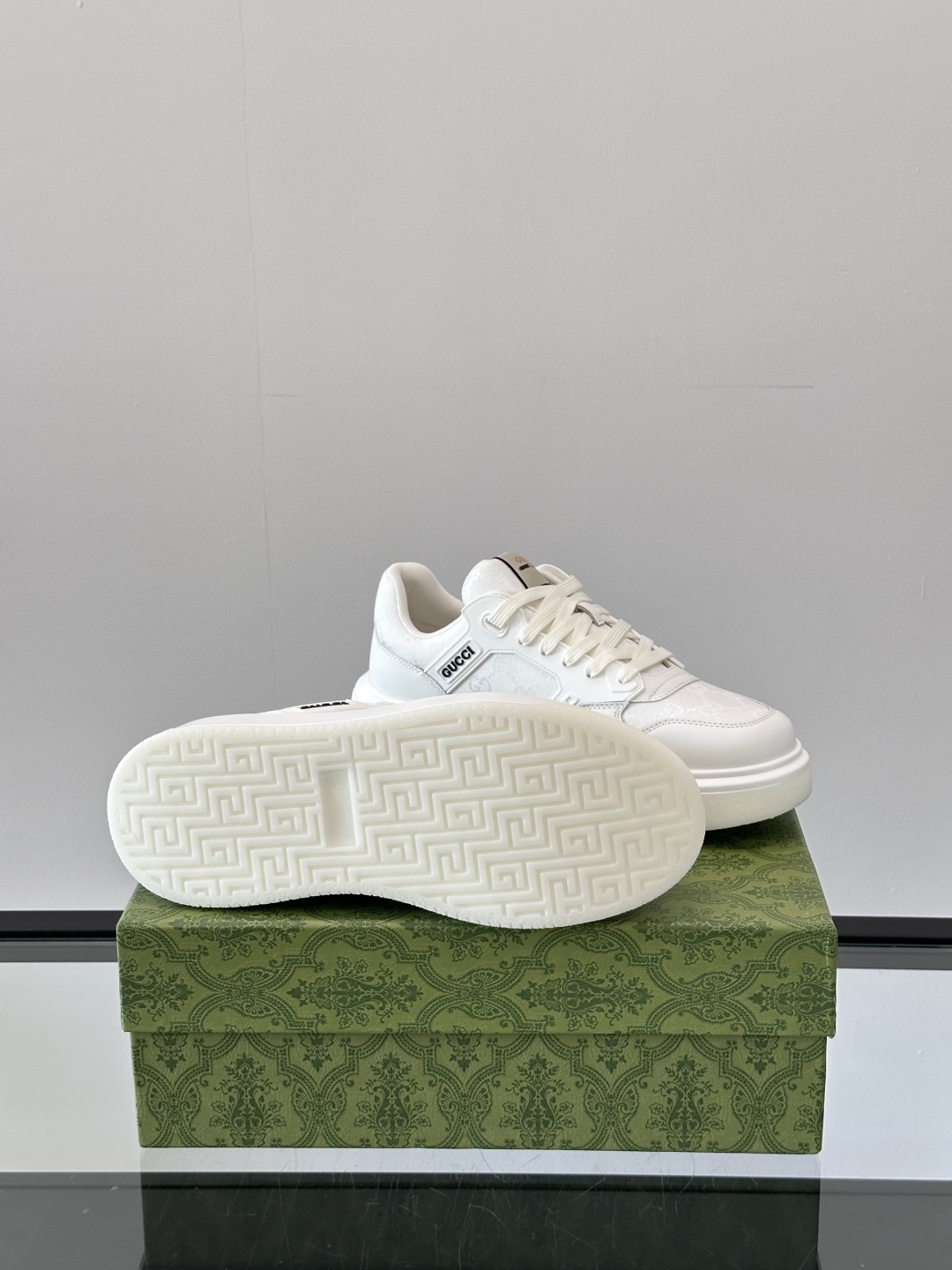 Стильные мужские кроссовки от GUCCI изготовлены из высококачественной импортной коровьей кожи, что гарантирует их долговечность и безупречный внешний вид. Простой и лаконичный дизайн обеспечивает комфорт при ношении, а подкладка из натуральной коровьей кожи первого слоя дарит ощущение мягкости и превосходной воздухопроницаемости. Язычок кроссовок украшен фирменным логотипом GUCCI, добавляя узнаваемый акцент. Внимание к деталям проявляется в каждой строчке, а внутренняя отделка из коровьей кожи первого слоя, окрашенной с использованием водной технологии, обеспечивает исключительный комфорт на протяжении всего дня. Эти кроссовки – идеальное сочетание роскоши, комфорта и стиля.