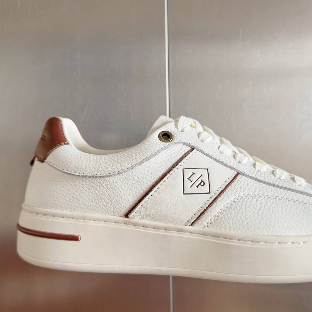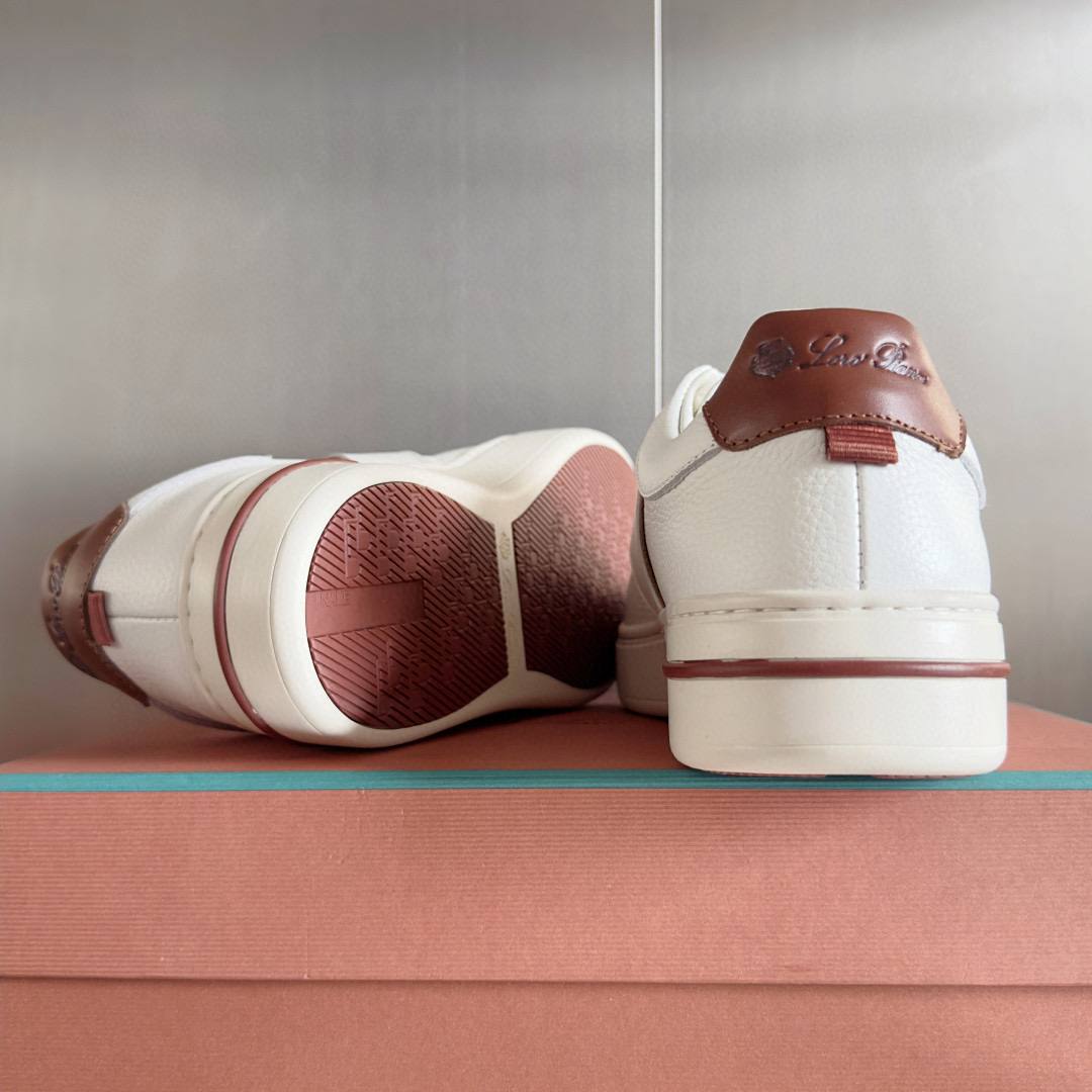 • Дизайн: Элегантный минималистичный силуэт с тонкими коричневыми акцентами на боковых панелях, вышитой монограммой Loro Piana и классическими шнурками. Белый цвет придаёт свежести и лёгкости, идеален для весны и лета, с возможностью выбора под нейтральные тона гардероба для timeless-стиля.