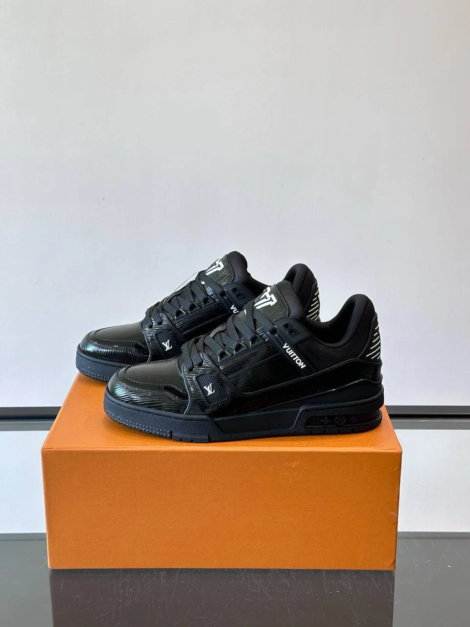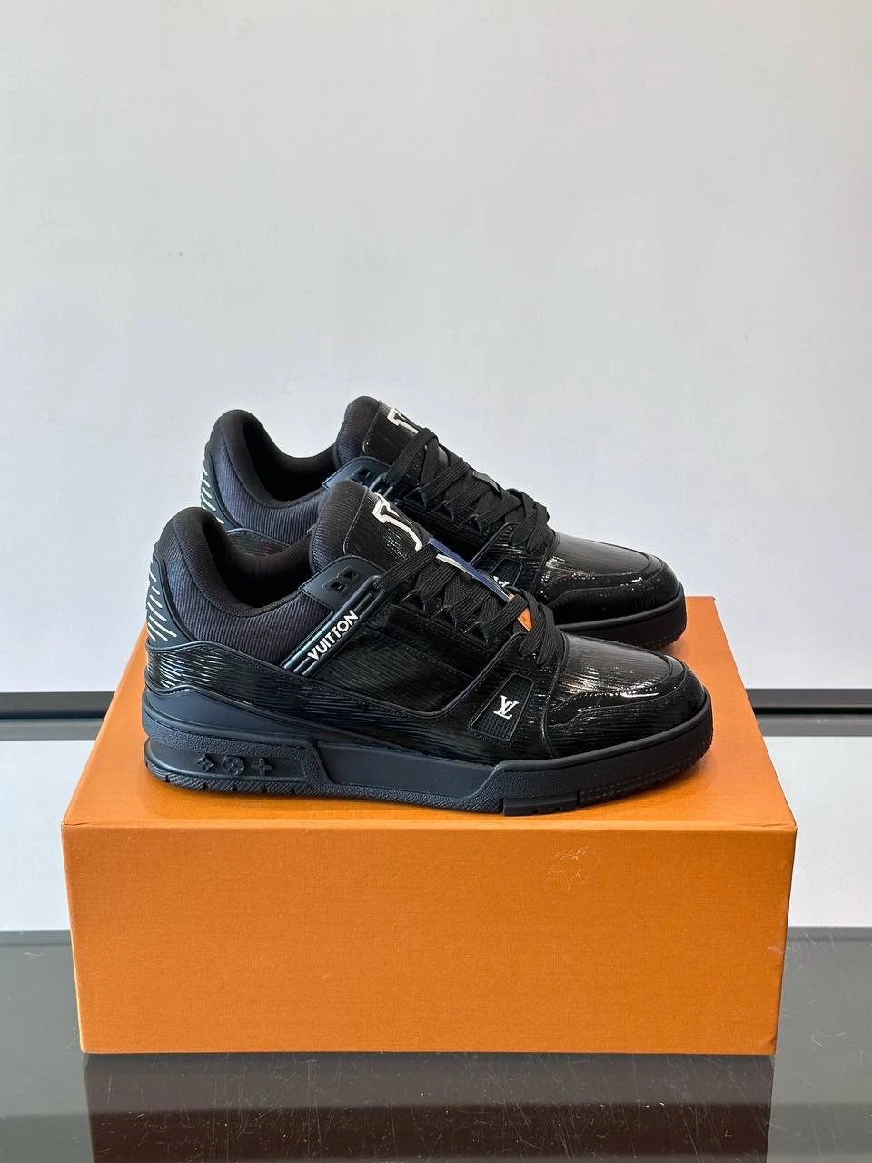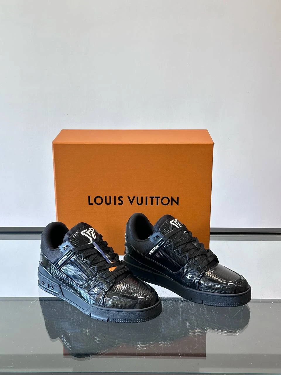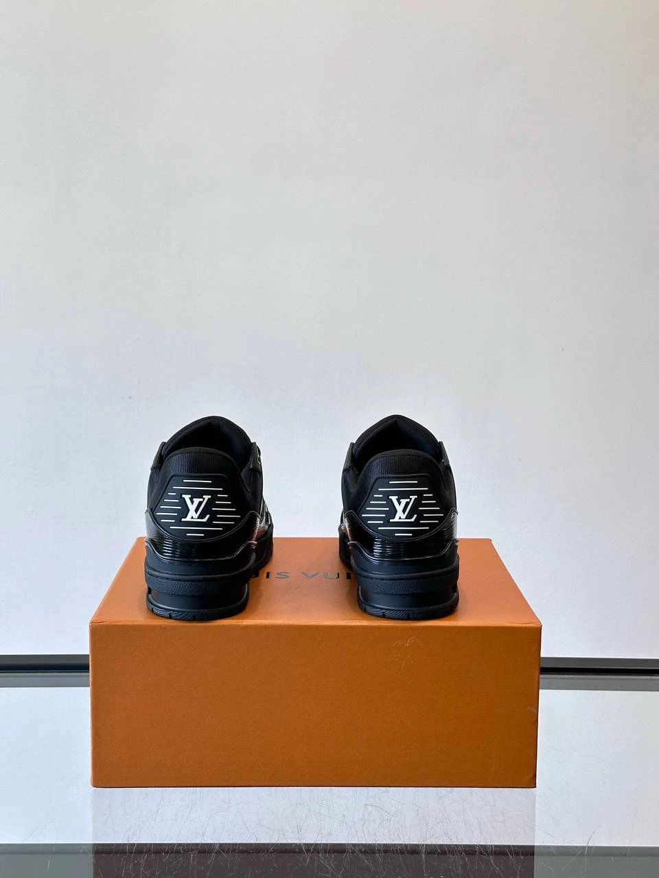• Логотипы и фирменные детали: миниатюрный LV на боковой ремешке, надпись VUITTON по боковой части и стилизованное обозначение бренда на язычке. На подошве заметна тонкая рельефная отделка с фирменными мотивами.