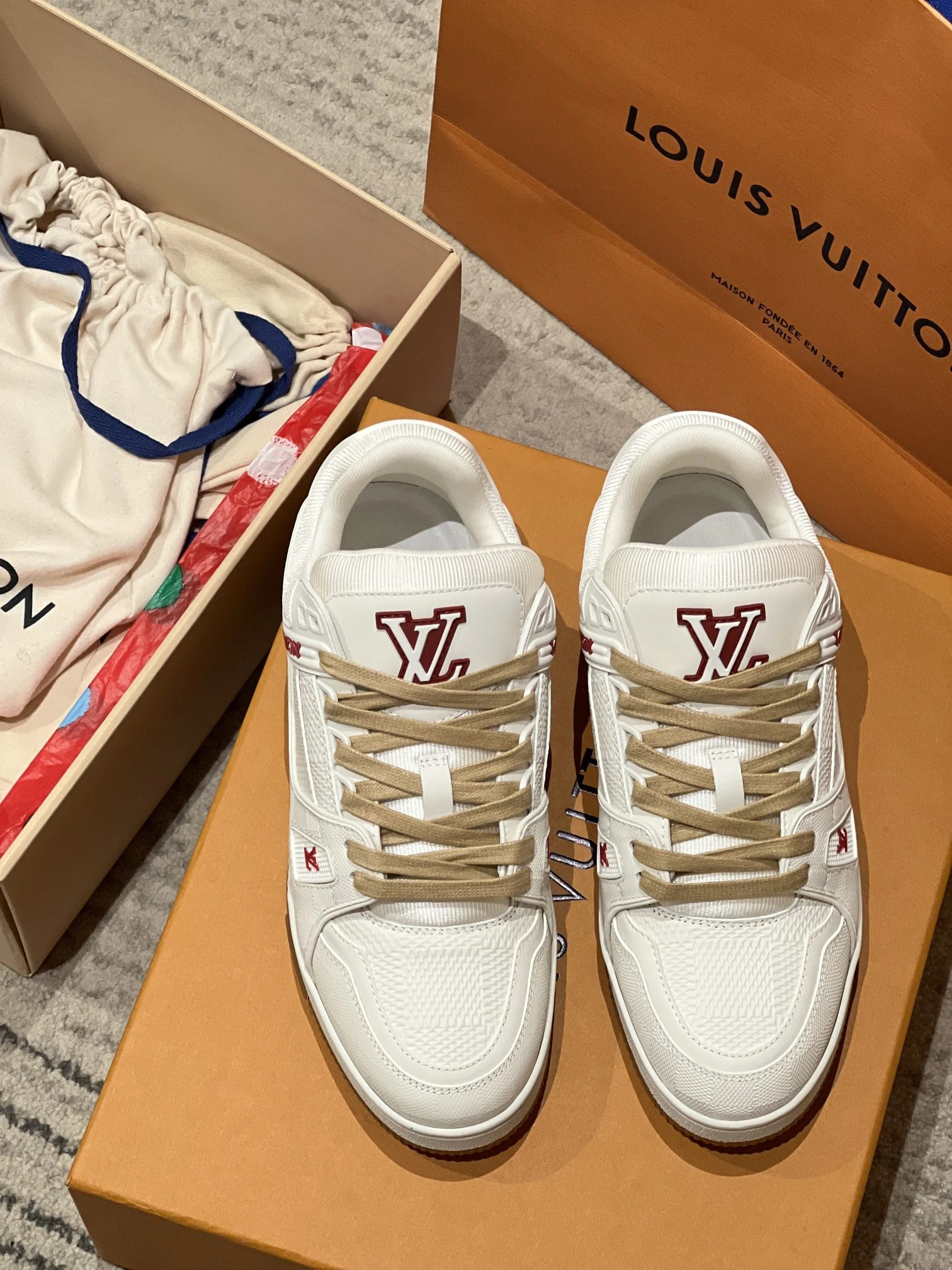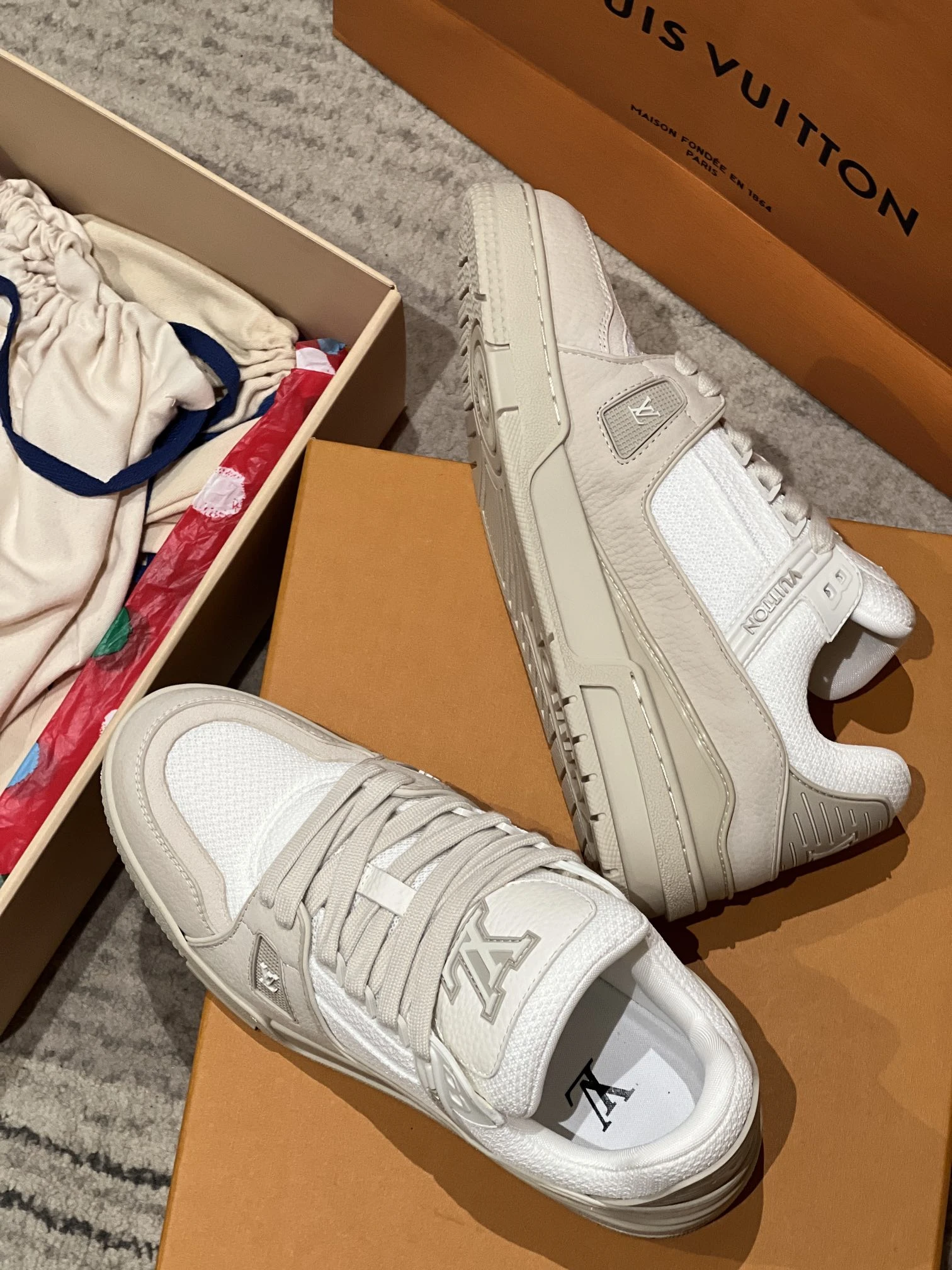 Легендарные кроссовки Louis Vuitton Trainer — сочетание премиального стиля и современного комфорта. Модель выполнена из высококачественной натуральной кожи с фирменной монограммой LV, что придаёт обуви статусный и узнаваемый вид.