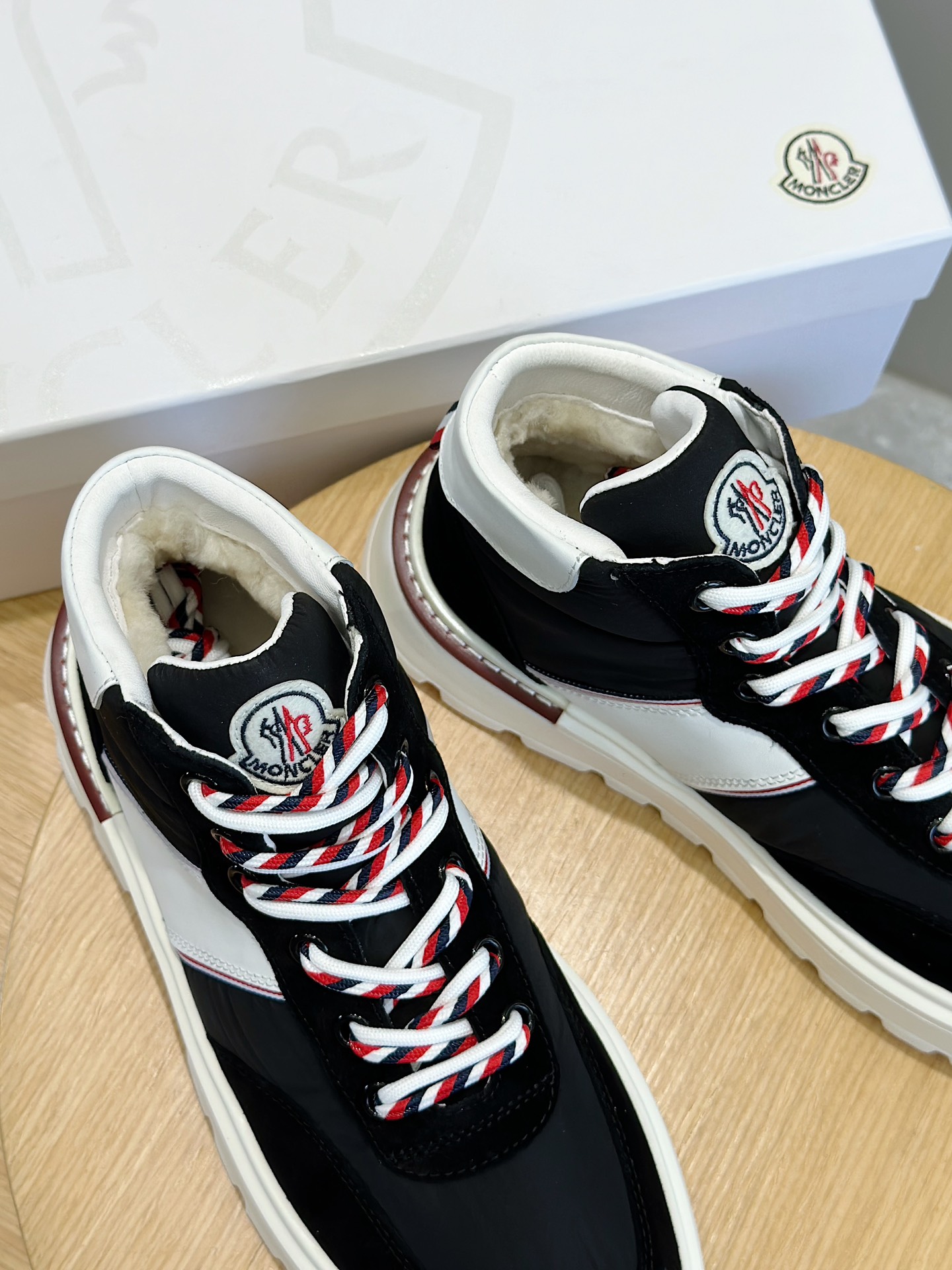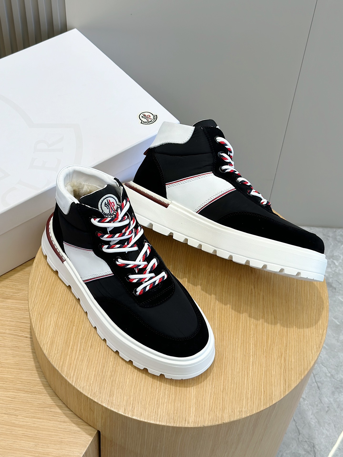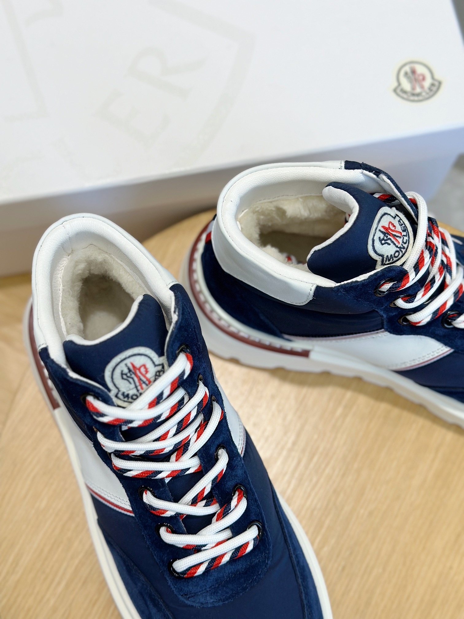 Стильный и современный дизайн кроссовок легко сочетать с различными предметами гардероба, что делает их универсальным выбором для каждого мужчины. Благодаря использованию качественных материалов, таких как импортная ткань, обувь не только выглядит привлекательно, но и обеспечивает надежную поддержку и комфорт. Подкладка из шерсти. Логотип Moncler добавляет изюминку и подчеркивает статусный бренд, в то время как прочная подошва долговечная и износостойкая.