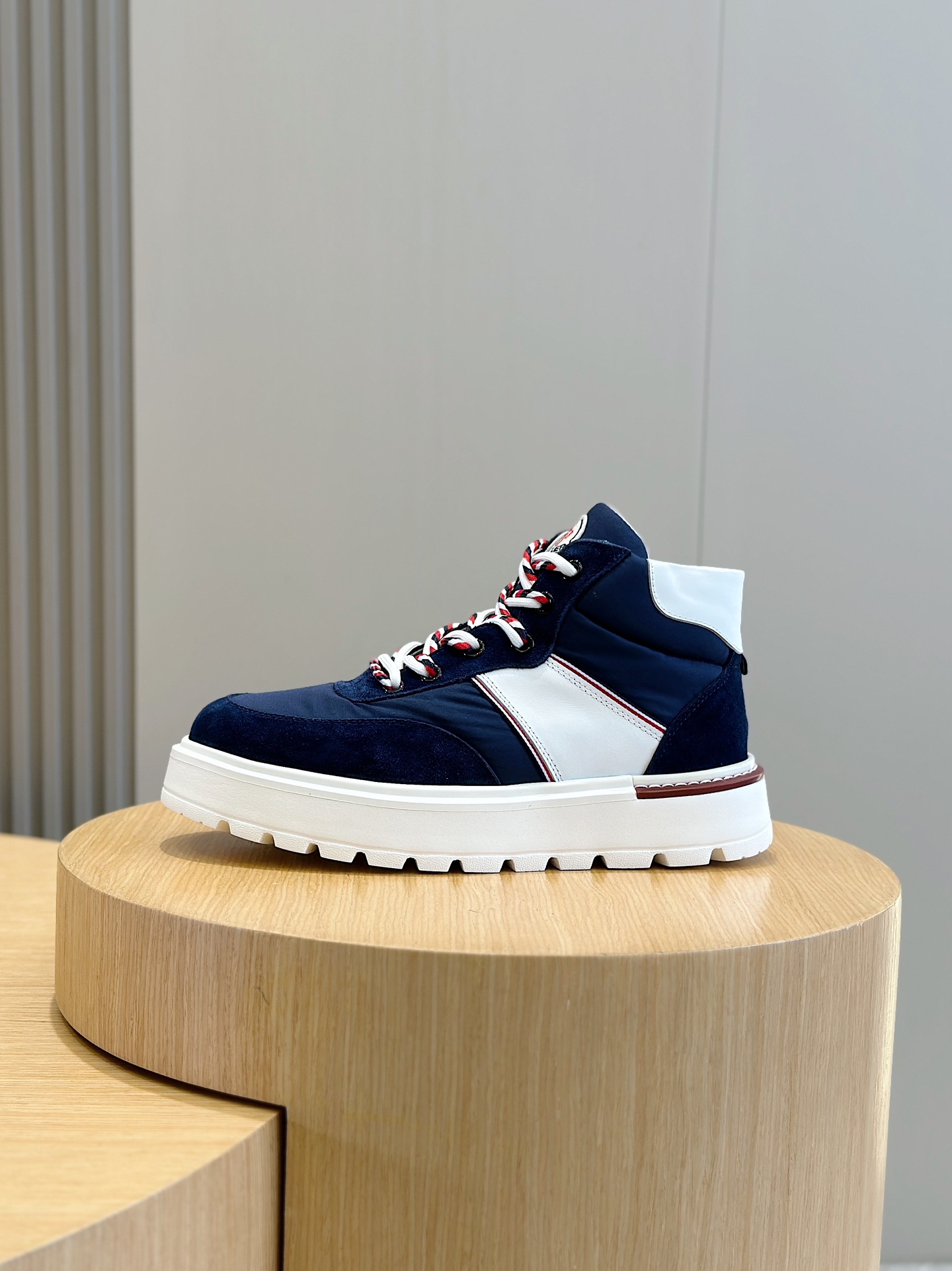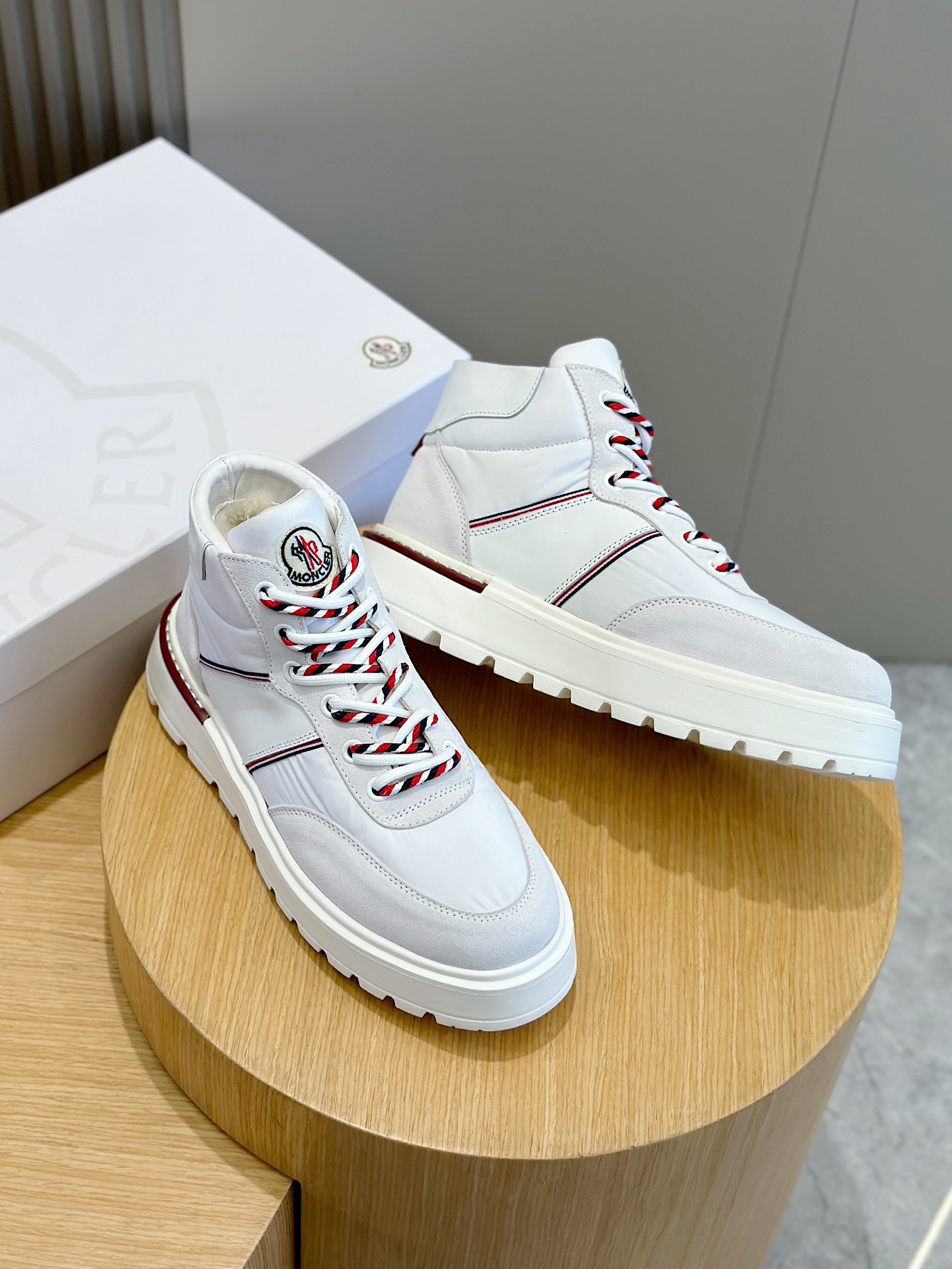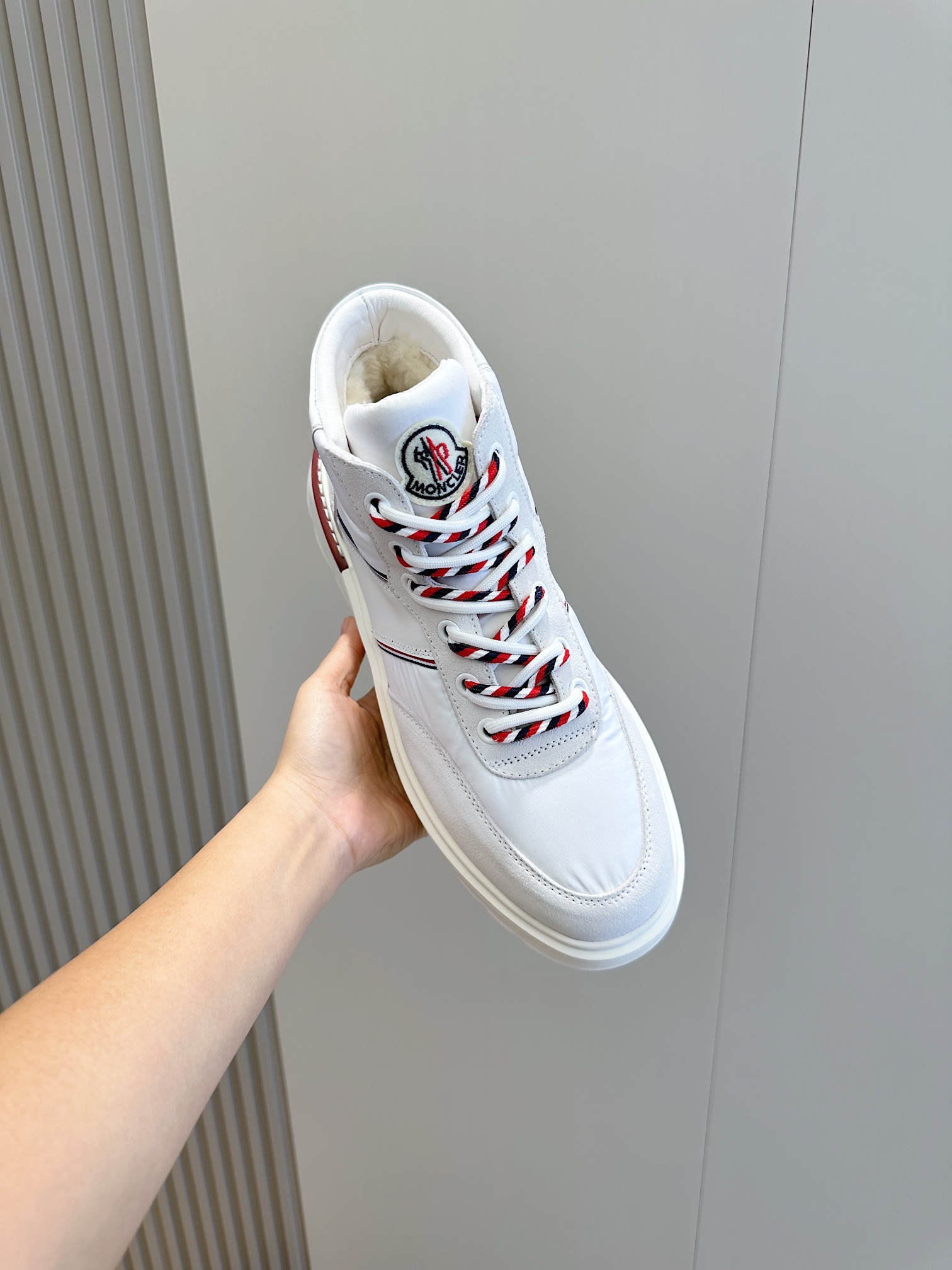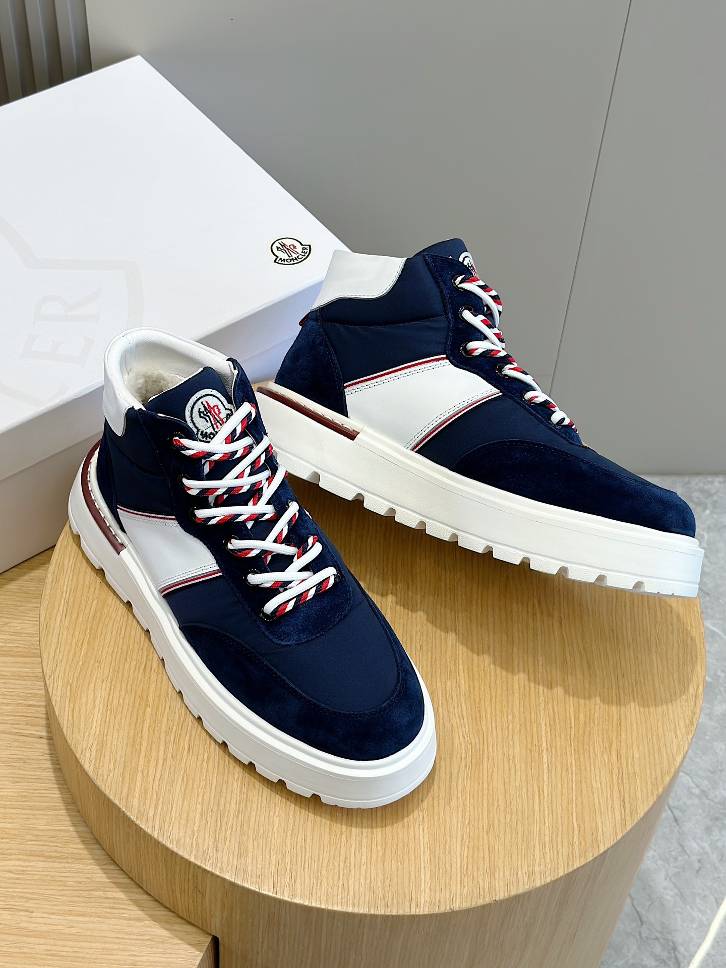 Стильный и современный дизайн кроссовок легко сочетать с различными предметами гардероба, что делает их универсальным выбором для каждого мужчины. Благодаря использованию качественных материалов, таких как импортная ткань, обувь не только выглядит привлекательно, но и обеспечивает надежную поддержку и комфорт. Подкладка из шерсти. Логотип Moncler добавляет изюминку и подчеркивает статусный бренд, в то время как прочная подошва долговечная и износостойкая.