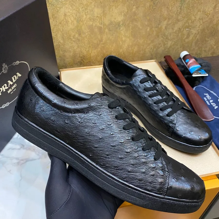 Сочетая в себе роскошь и спортивный стиль, эти кроссовки Prada станут ярким акцентом в вашем гардеробе. Выполненные из премиальной кожи страуса, они выделяются уникальной текстурой и неповторимым узором, которые подчеркнут ваш безупречный вкус.
