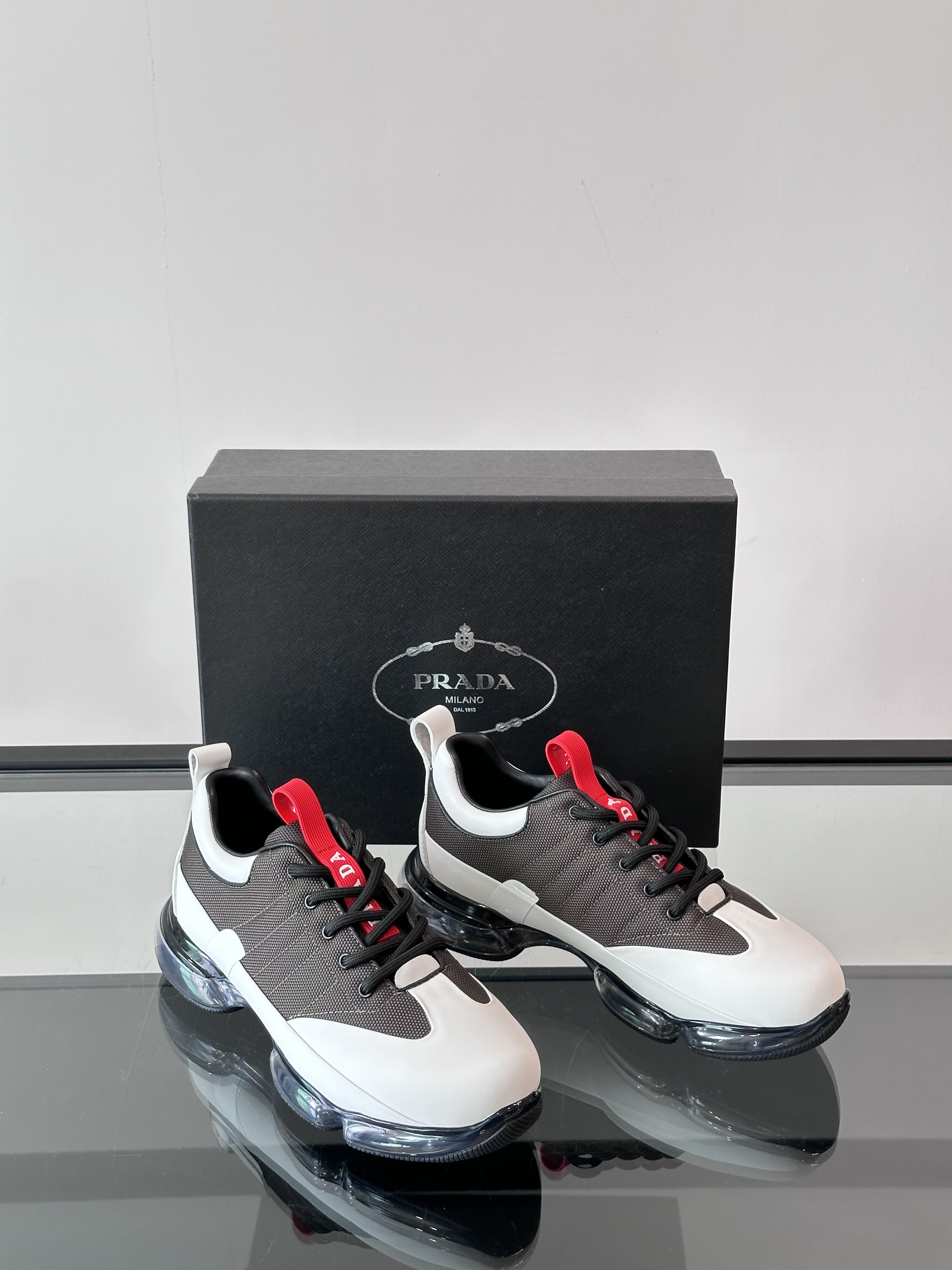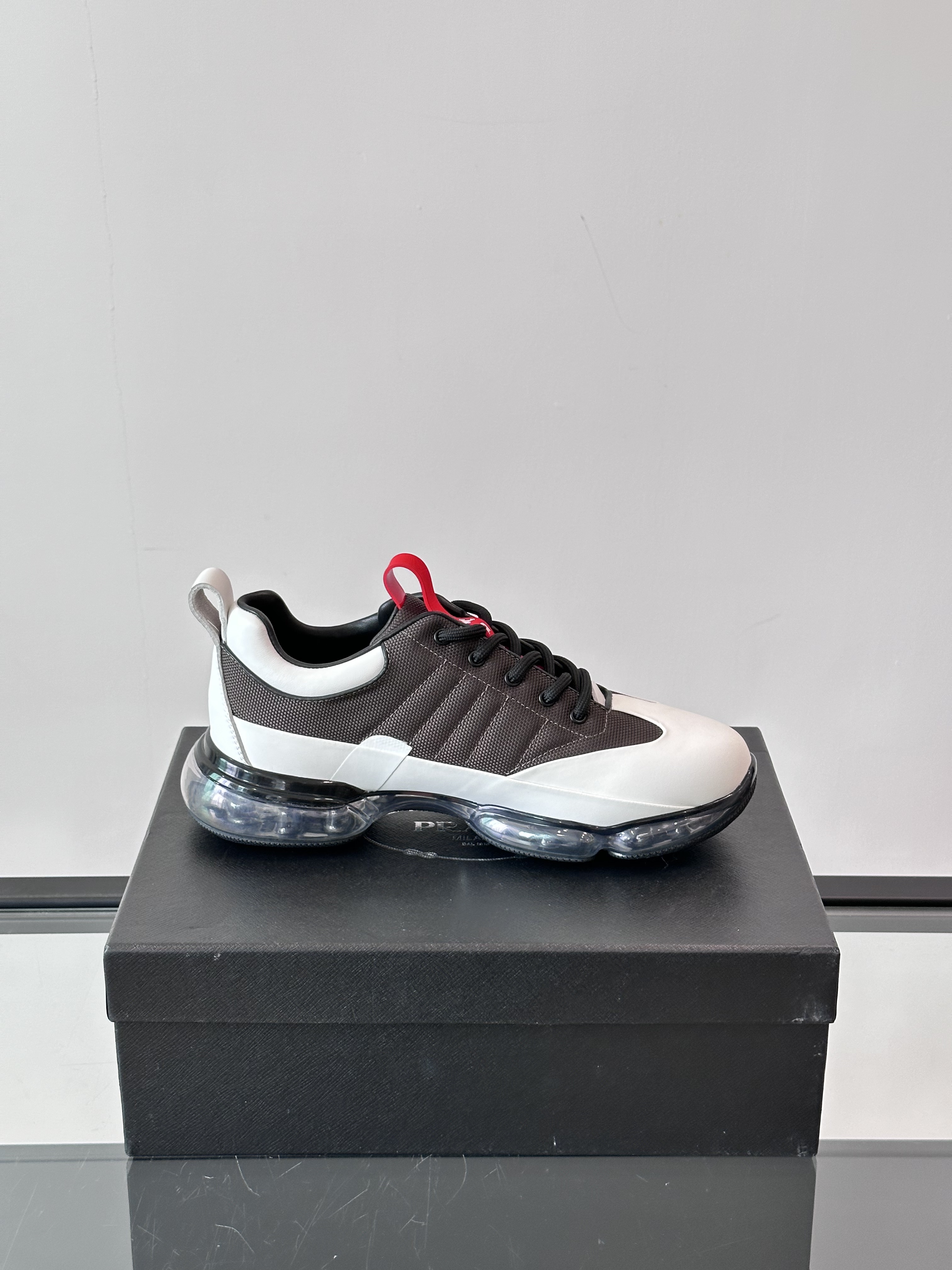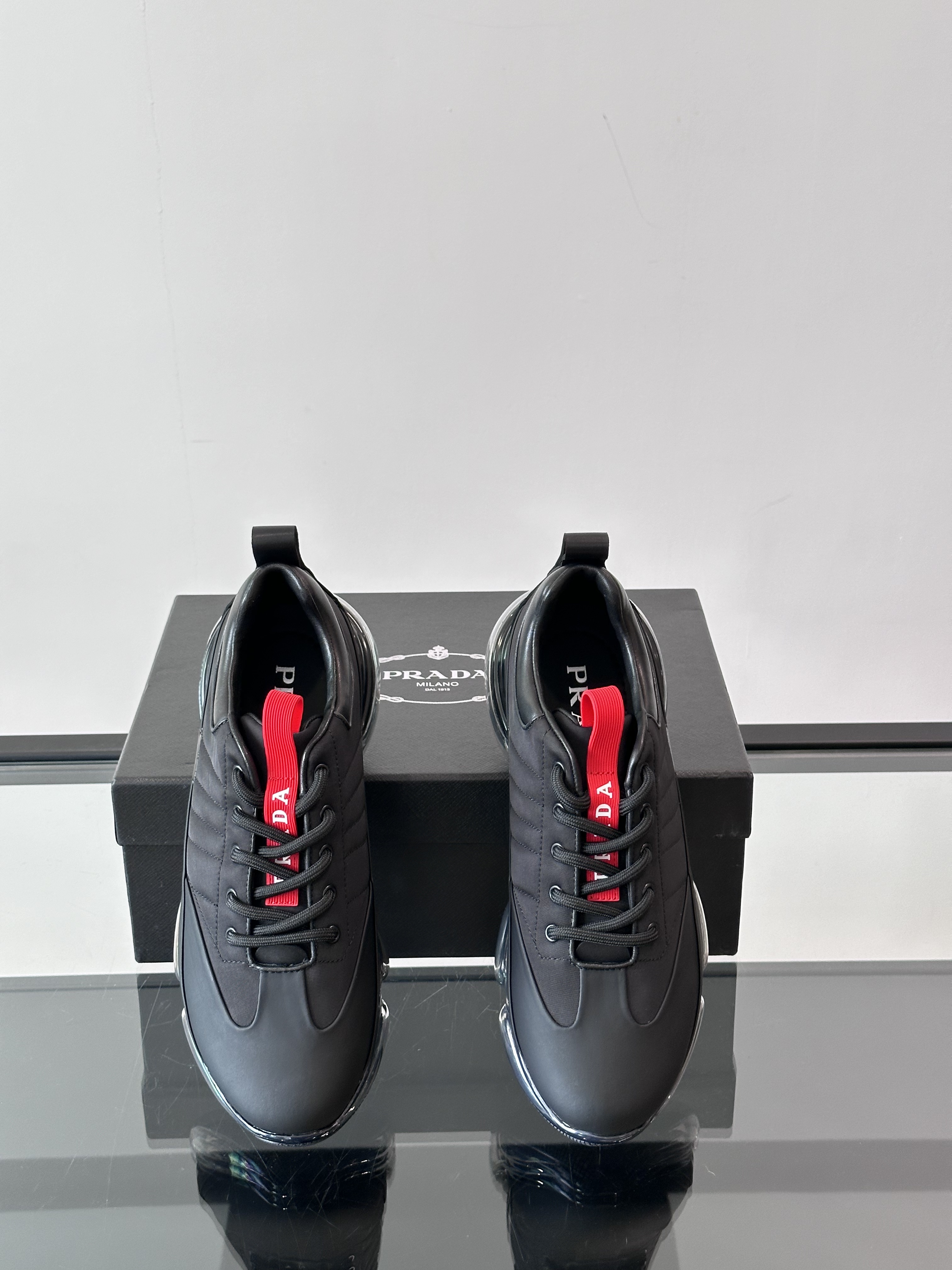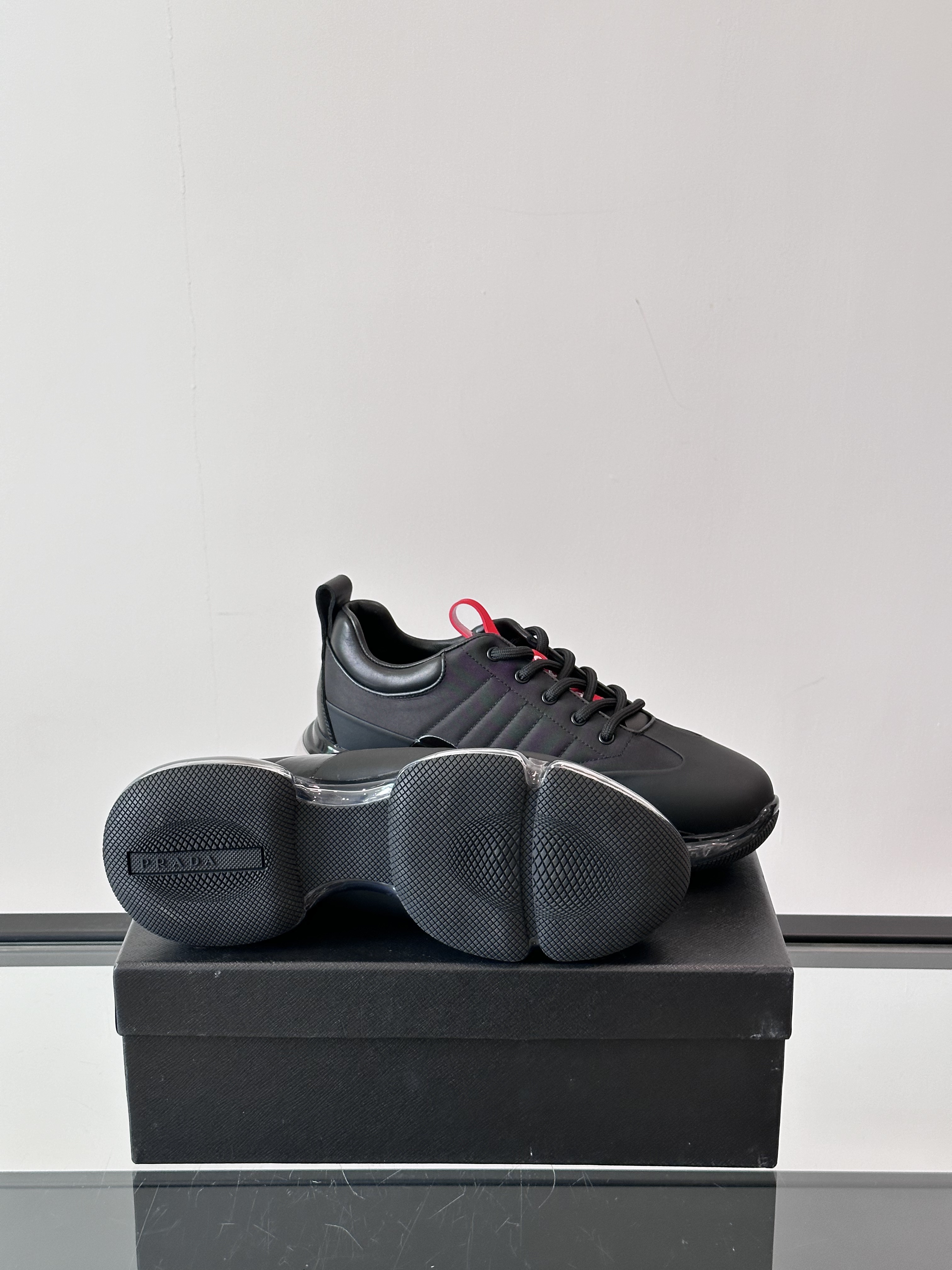 Представляем вашему вниманию новые спортивные повседневные кроссовки из кожи от Prada - воплощение роскоши и современного стиля. Эти кроссовки сочетают в себе передовые технологии и премиальные материалы, создавая идеальный баланс между комфортом и элегантностью. Верх выполнен из мягкой импортной телячьей кожи, обеспечивающей исключительную тактильность и долговечность. Технологичный дышащий тканевый верх гарантирует оптимальную циркуляцию воздуха, сохраняя ваши ноги свежими в течение всего дня.