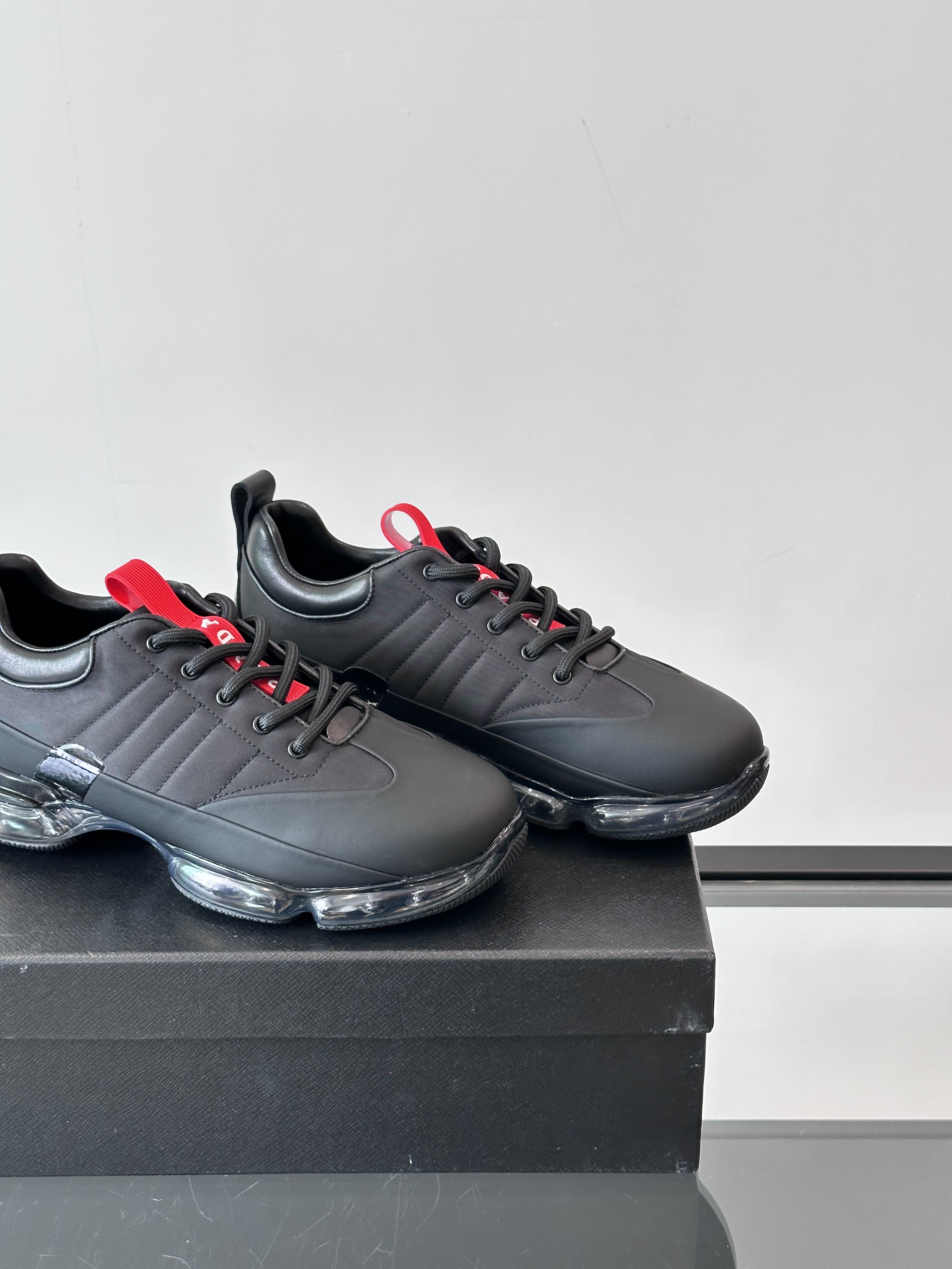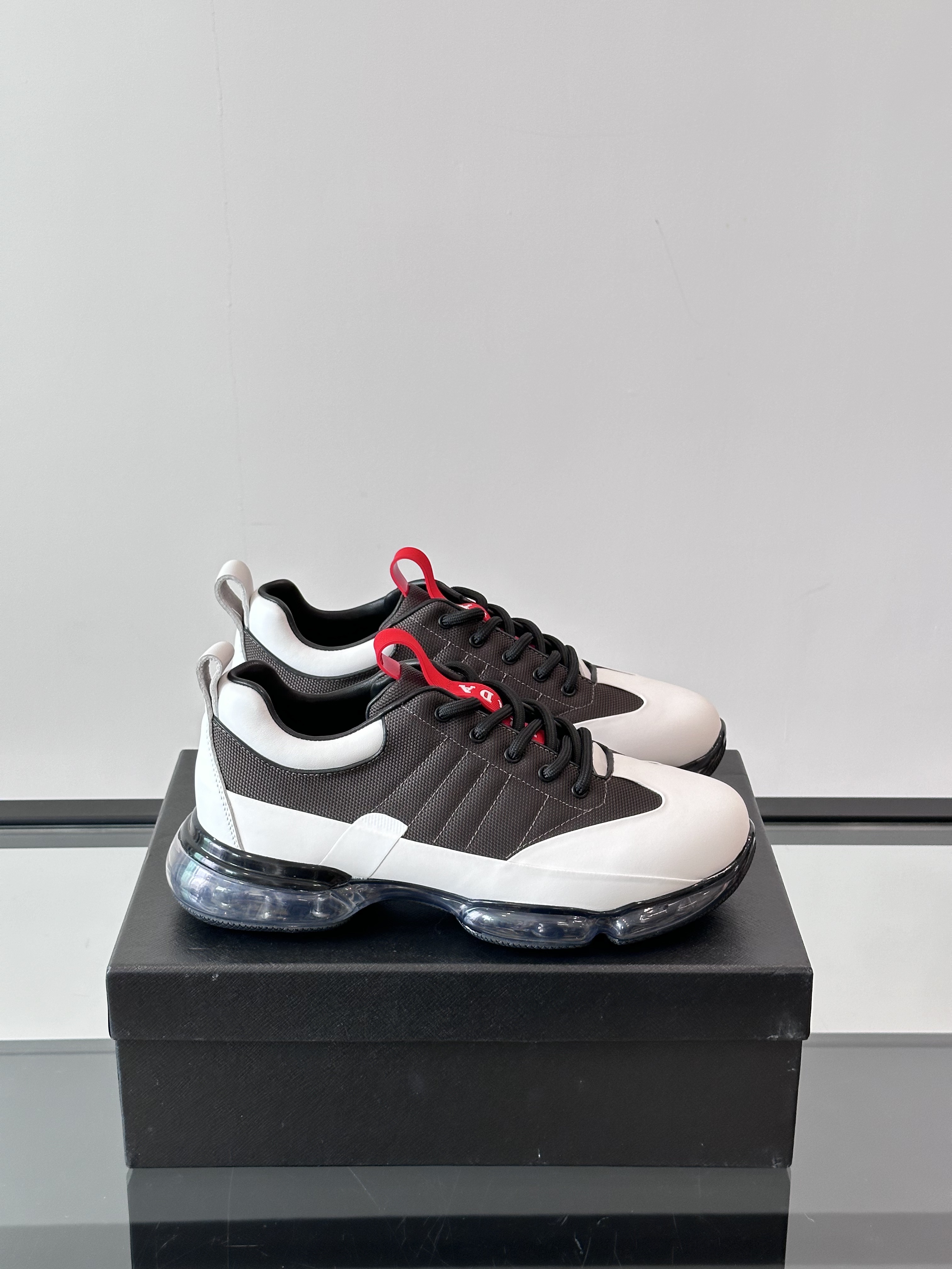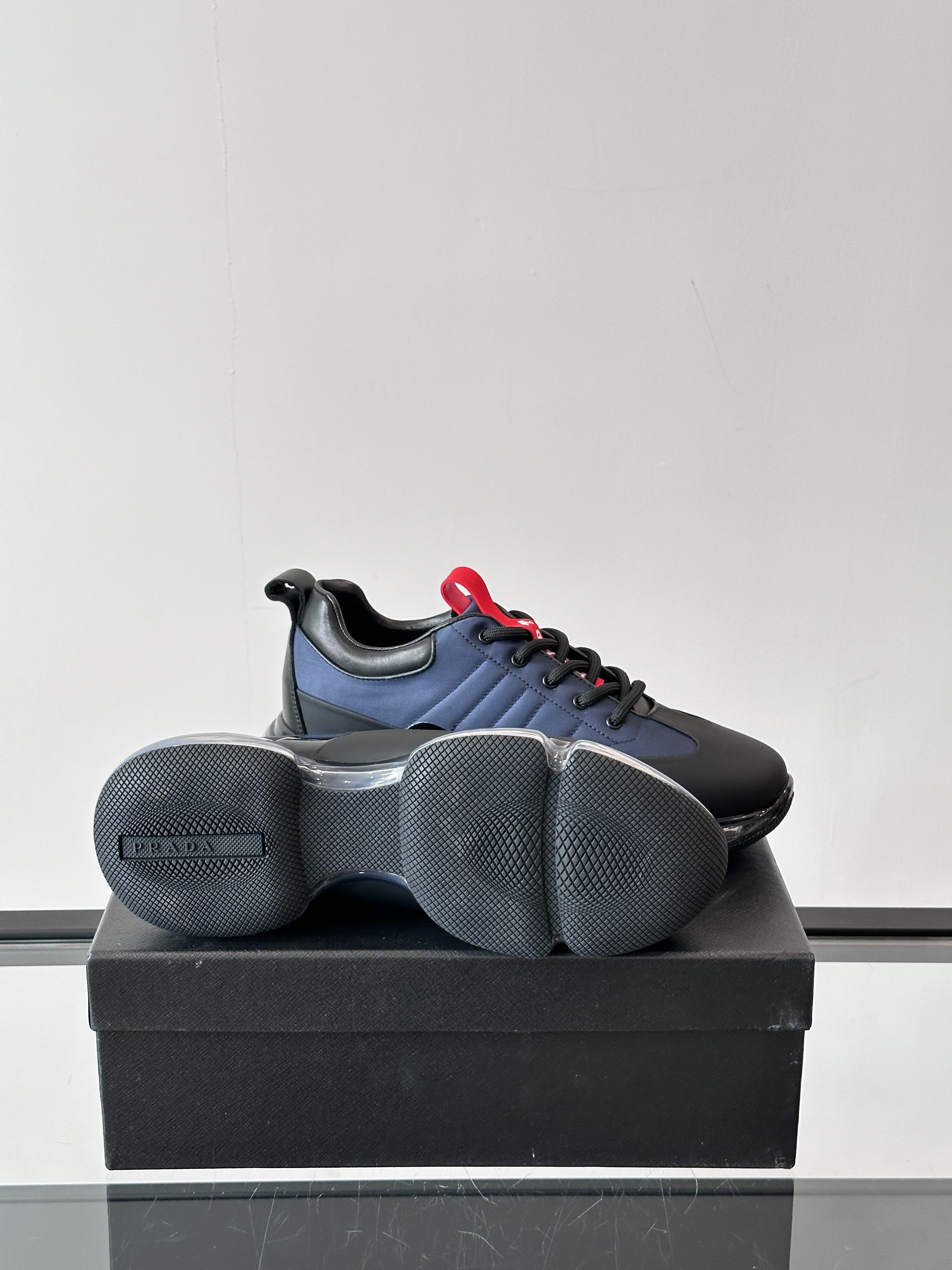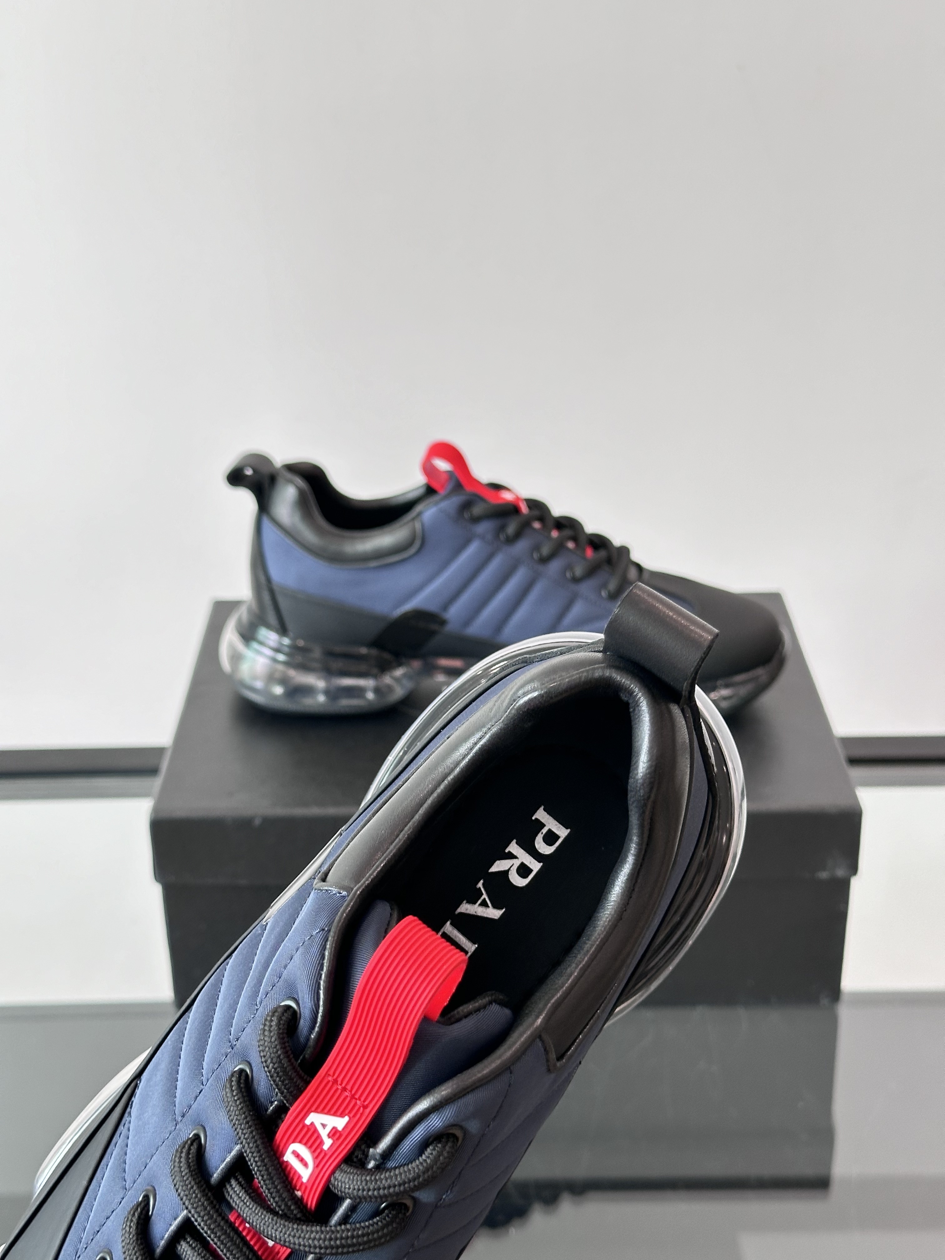 Представляем вашему вниманию новые спортивные повседневные кроссовки из кожи от Prada - воплощение роскоши и современного стиля. Эти кроссовки сочетают в себе передовые технологии и премиальные материалы, создавая идеальный баланс между комфортом и элегантностью. Верх выполнен из мягкой импортной телячьей кожи, обеспечивающей исключительную тактильность и долговечность. Технологичный дышащий тканевый верх гарантирует оптимальную циркуляцию воздуха, сохраняя ваши ноги свежими в течение всего дня.