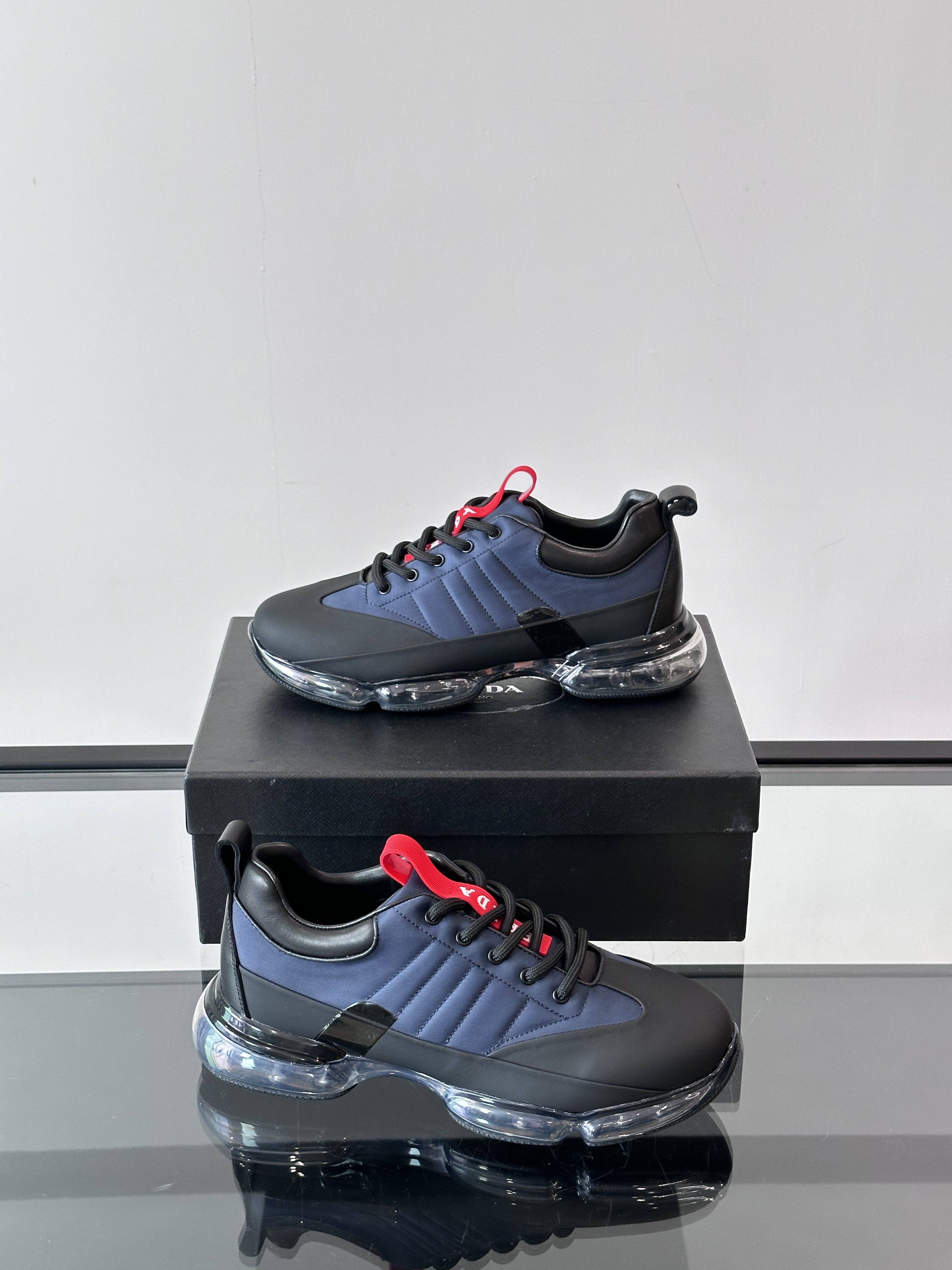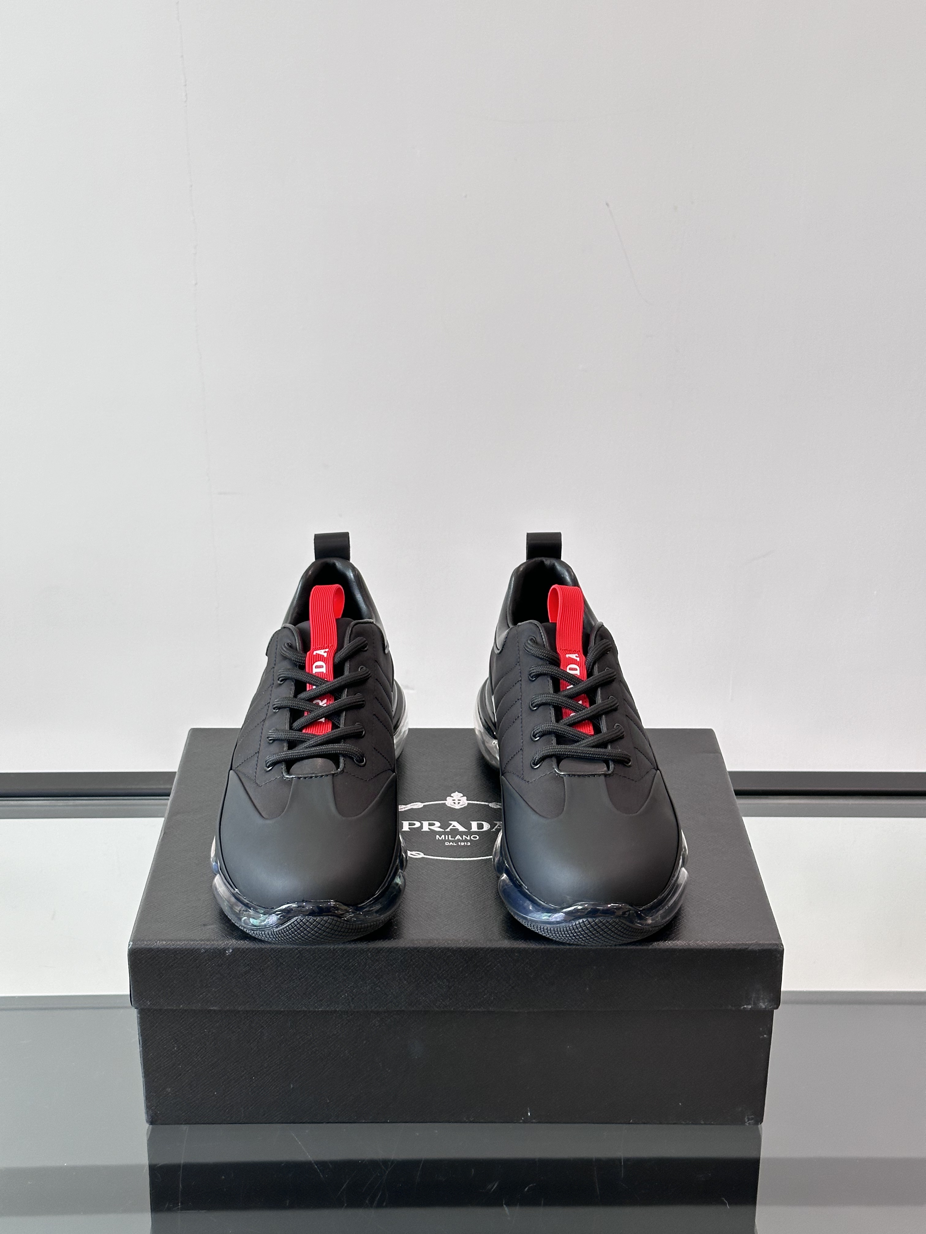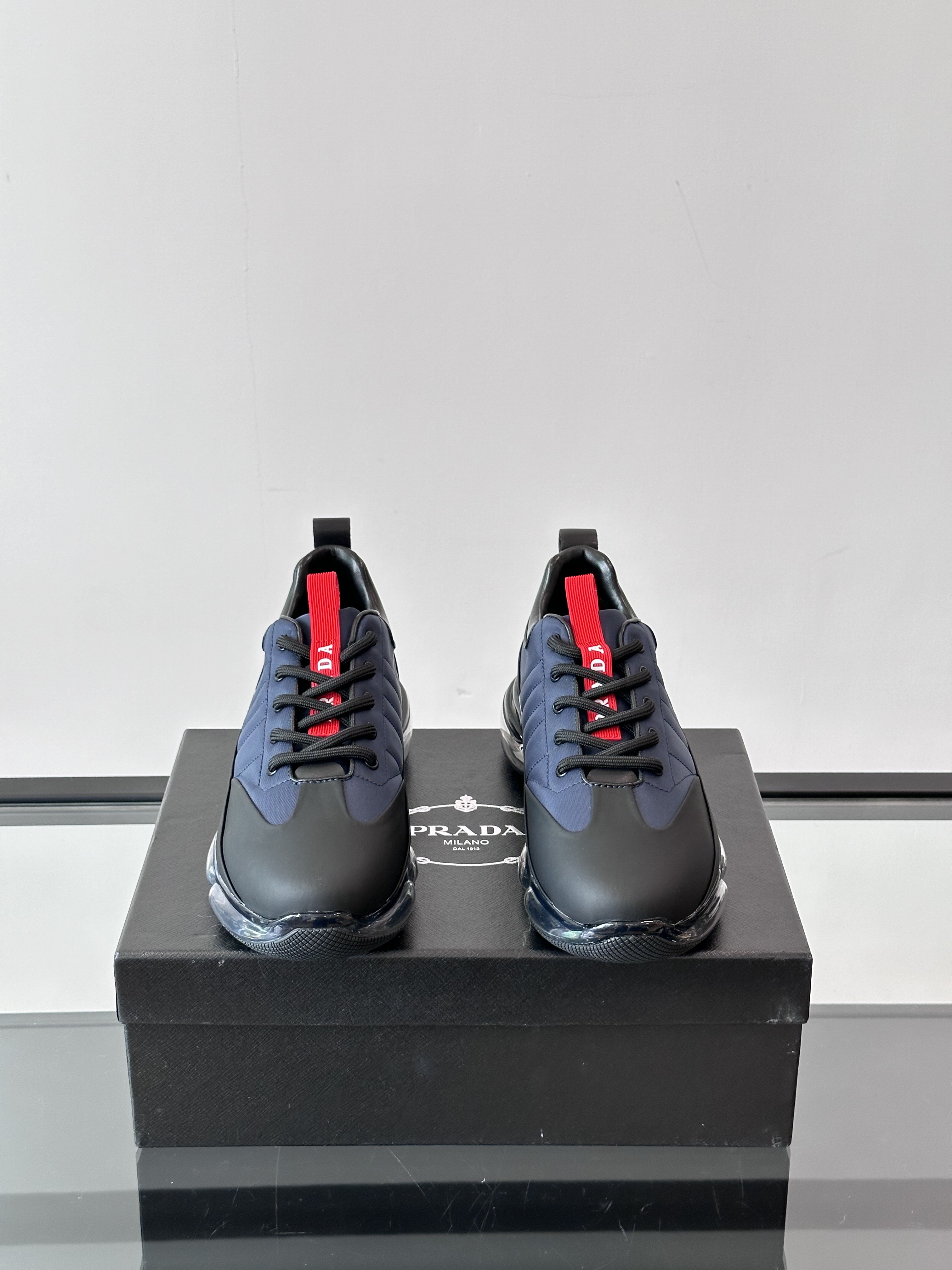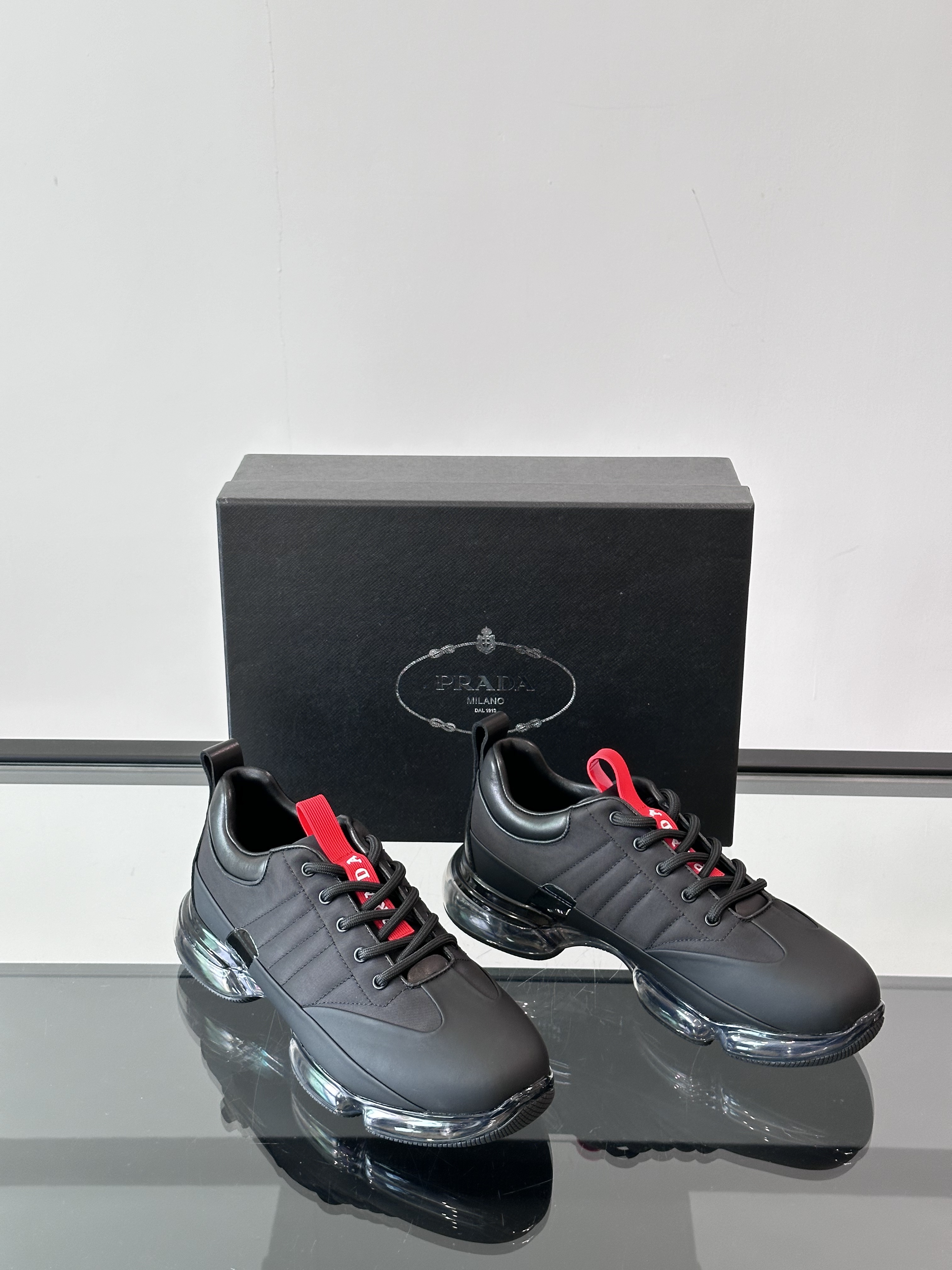 Представляем вашему вниманию новые спортивные повседневные кроссовки из кожи от Prada - воплощение роскоши и современного стиля. Эти кроссовки сочетают в себе передовые технологии и премиальные материалы, создавая идеальный баланс между комфортом и элегантностью. Верх выполнен из мягкой импортной телячьей кожи, обеспечивающей исключительную тактильность и долговечность. Технологичный дышащий тканевый верх гарантирует оптимальную циркуляцию воздуха, сохраняя ваши ноги свежими в течение всего дня.