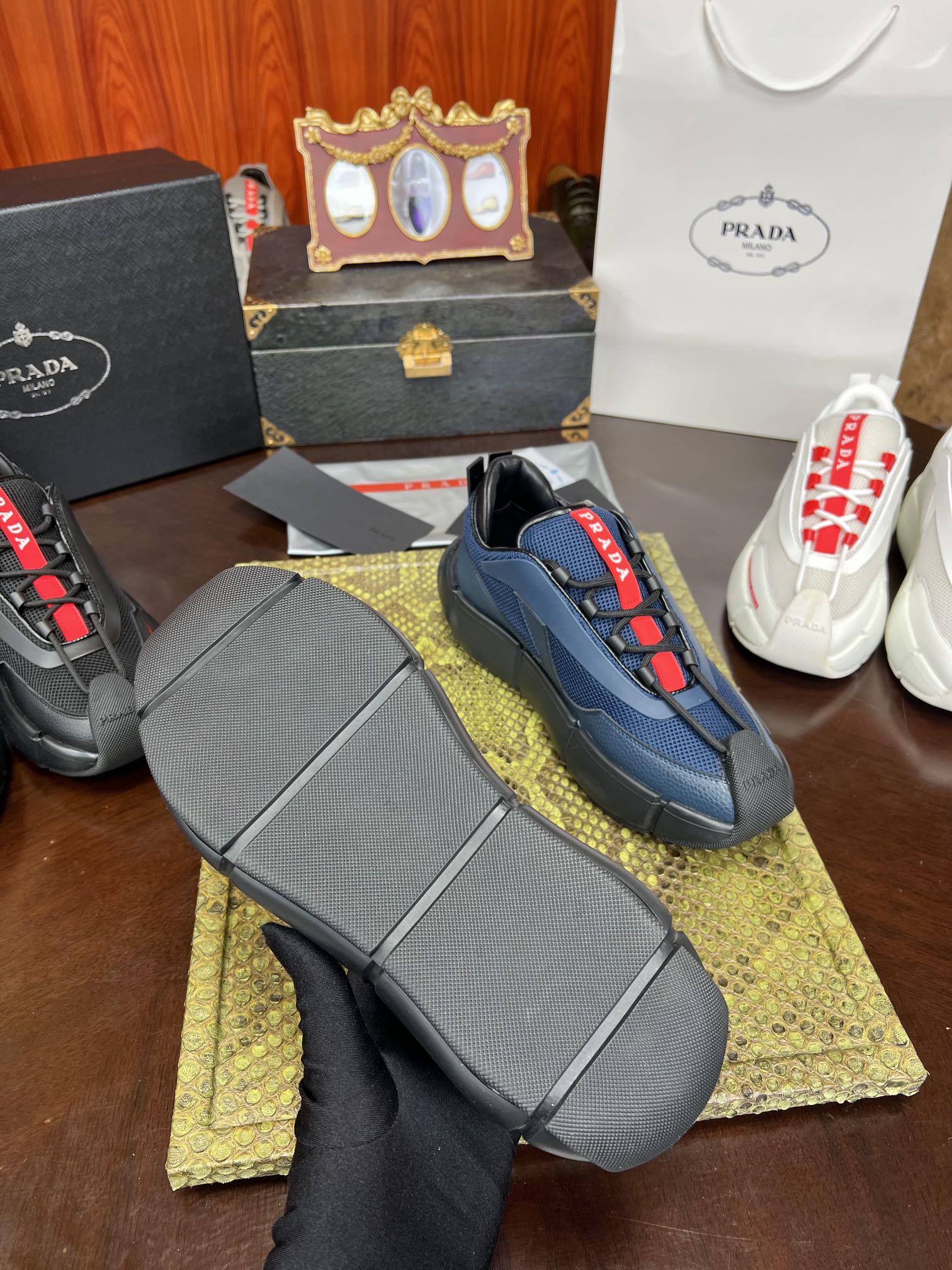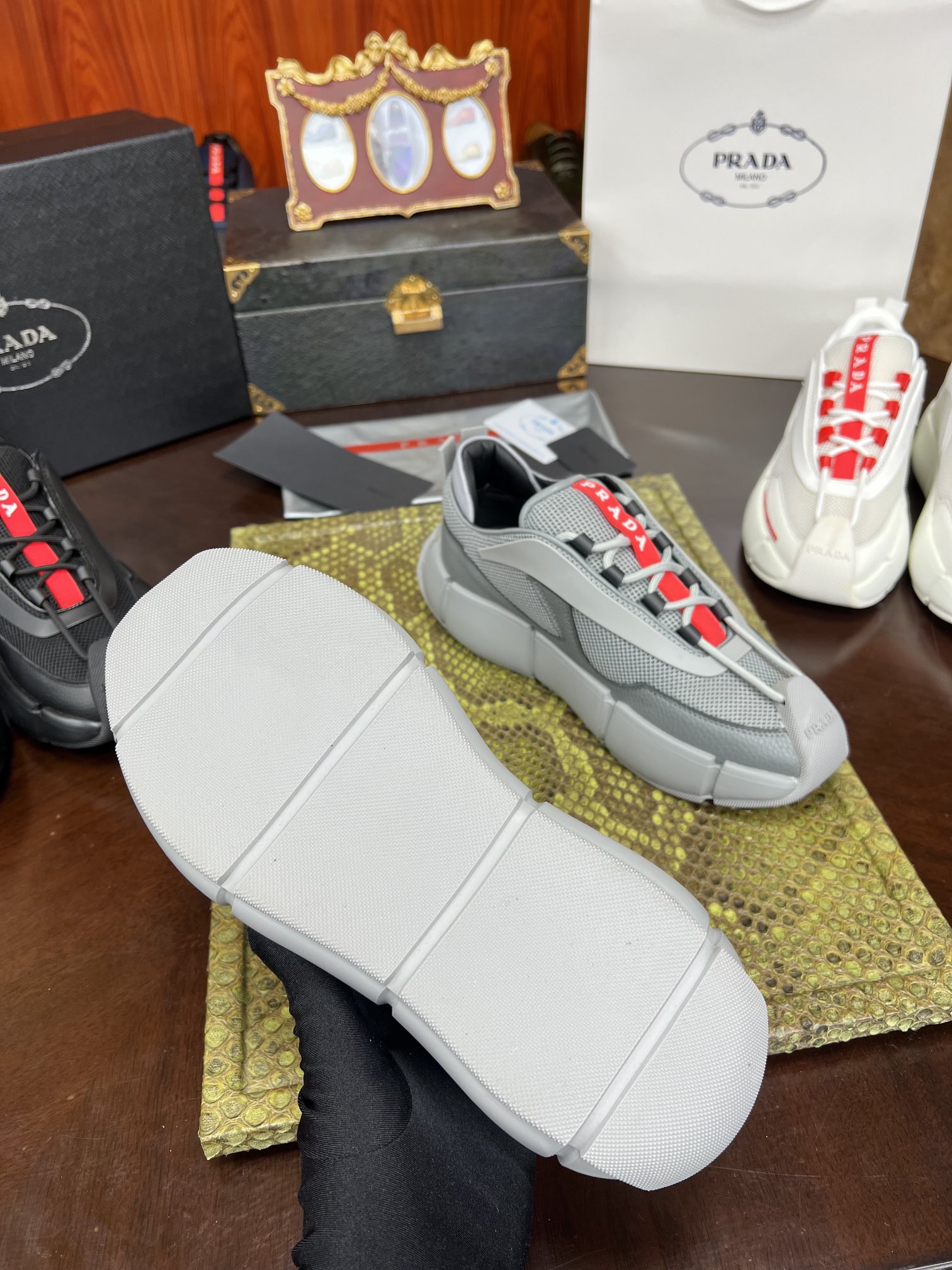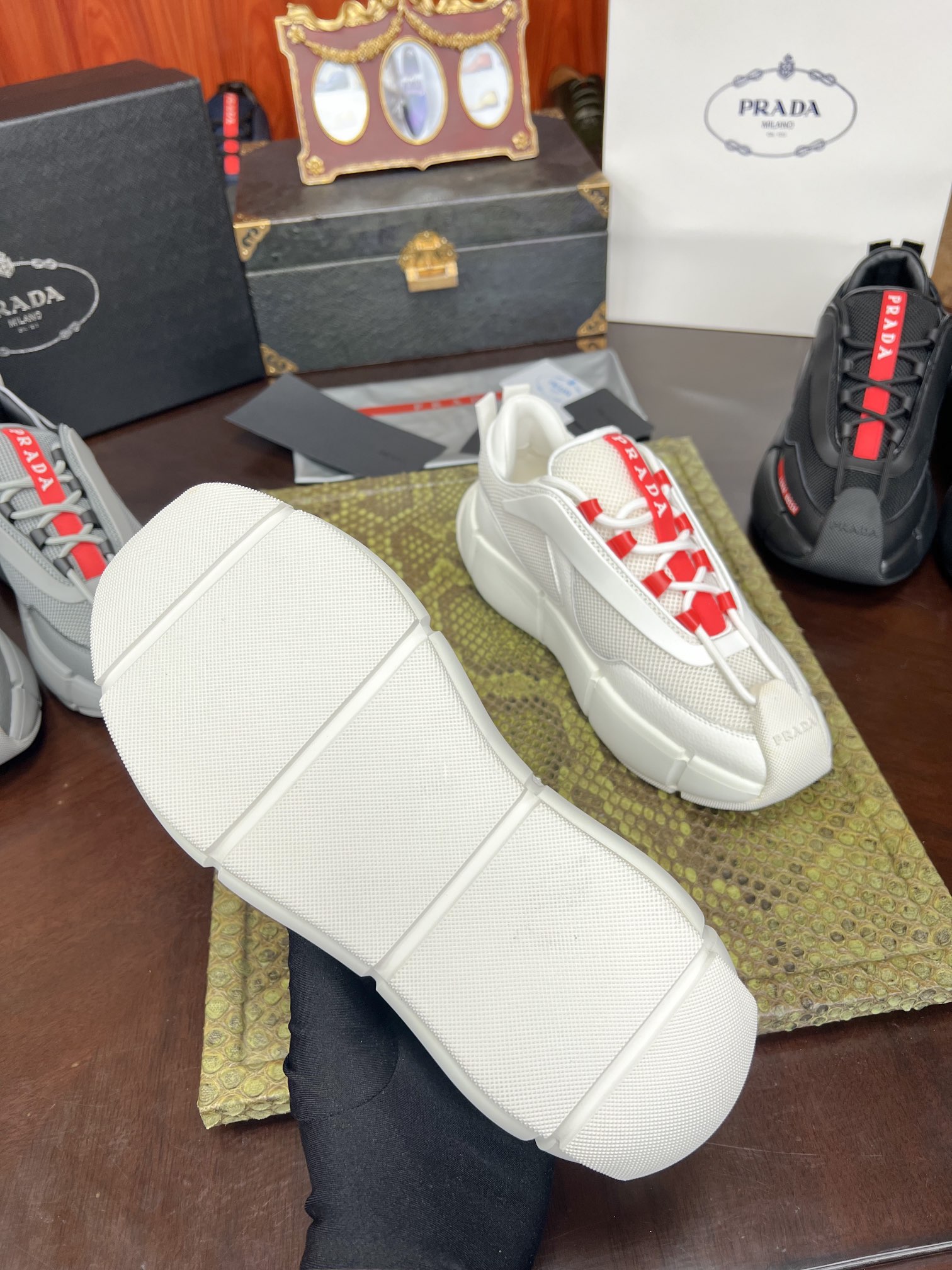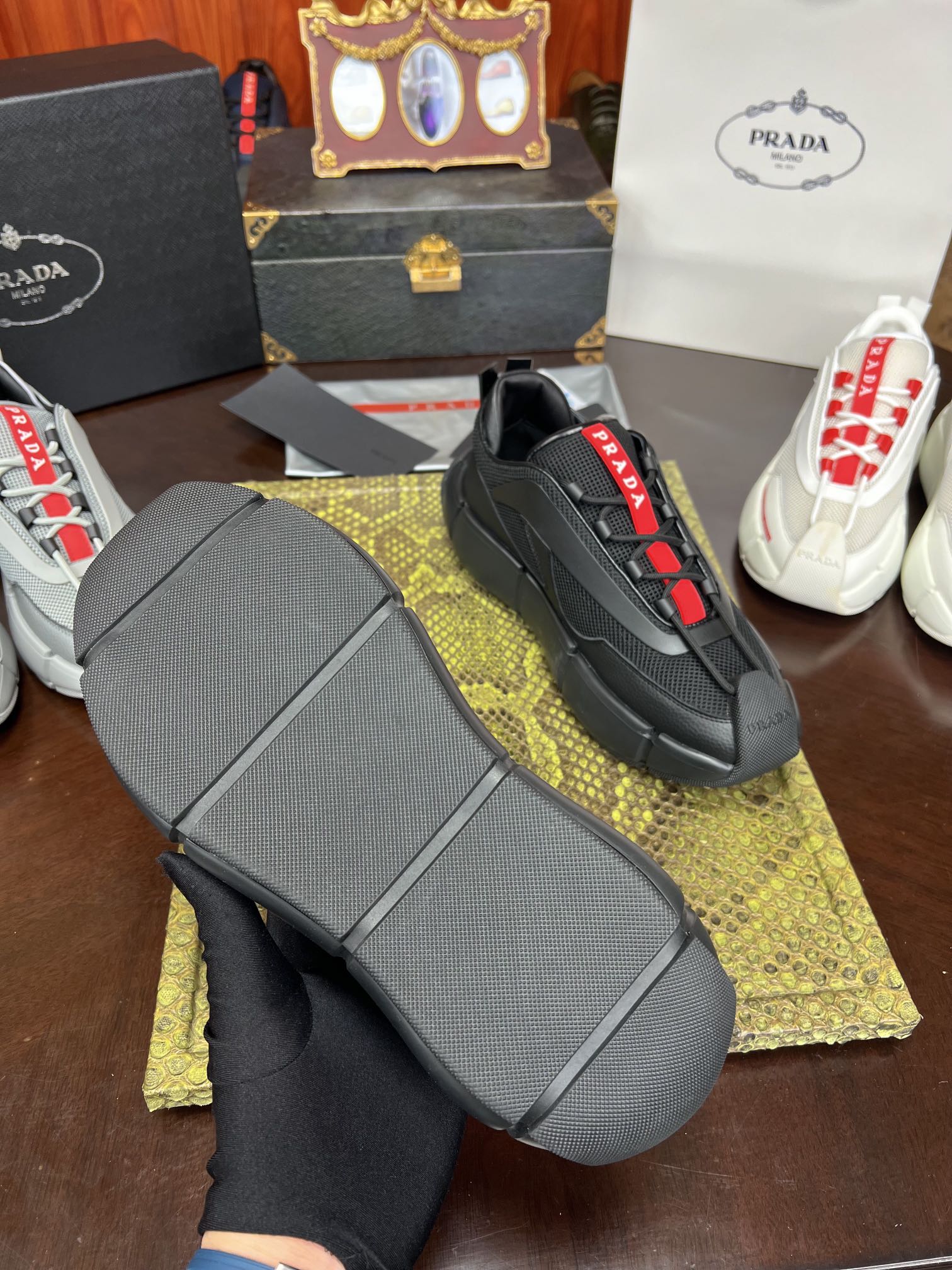 PRADA Мужские кроссовки коровья кожа