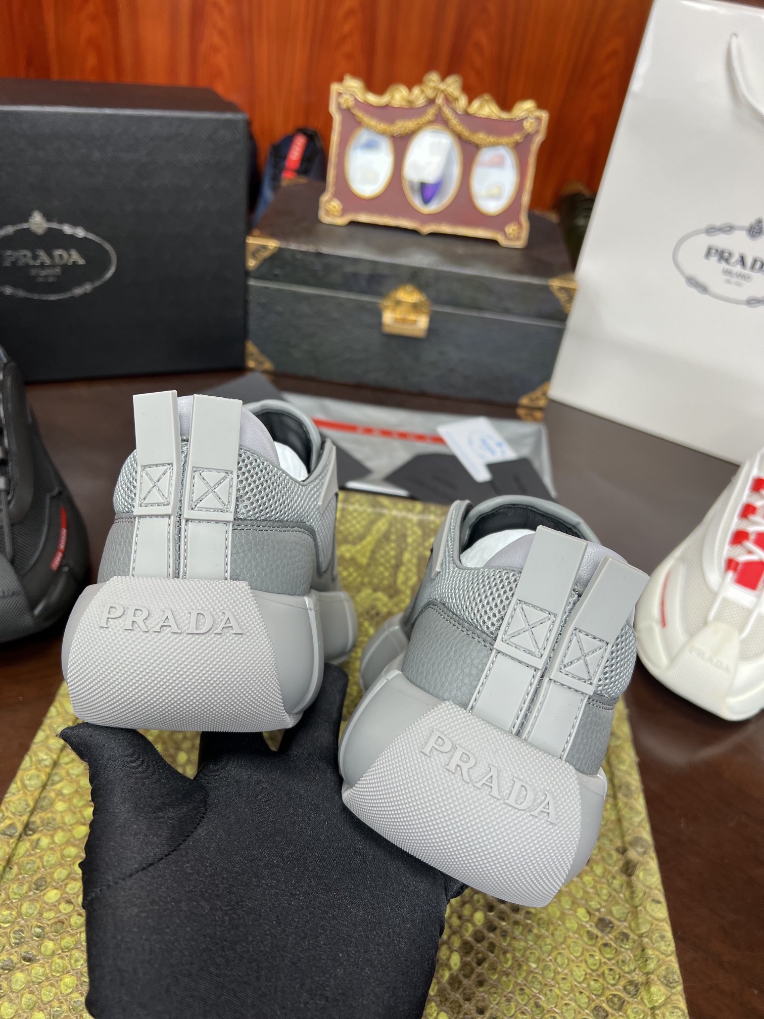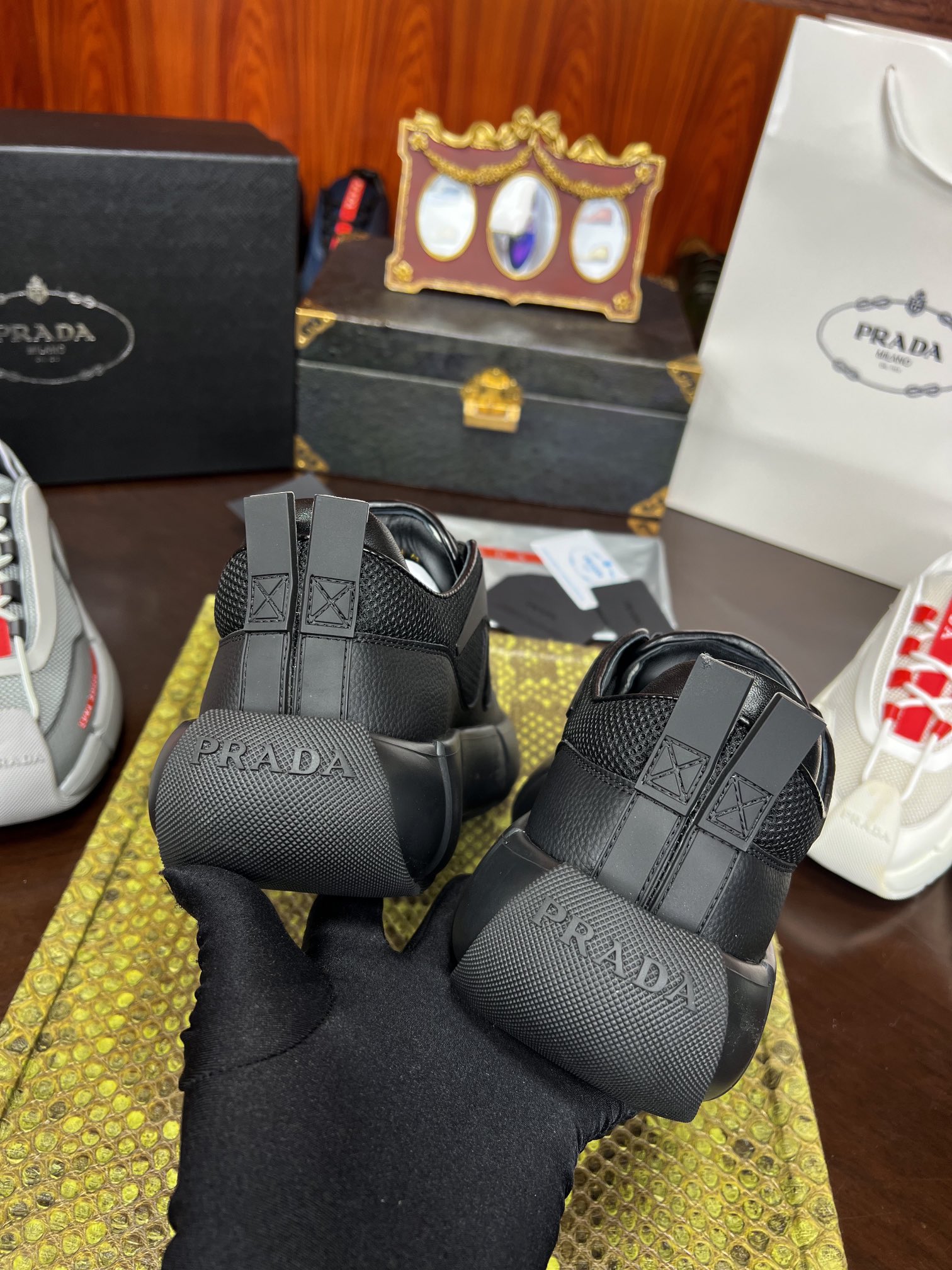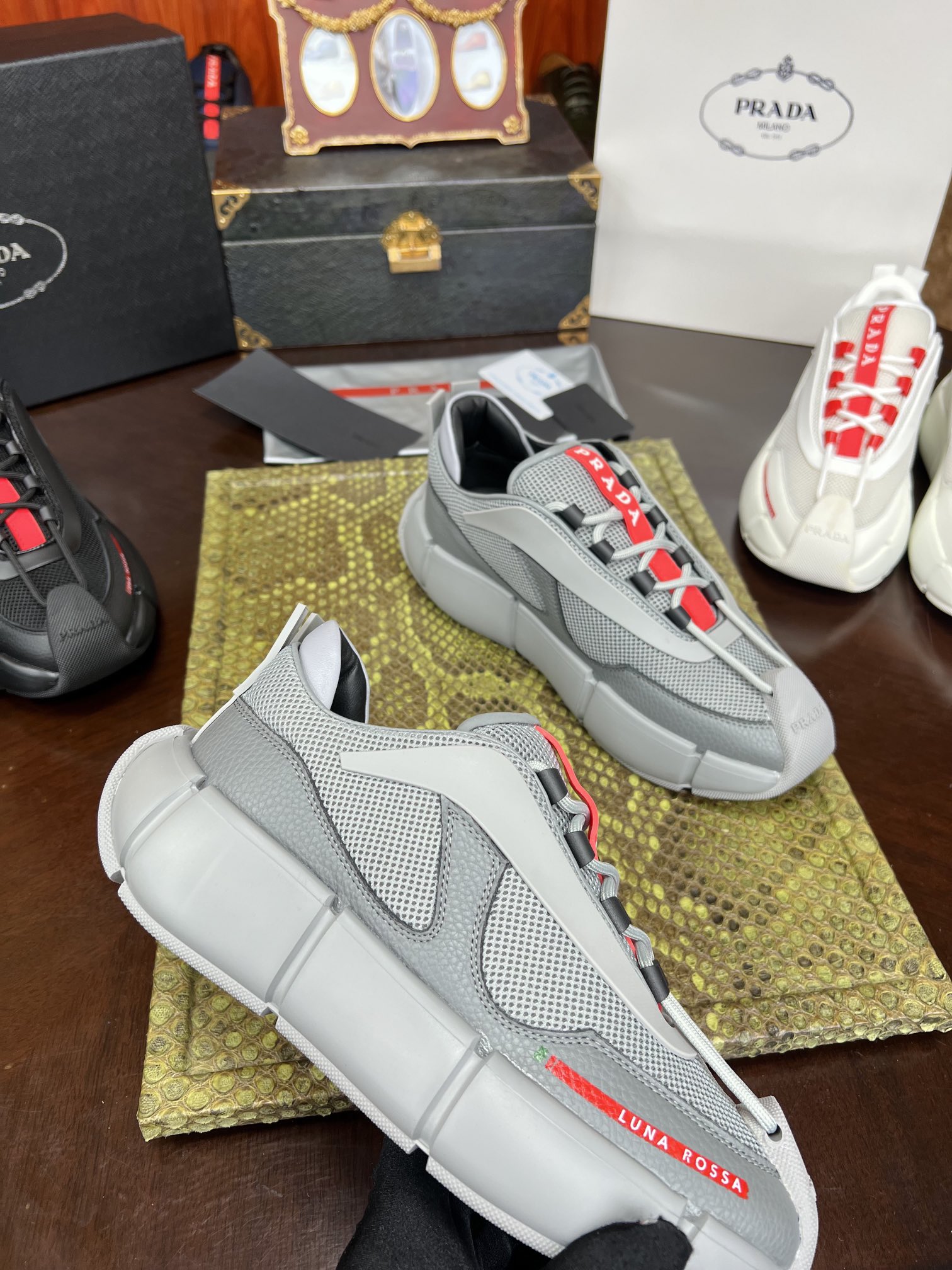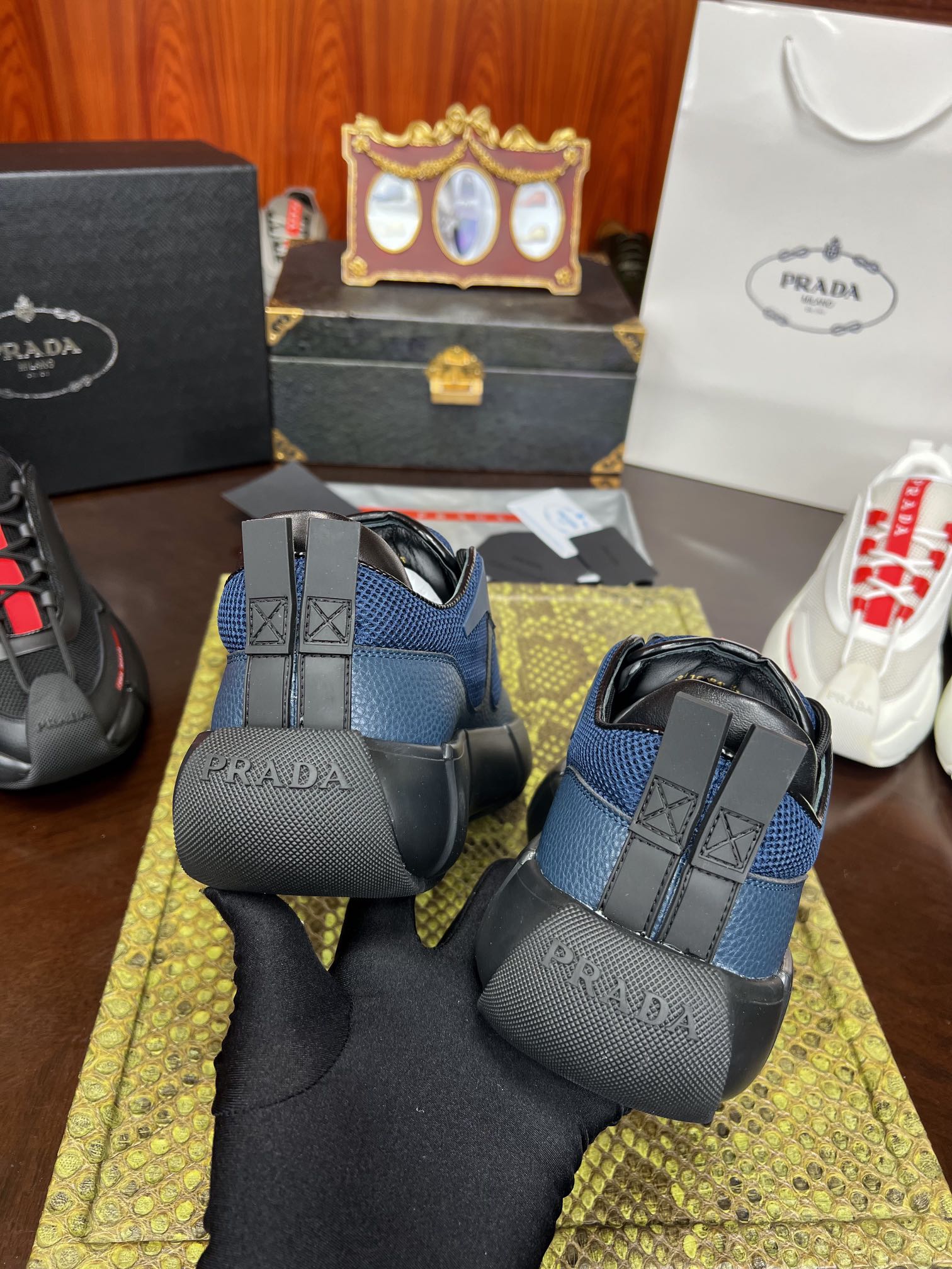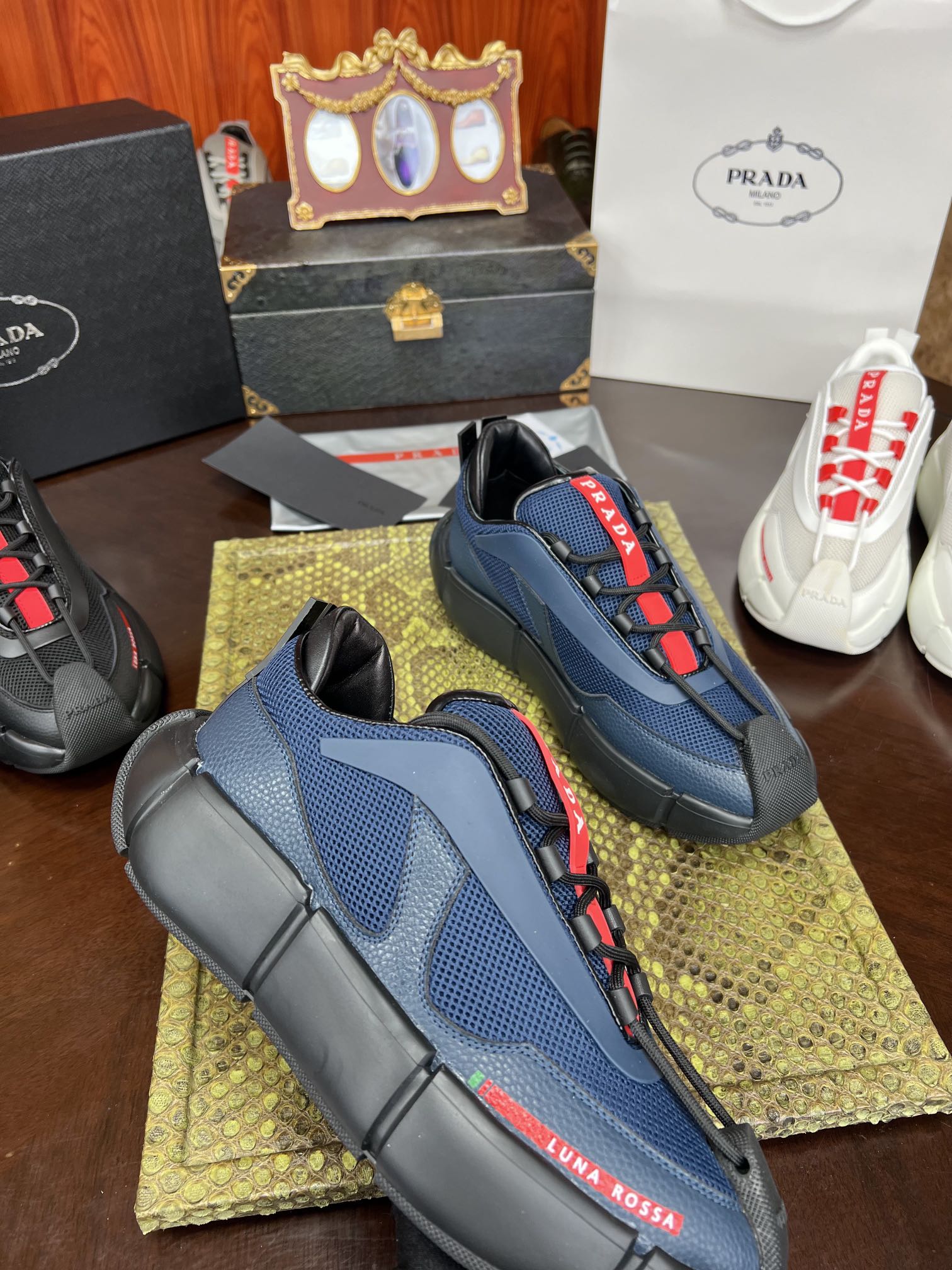 PRADA Мужские кроссовки коровья кожа