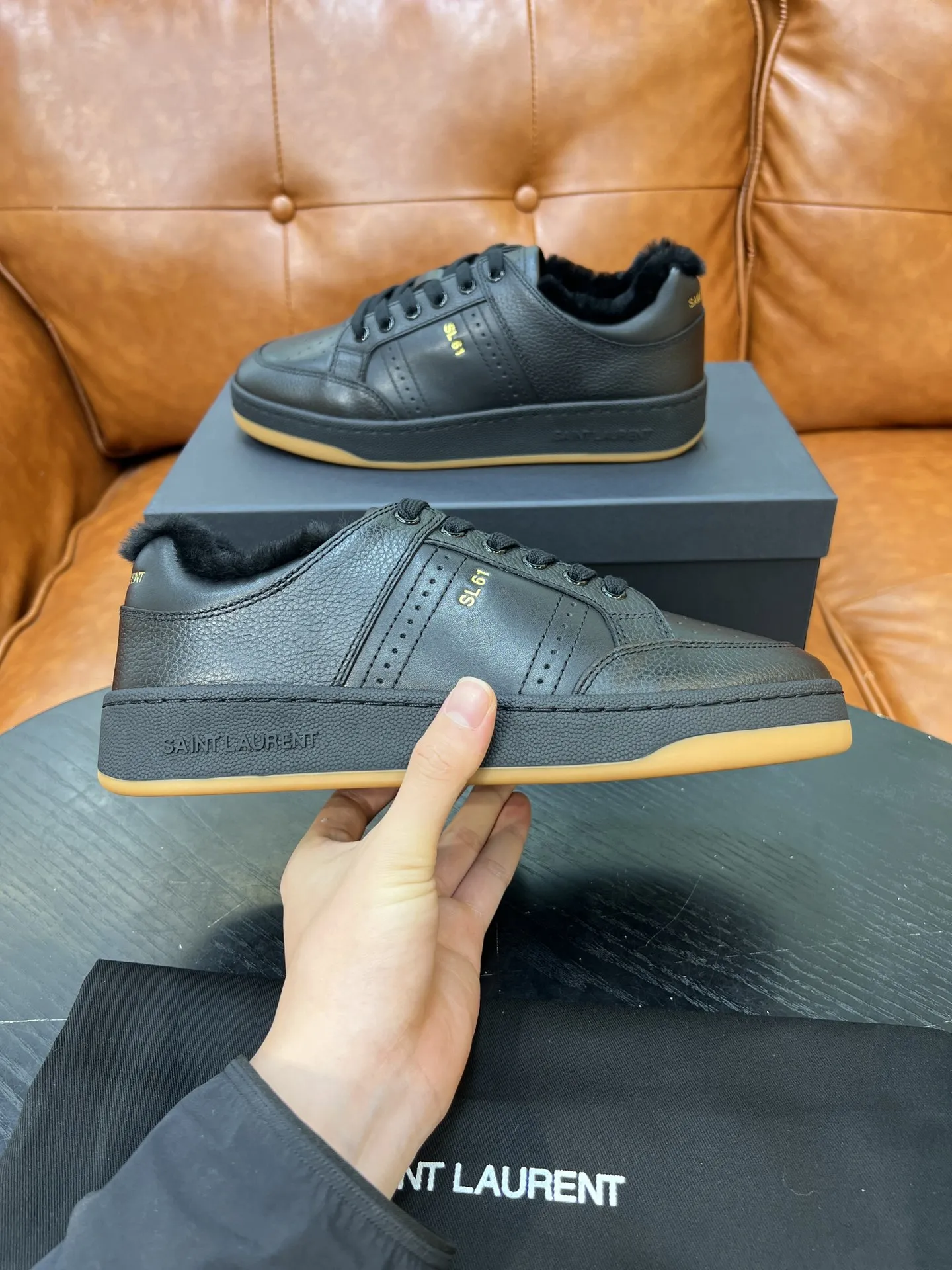 Кеды Saint Laurent - это стильные и комфортные низкие кеды черного цвета, изготовленные из высококачественной натуральной коровьей кожи. Мягкая кожа и меховая подкладка обеспечивают комфорт при носке.
