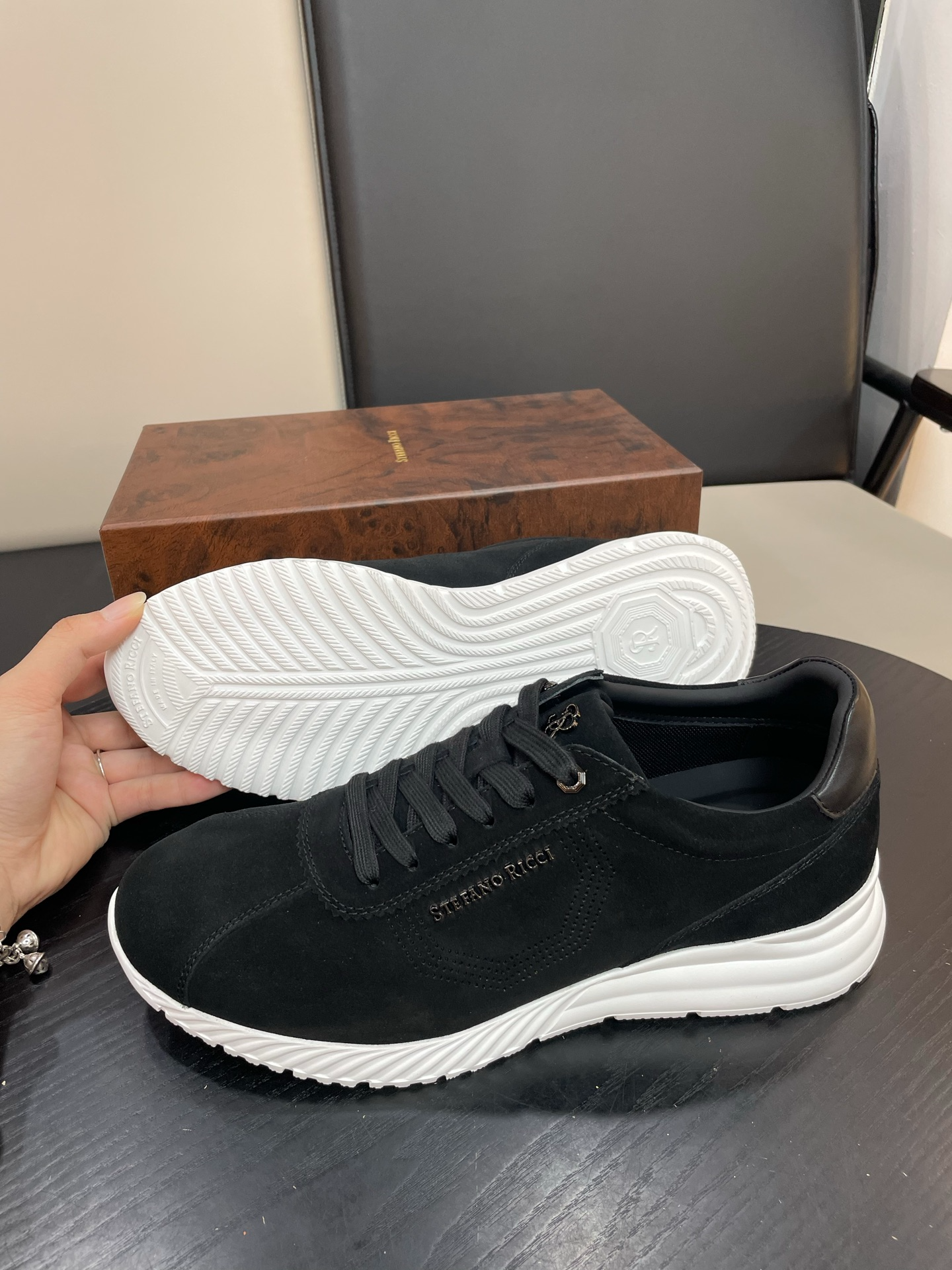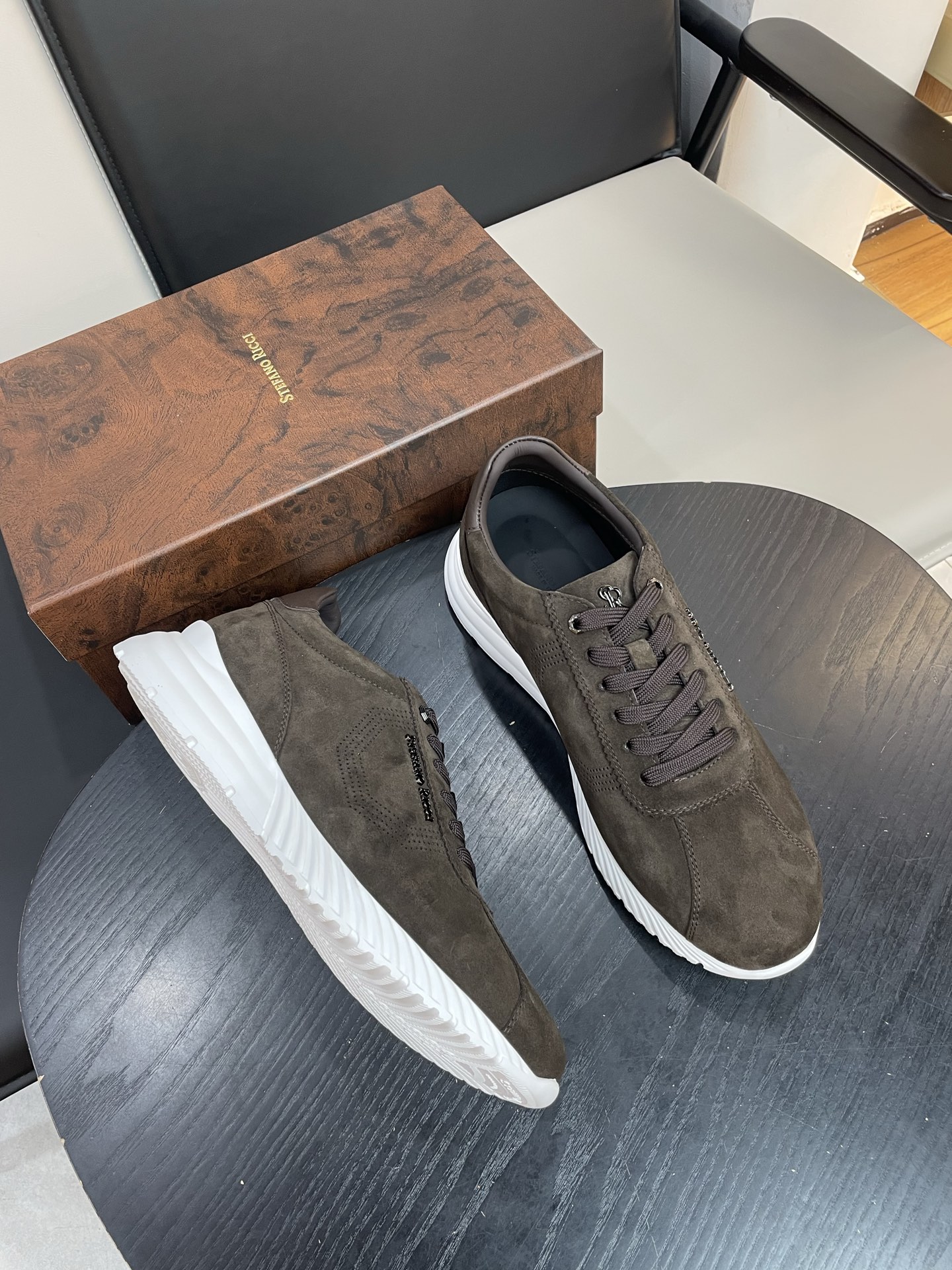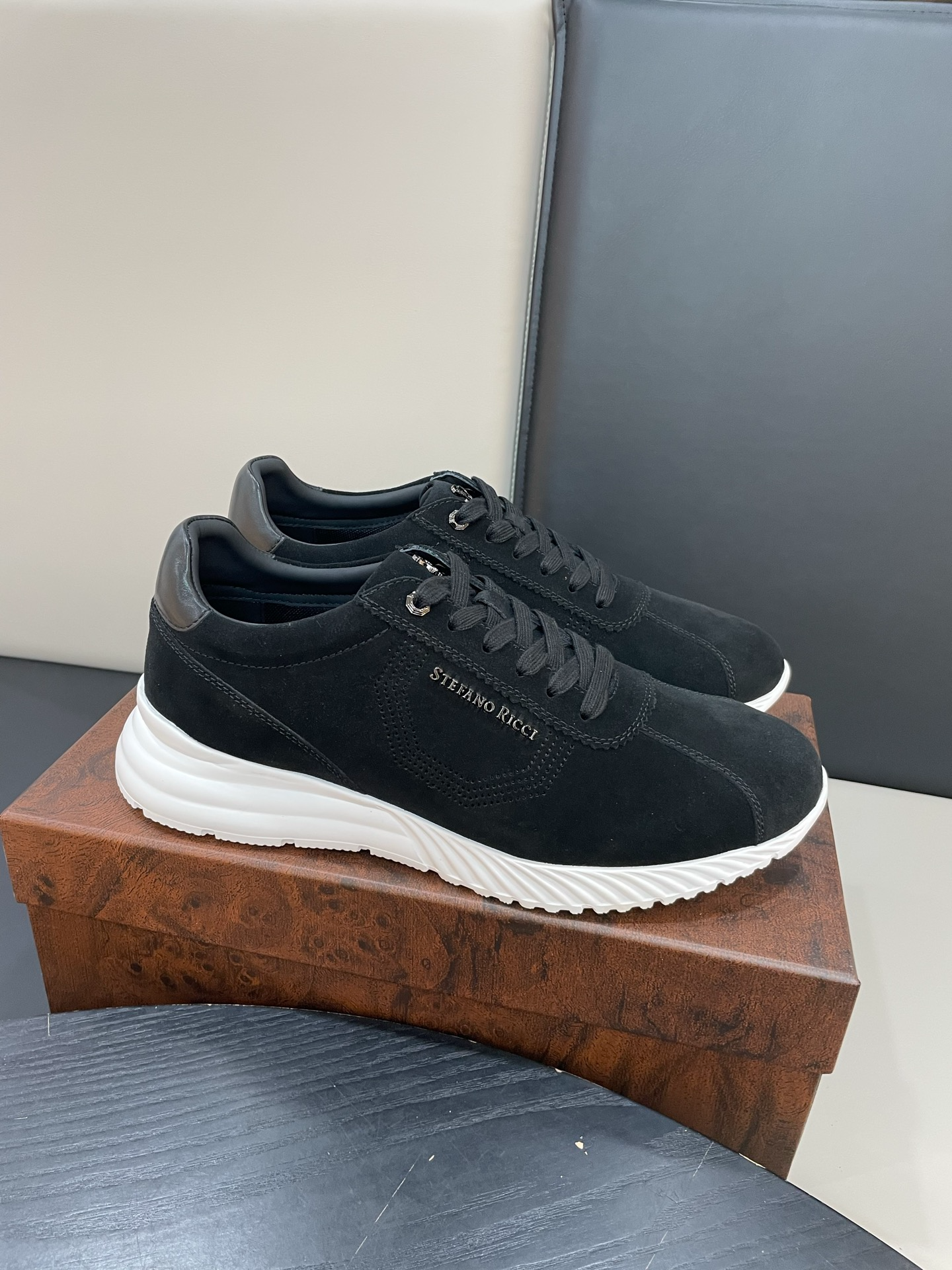 Мужские кроссовки STEFANO RICCI — элегантная интерпретация городского стиля в премиальном исполнении. Минималистичная низкая модель в глубокoм оттенке из бархатистой замши с контрастной белой подошвой — идеальное сочетание сдержанности и дизайнерской детали.