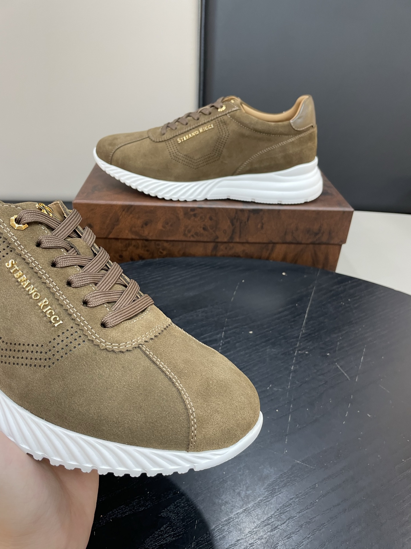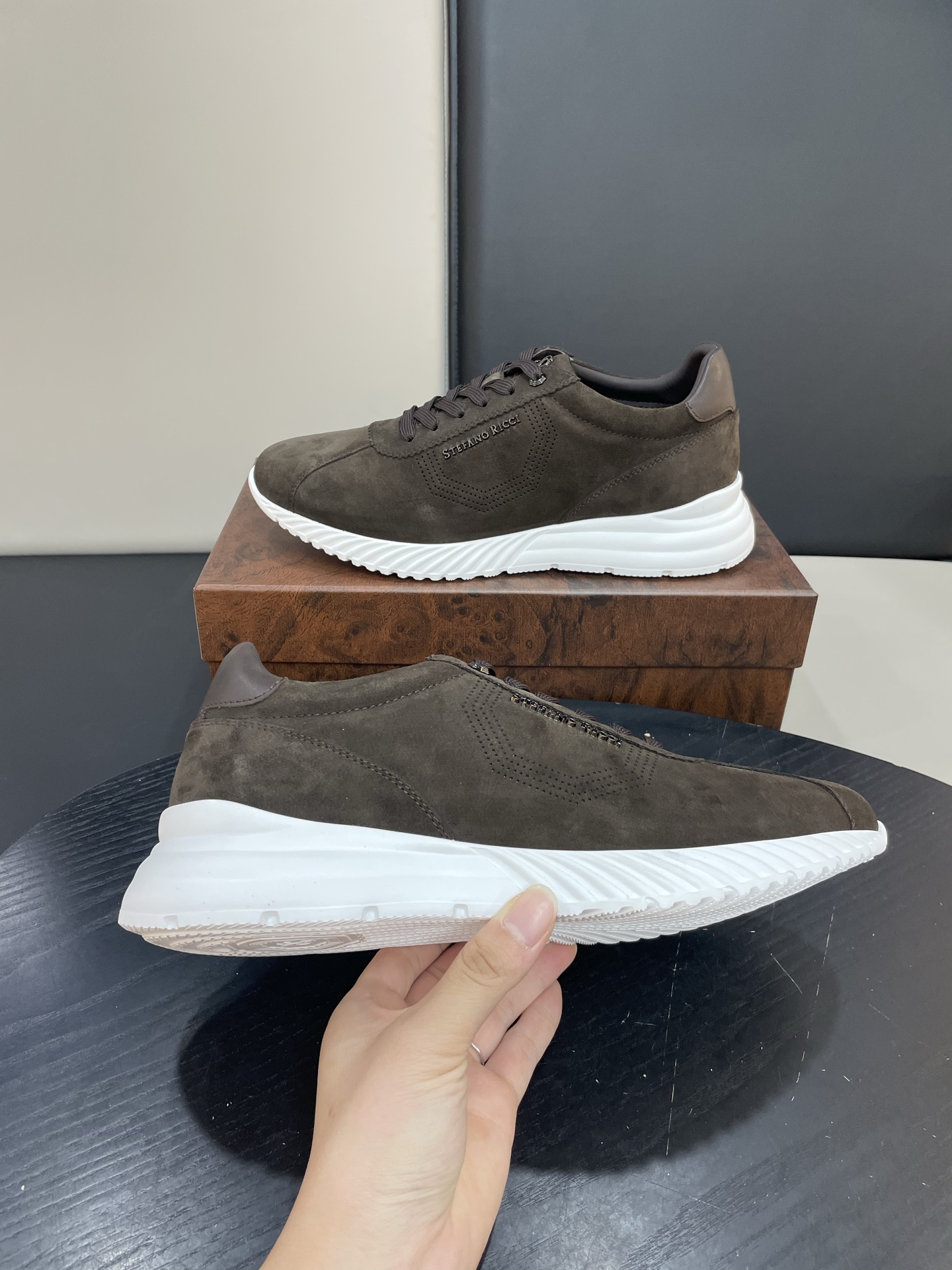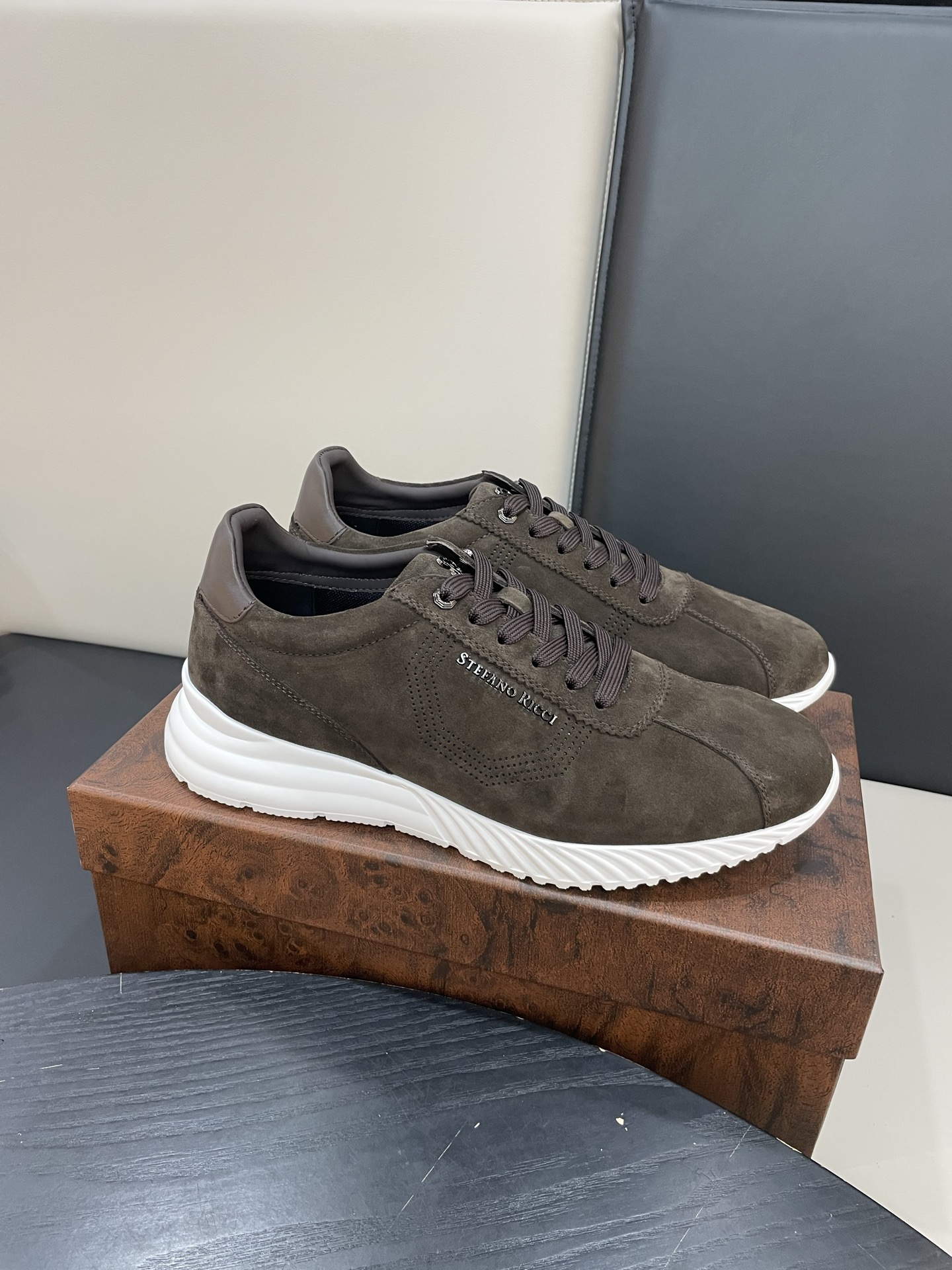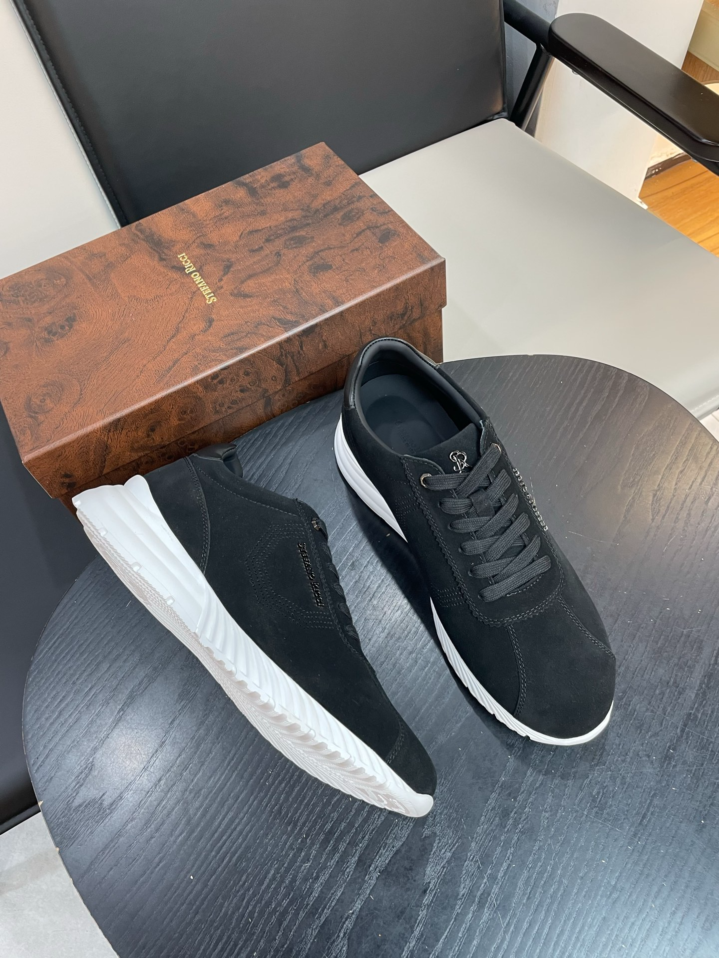 Мужские кроссовки STEFANO RICCI — элегантная интерпретация городского стиля в премиальном исполнении. Минималистичная низкая модель в глубокoм оттенке из бархатистой замши с контрастной белой подошвой — идеальное сочетание сдержанности и дизайнерской детали.