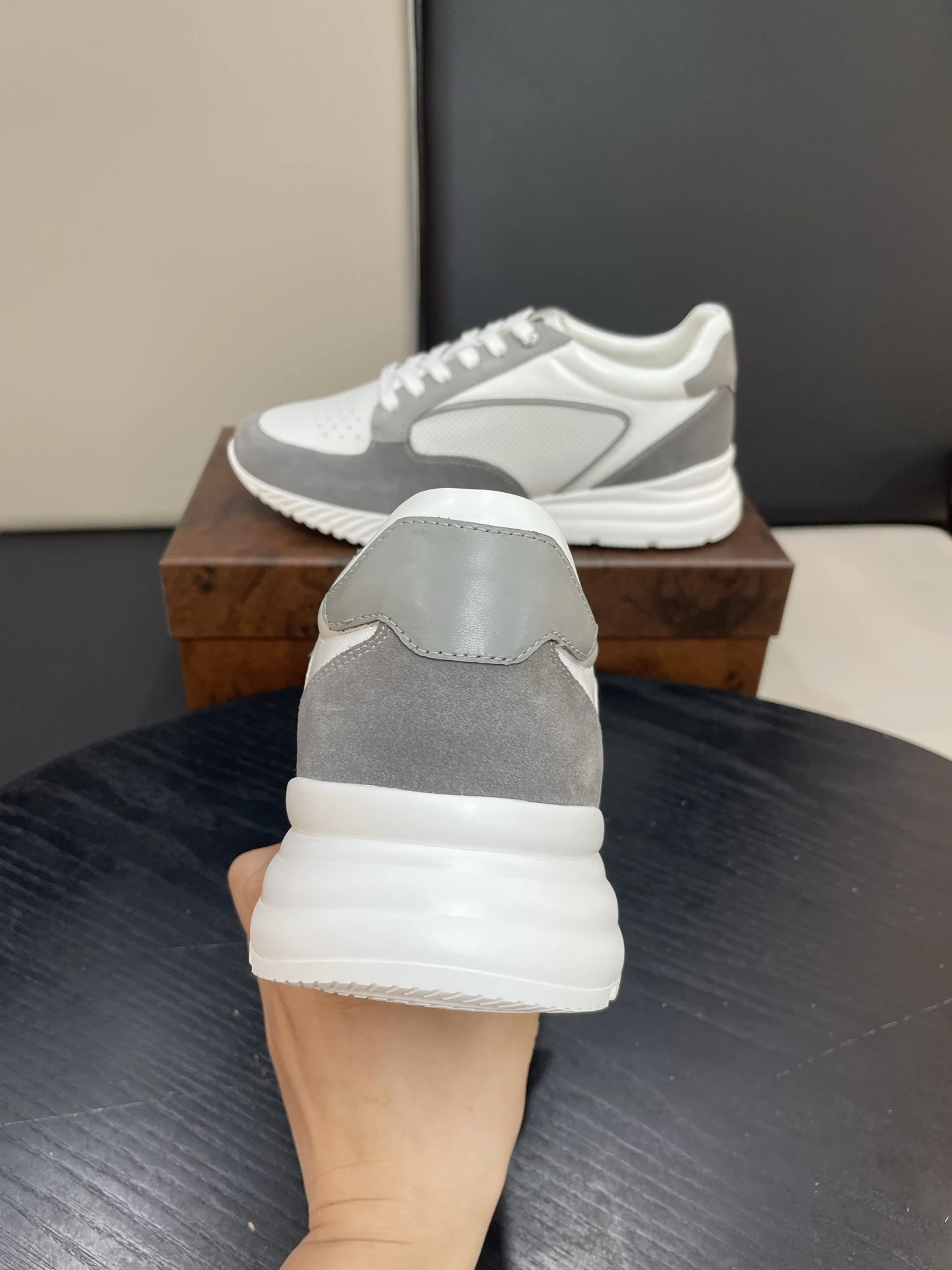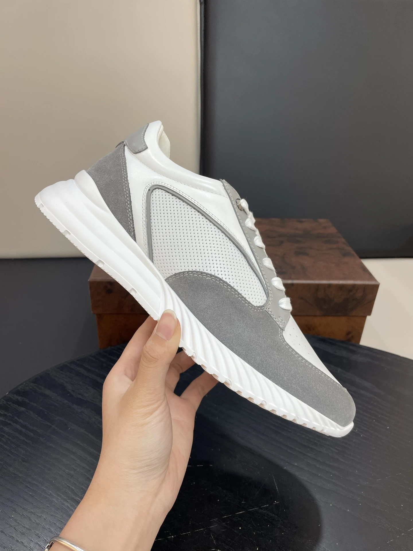 • Дизайн: минималистичный, современный силуэт с аккуратными линиями и контрастной подошвой. Перфорированный носок придаёт модели лёгкость и визуальную динамику.