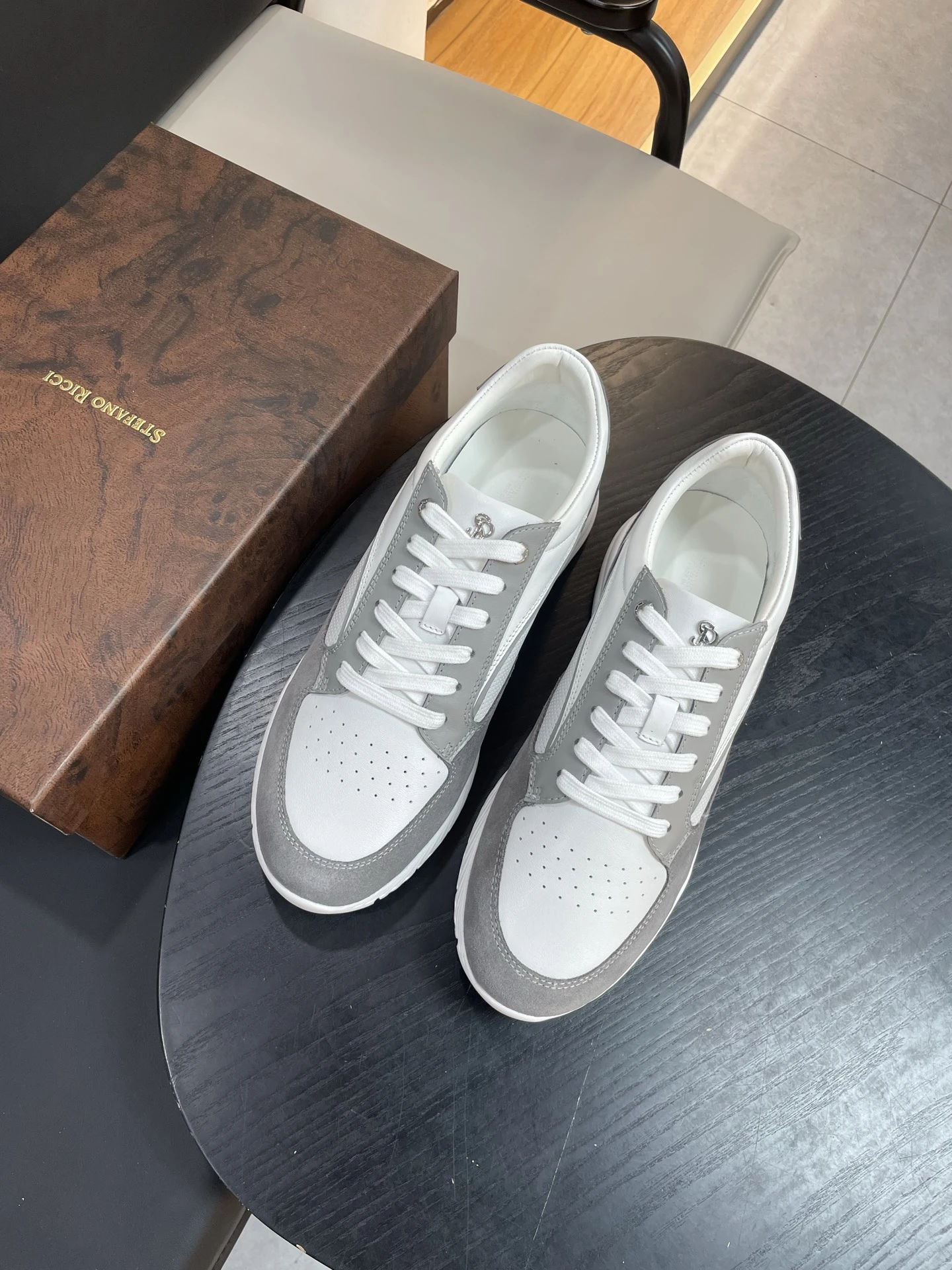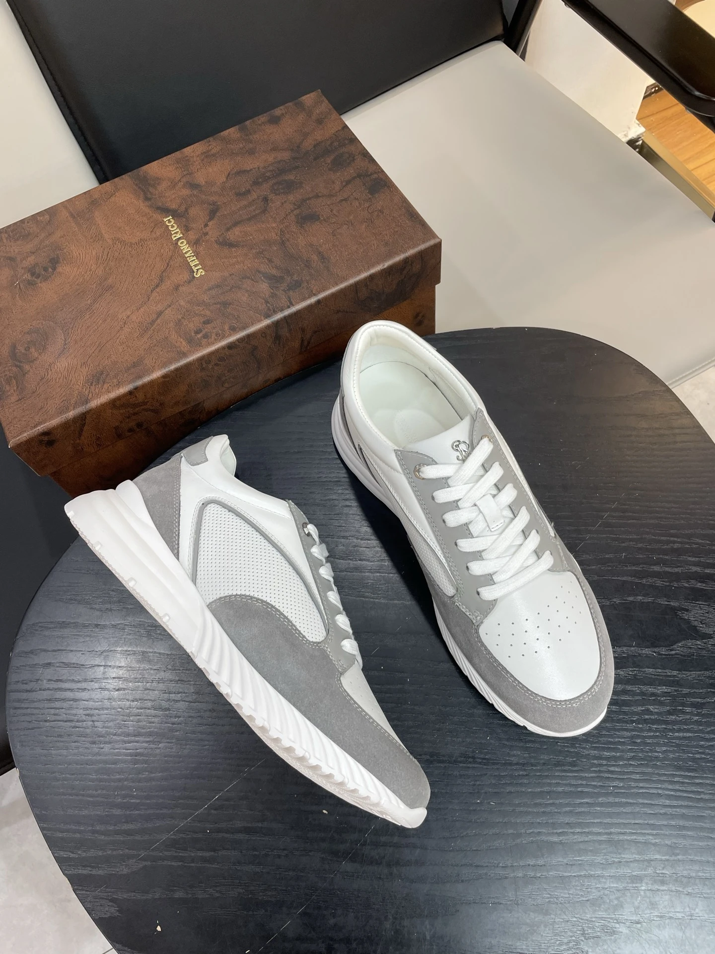 STEFANO RICCI Мужские кроссовки из гладкой натуральной кожи и благородной замши