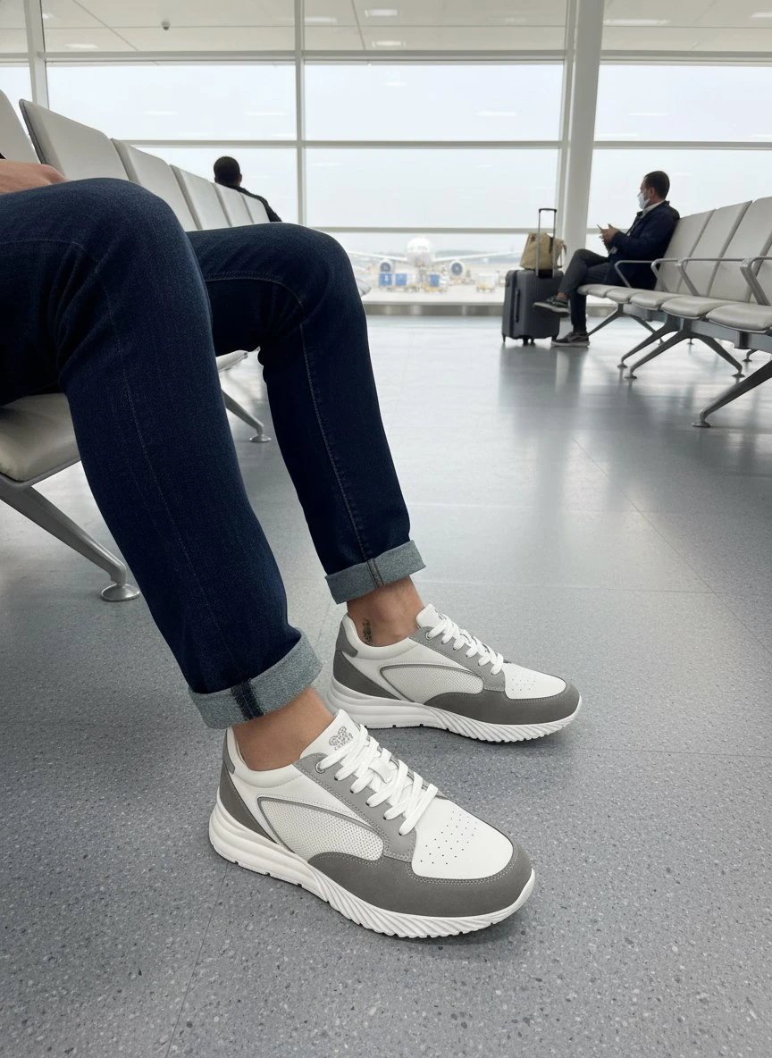 • Материалы: верх — сочетание гладкой натуральной кожи и благородной замши, дополненное дышащими сетчатыми вставками для лучшей вентиляции и текстурного контраста.