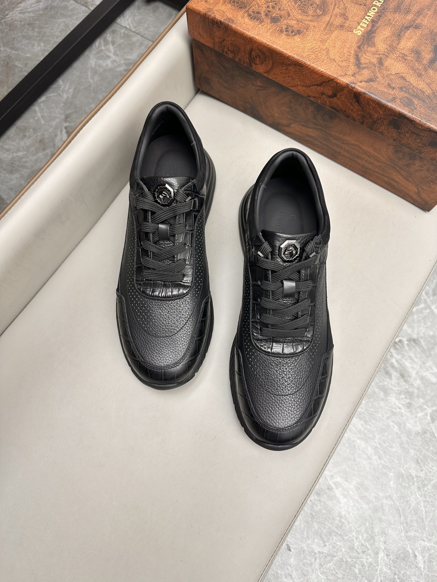 Мужские спортивные кроссовки Stefano Ricci изготовлены из высококачественной импортной телячьей кожи с крокодиловым зерном, что придает им уникальный стиль и элегантность. Мягкая и нежная кожа обеспечивает удивительный комфорт при носке.