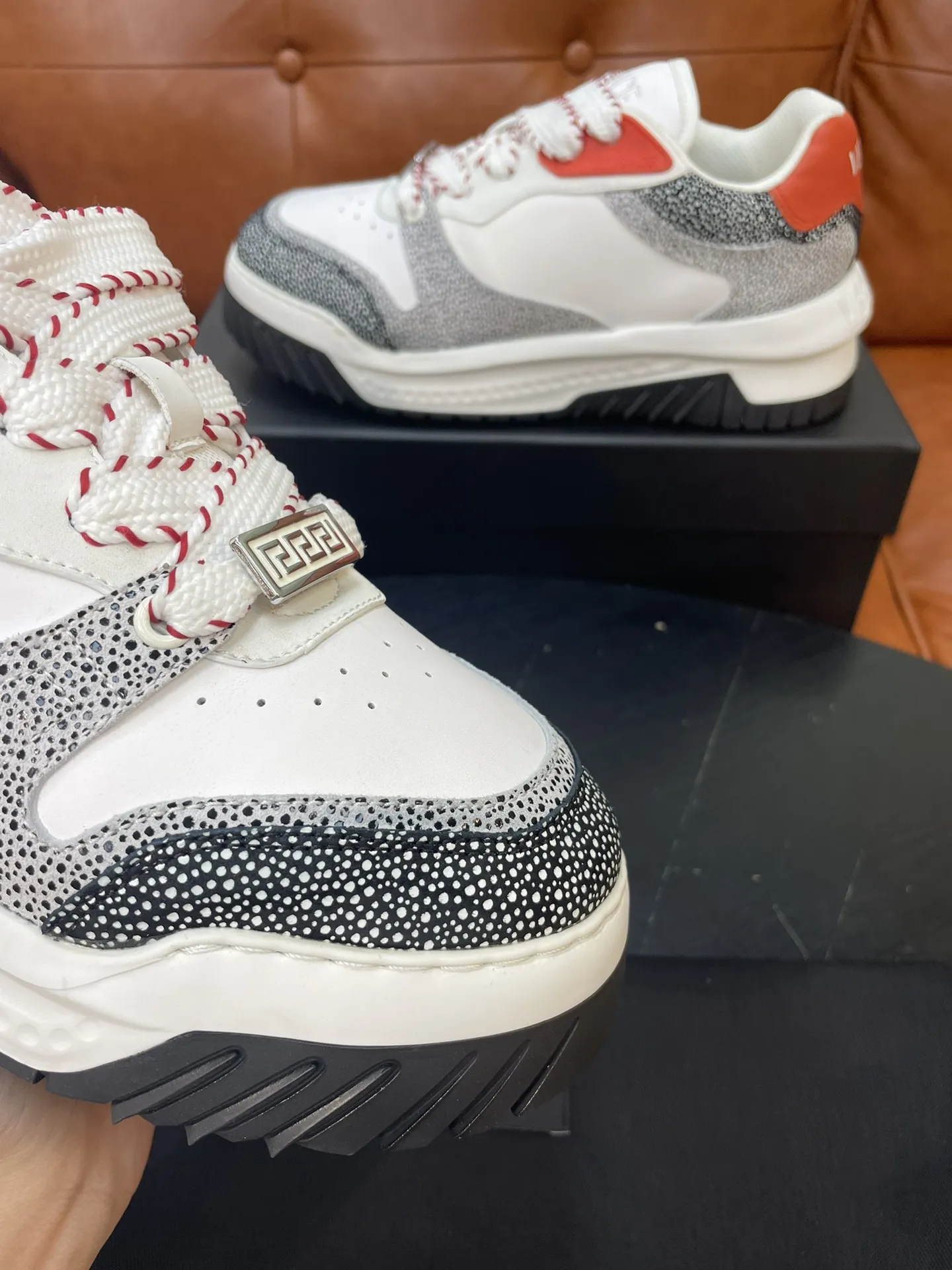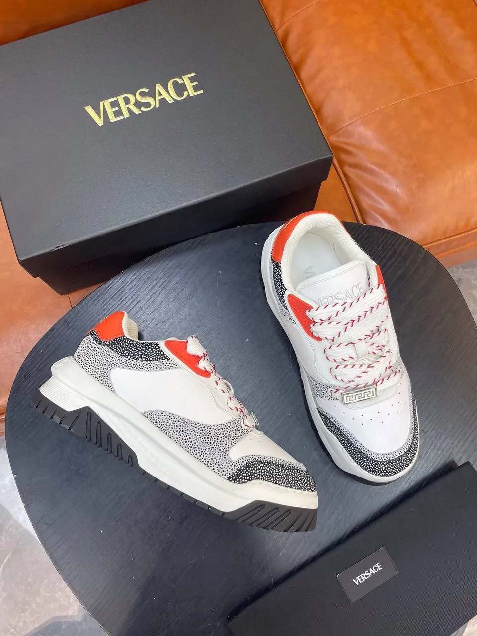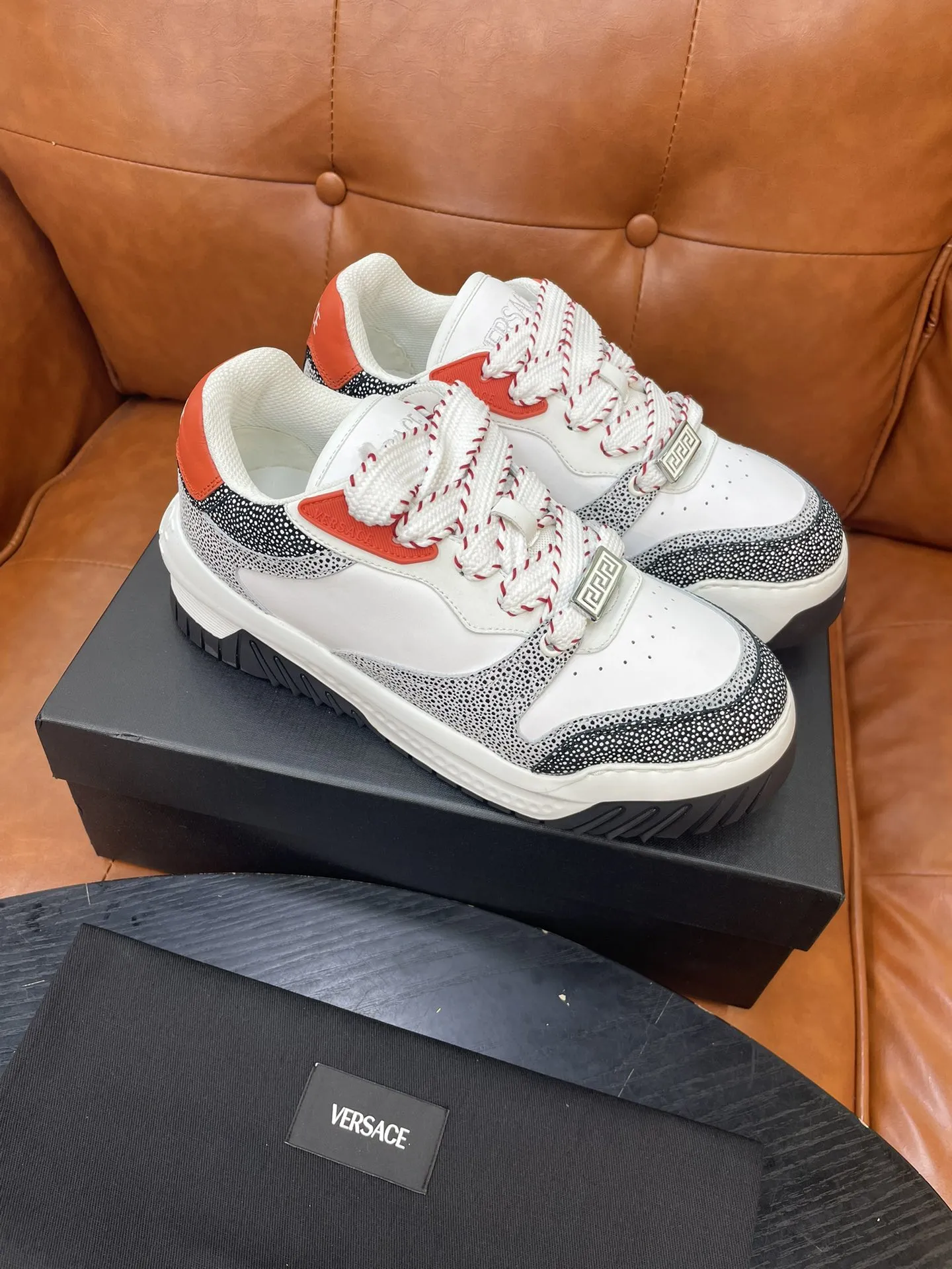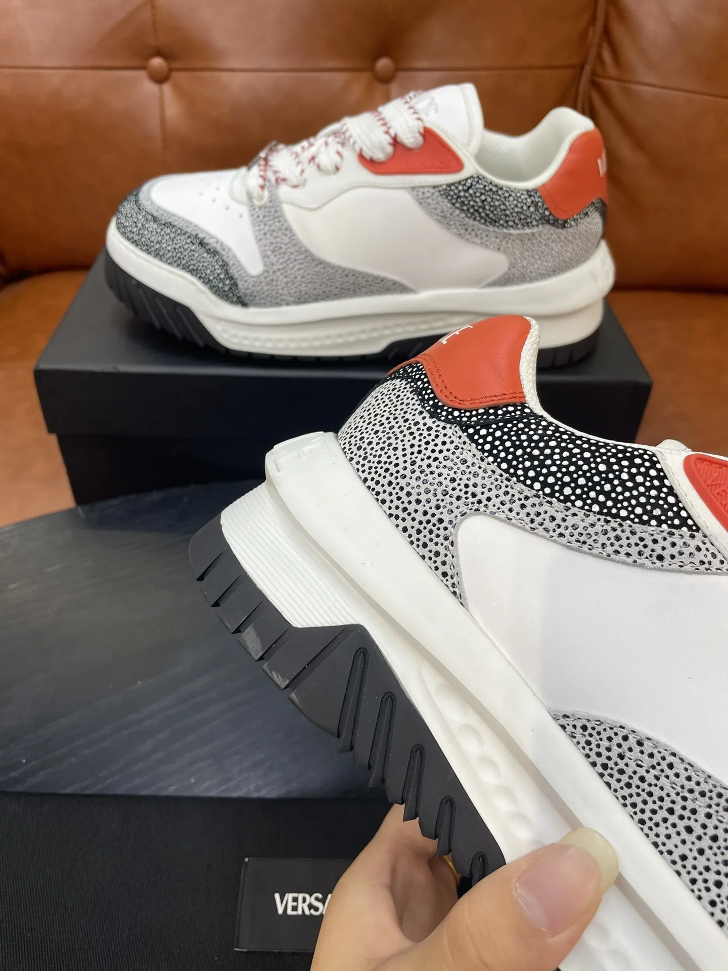 Кроссовки Versace с футуристическим дизайном и использованием качественных материалов, таких как телячья кожа и фактурный канвас, подчеркивают высокий статус бренда. Удобная сетчатая подкладка и легкая подошва из пеноматериала обеспечивают комфорт во время носки. А элементы La Medusa добавляют оригинальности и уникальности, создавая эффектный 3D-вид.