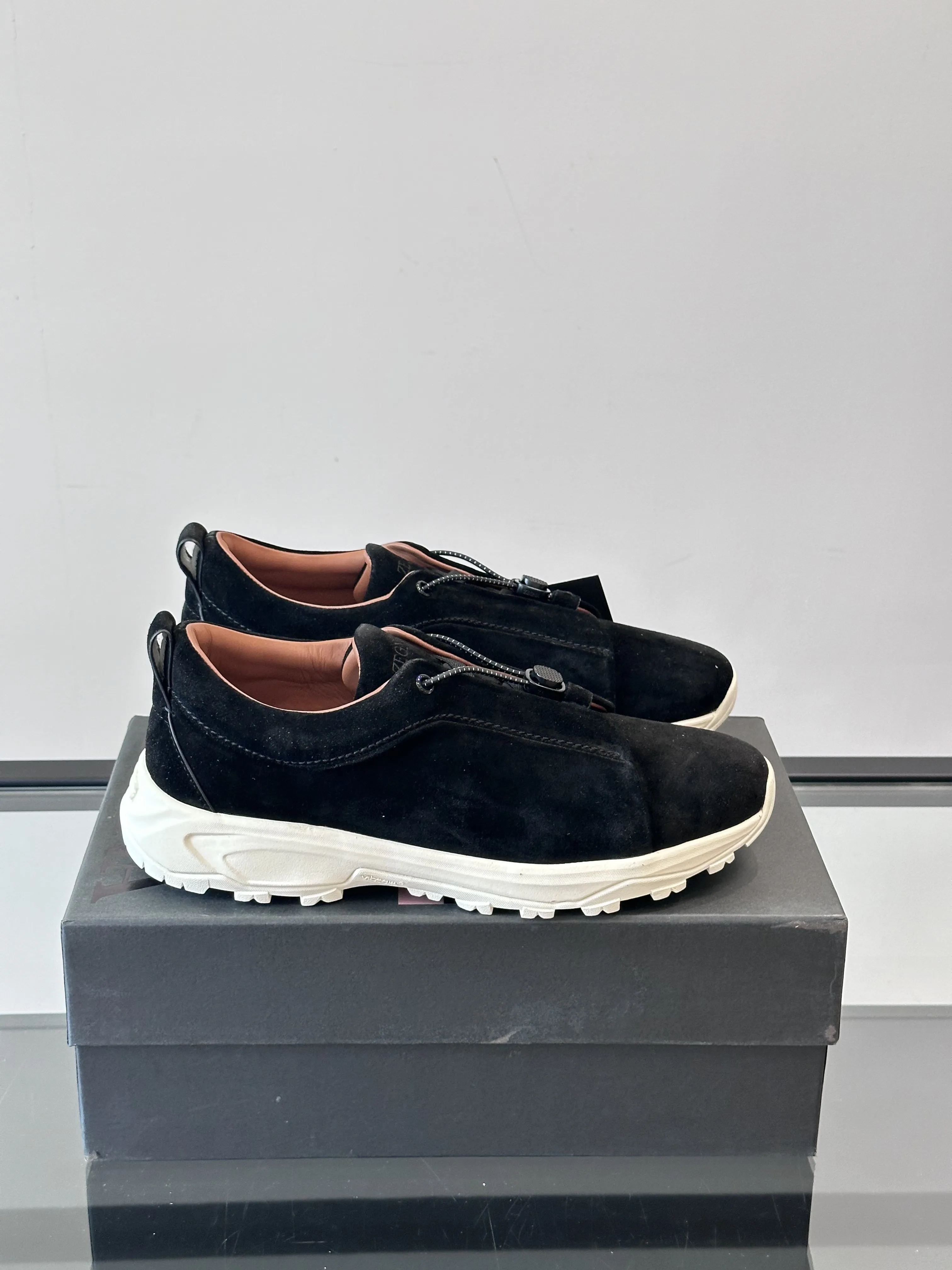Модель выполнена из премиальной замши, что подчёркивает статус и вкус владельца. Удобная подошва с выраженным протектором обеспечивает комфорт при ходьбе и отличное сцепление с поверхностью. Лаконичный дизайн и минималистичные детали делают эти кроссовки универсальным выбором как для повседневных образов, так и для смарт-кэжуал сочетаний.