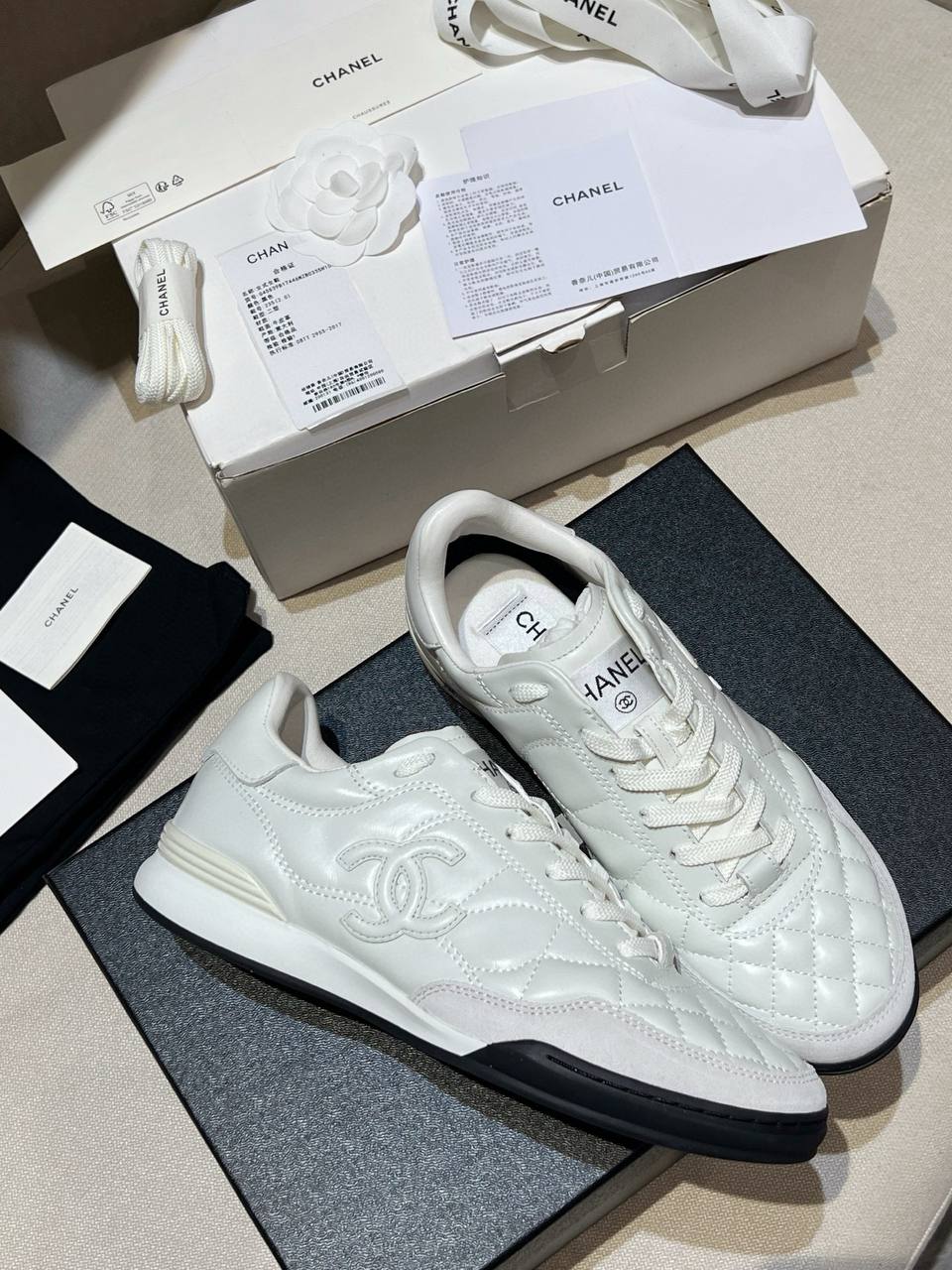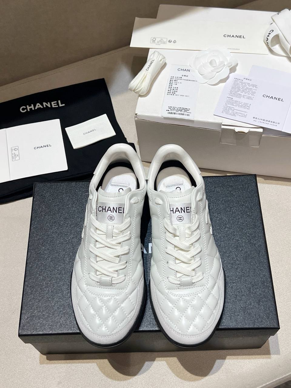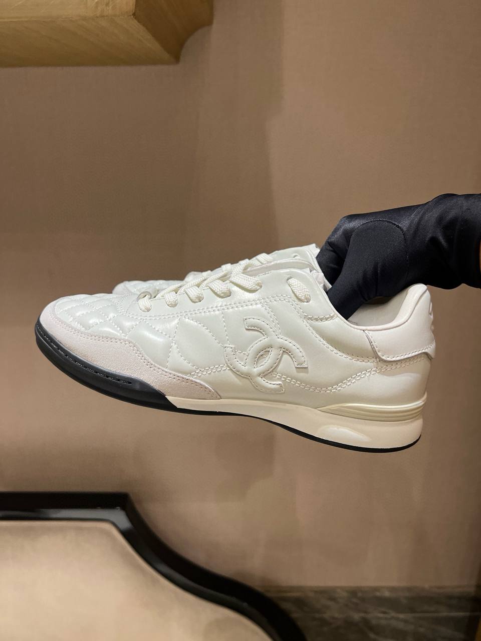 Стильные кроссовки от Chanel идеально сочетают в себе элегантность и комфорт. Модель выполнена из высококачественной кожи с фирменной стёжкой «квадрат», характерной для дома Chanel. Боковая часть украшена культовым логотипом — переплетёнными буквами «CC», что подчеркивает принадлежность к миру высокой моды. Классическая шнуровка обеспечивает идеальную посадку по ноге, а мягкая подкладка гарантирует комфорт даже при длительной носке. Солидная подошва с акцентом добавляет образу современности и практичности. Эти кроссовки станут безупречным выбором для тех, кто ценит стиль, качество и утонченность в каждой детали.