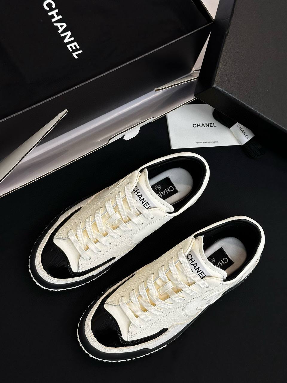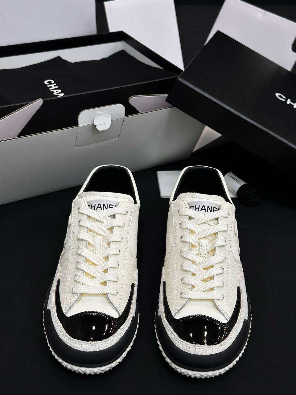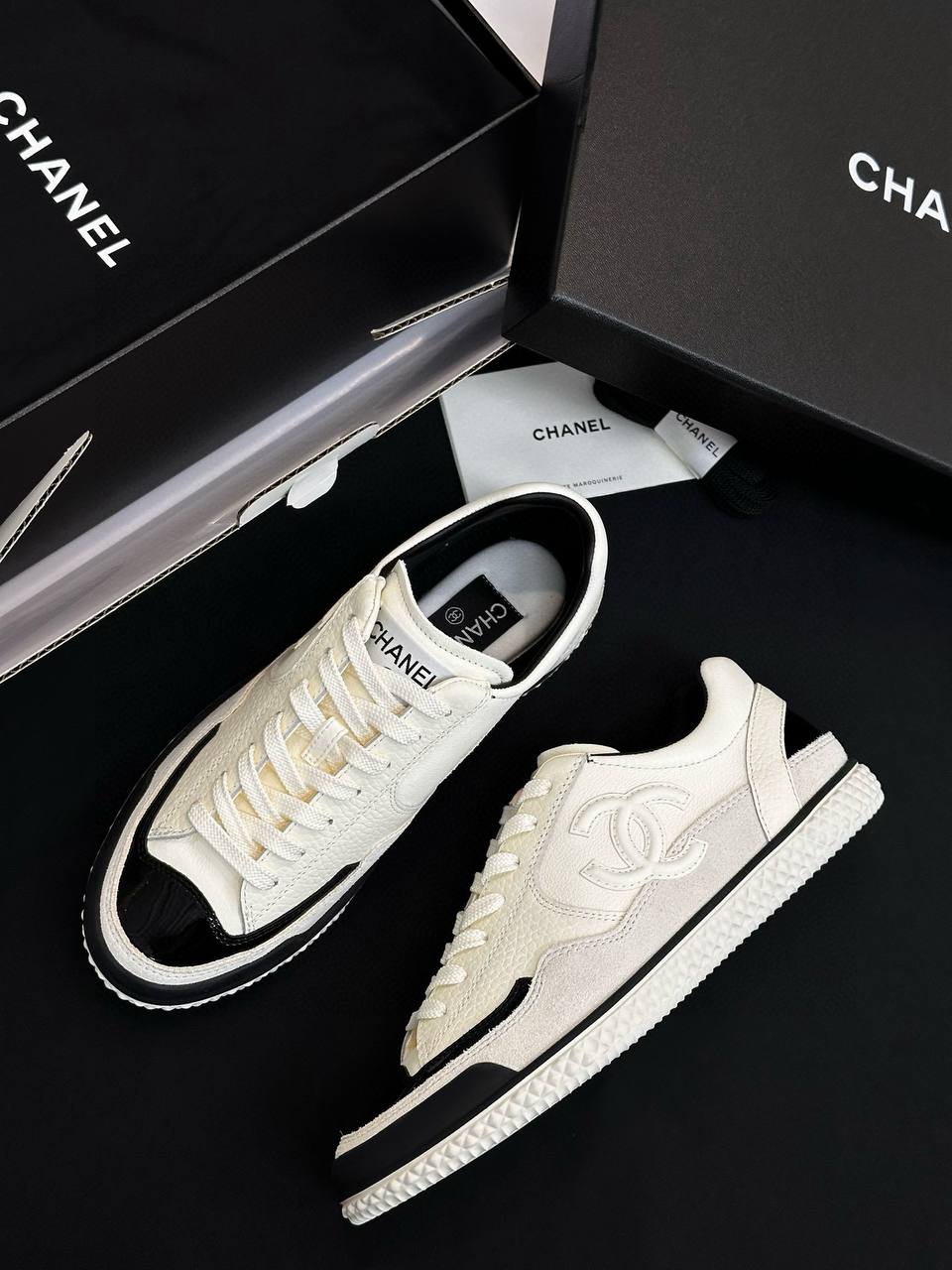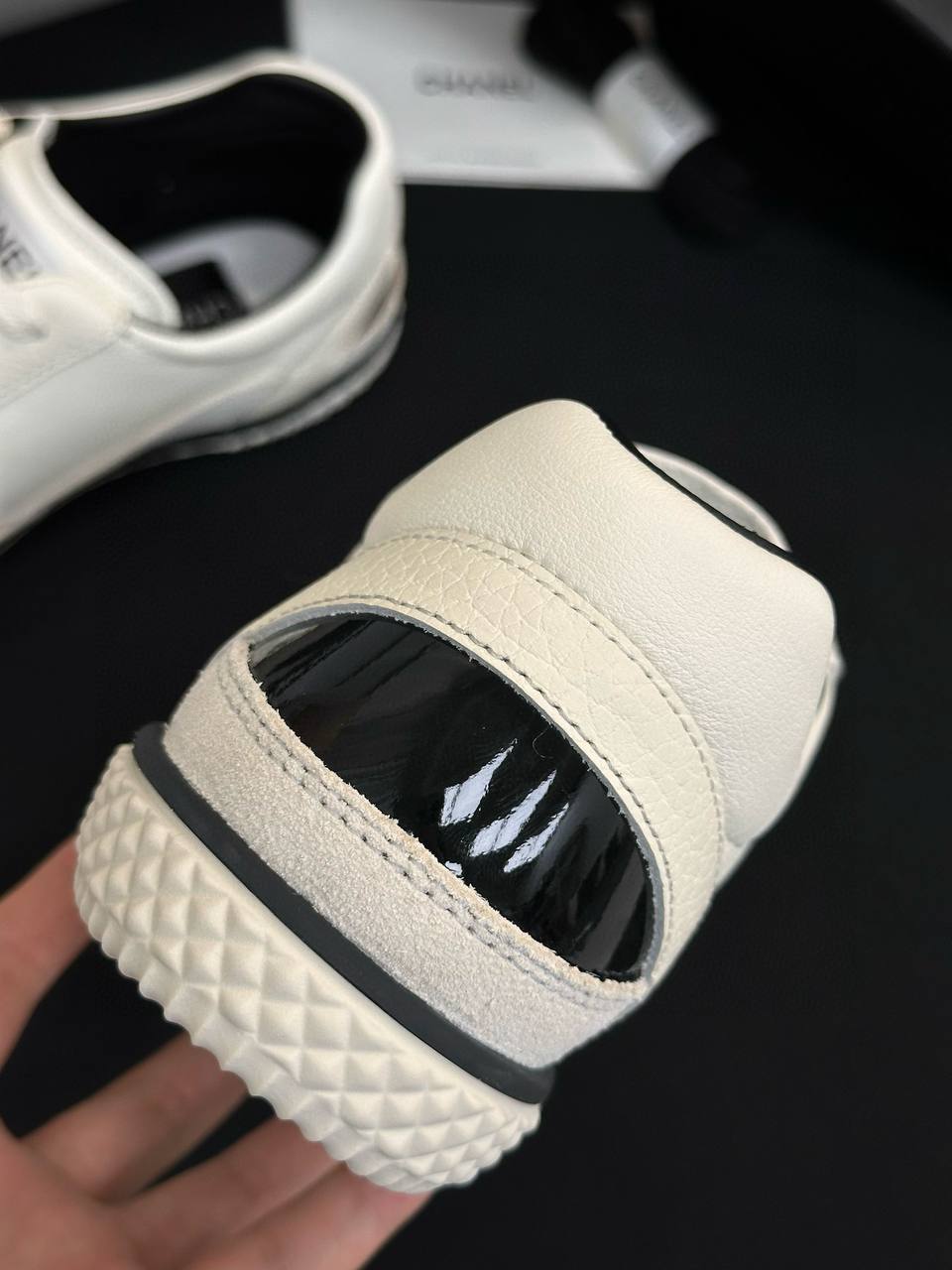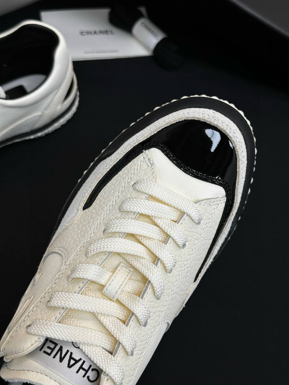Кроссовки Chanel универсальны для любого сезона: кожа дышит летом, а платформа добавляет стабильности осенью; средняя высота подошвы удобна для ходьбы по городу, не утомляя стопу. Модель подходит для разных типов ног — от узких до стандартных, с ортопедической вставкой для комфорта; шнуровка регулируется для идеальной посадки.