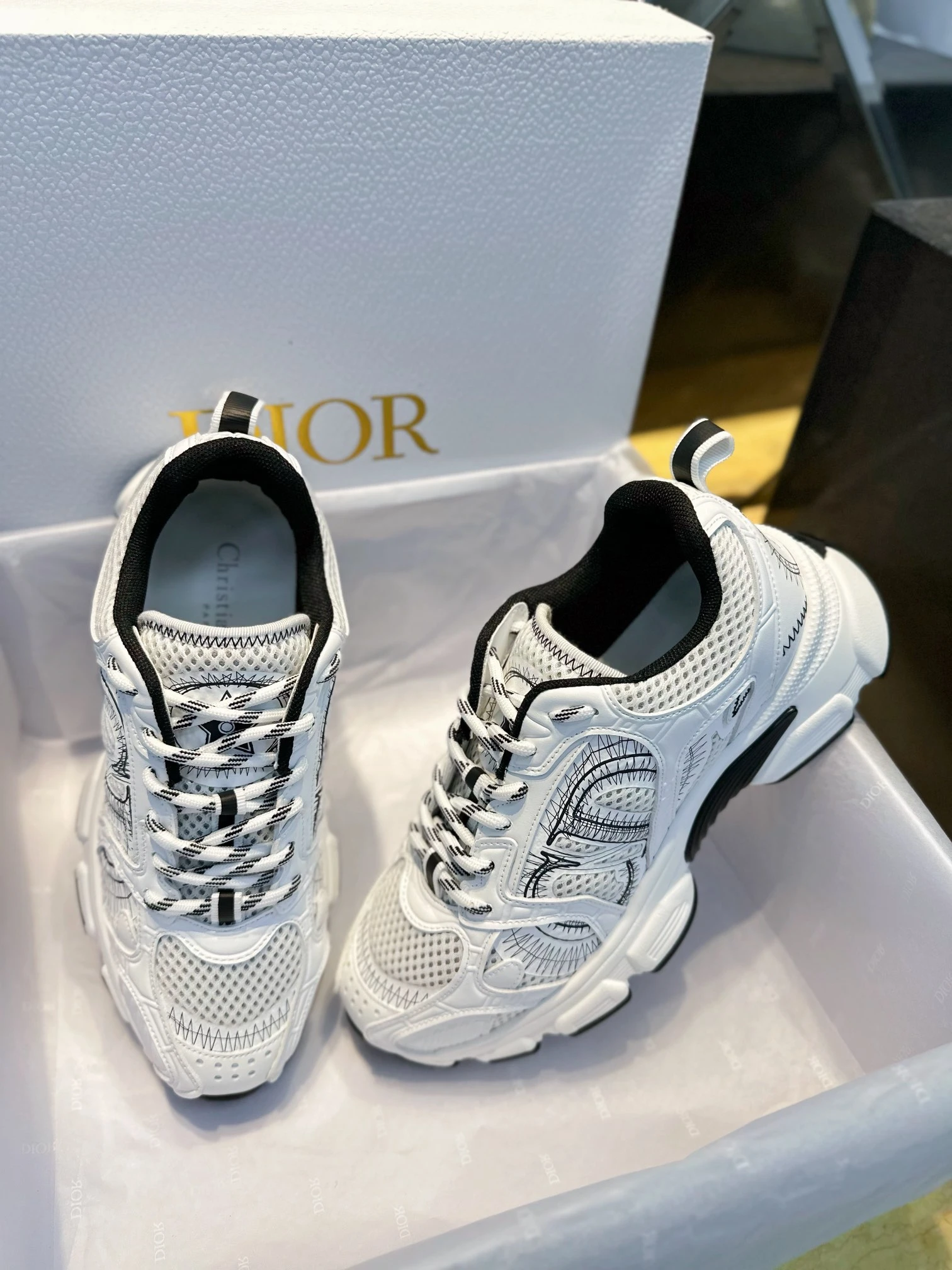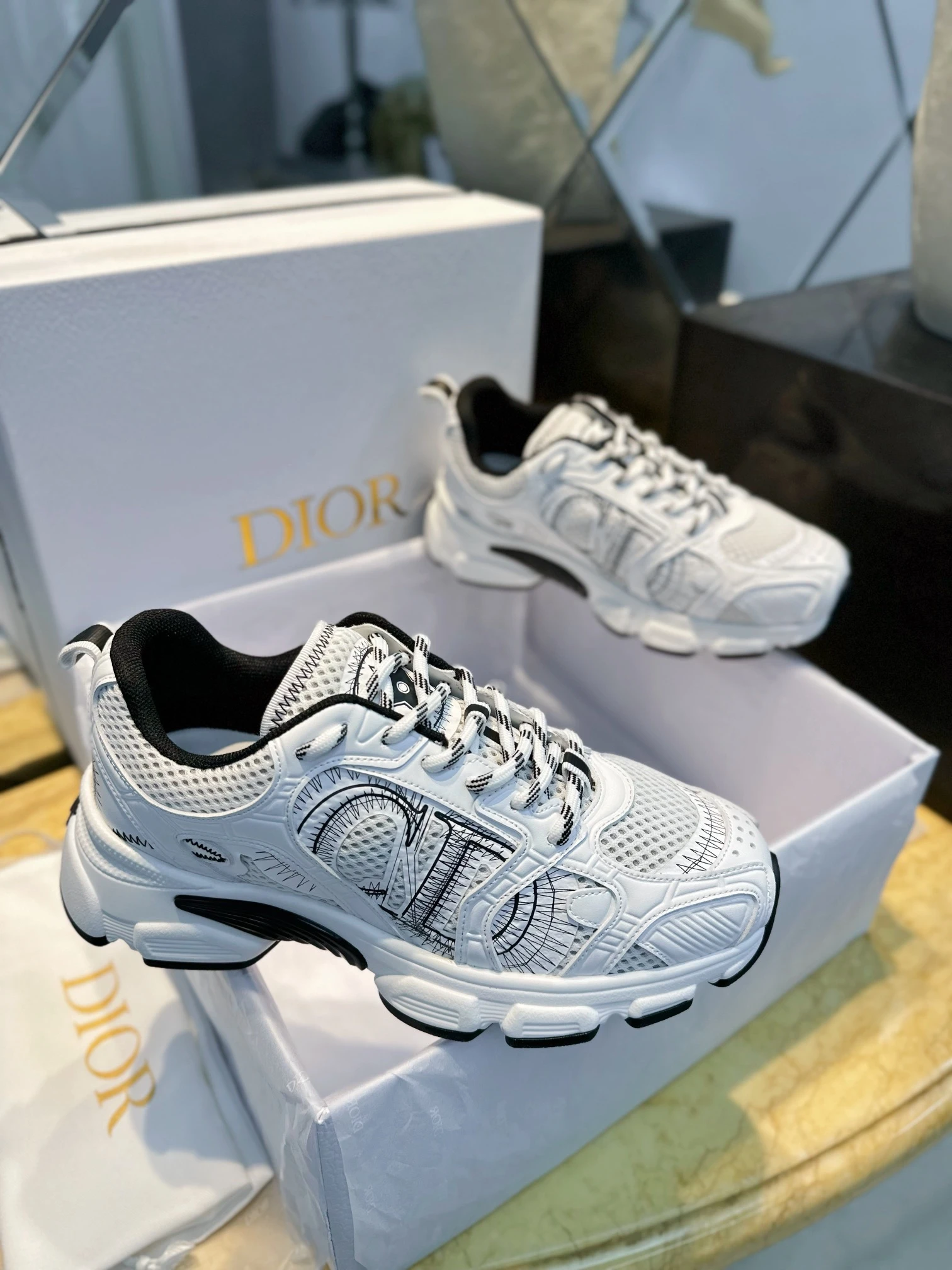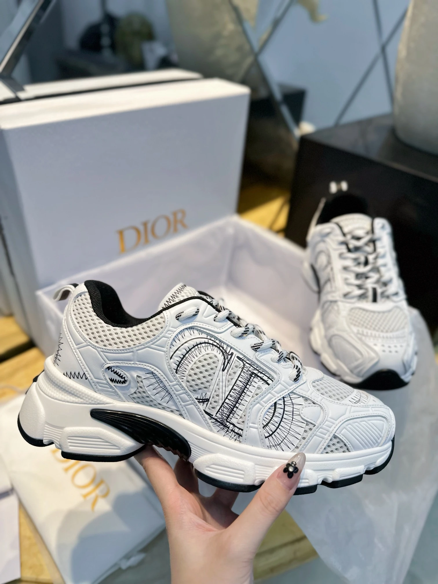 Женские кроссовки CHRISTIAN DIOR — это воплощение современного стиля и элегантности. Модель выполнена из высококачественных материалов в белом цвете с оригинальным дизайнерским принтом и чёрной прострочкой, создающей выразительный эффект. Объёмная подошва обеспечивает комфорт при ходьбе, а контрастный логотип Dior придаёт обуви узнаваемость и модный акцент. Идеальный выбор для создания стильных и динамичных образов на каждый день.