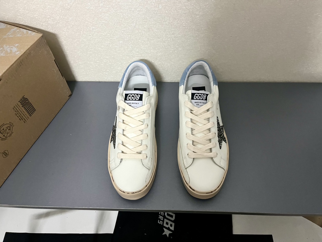 Кроссовки GGDB изготовлены из высококачественной воловьей кожи, что обеспечивает прочность и долговечность обуви. Замшевая звезда сбоку является характерным элементом дизайна бренда и придает кроссовкам стильный и узнаваемый вид.