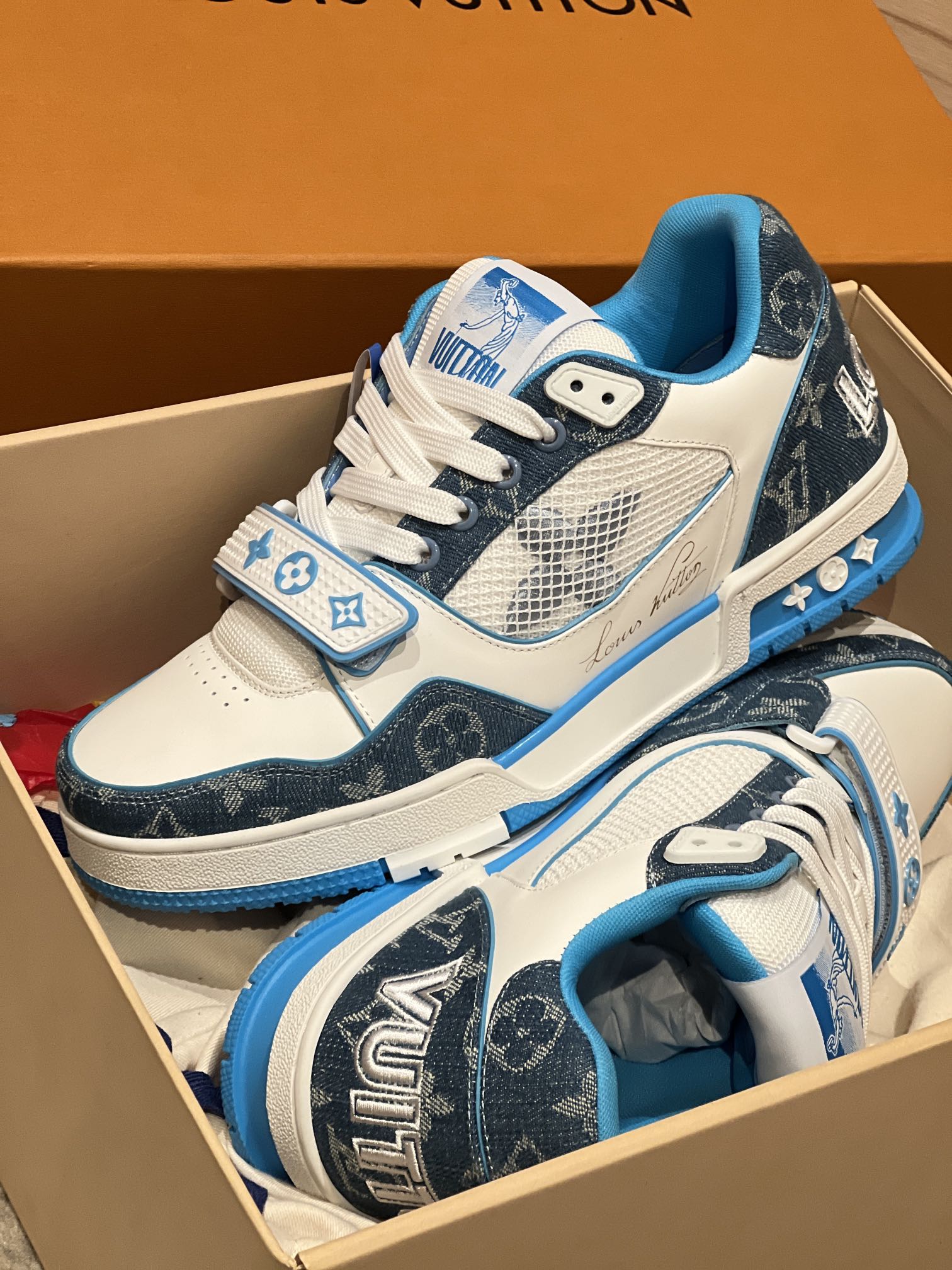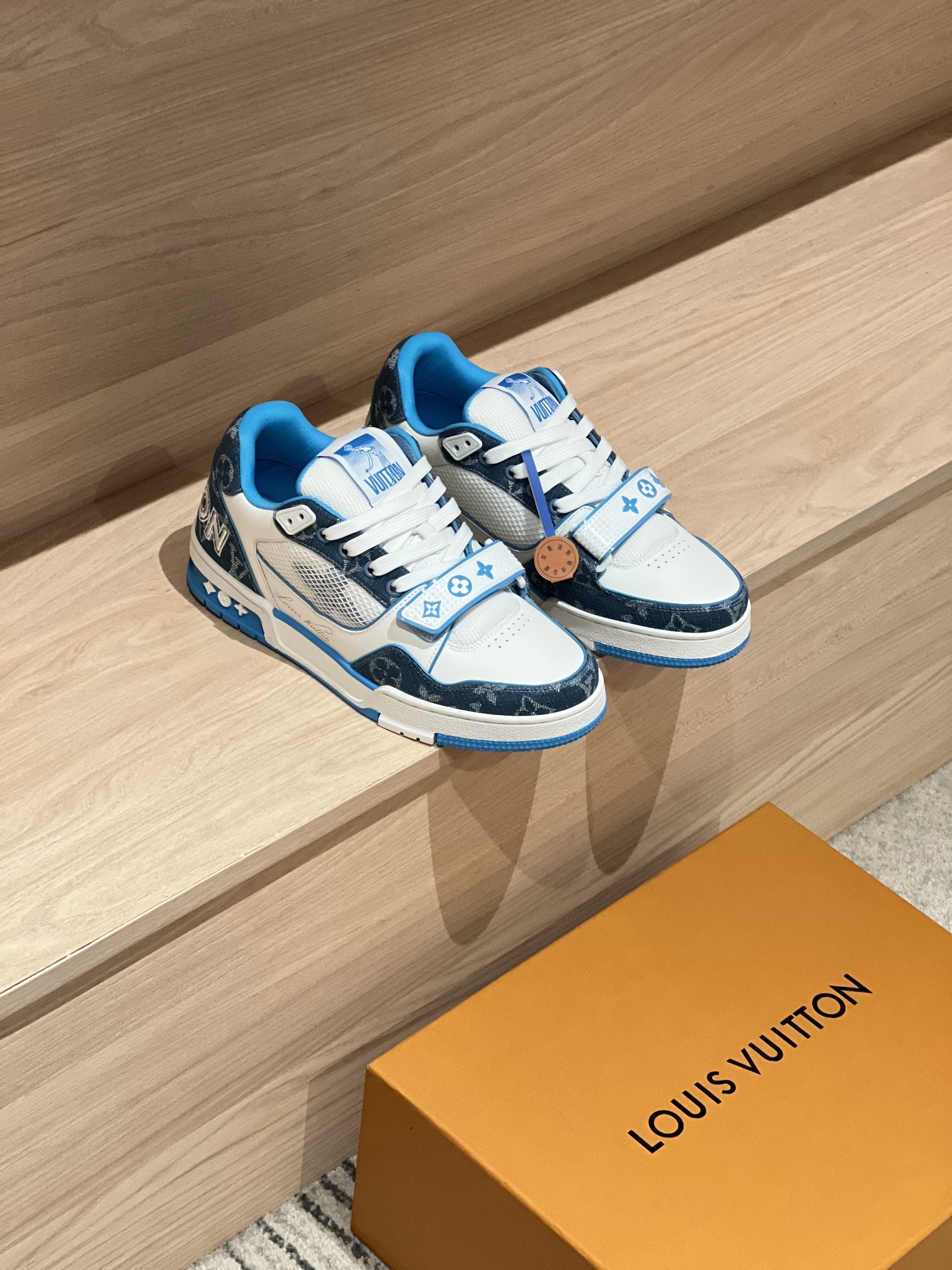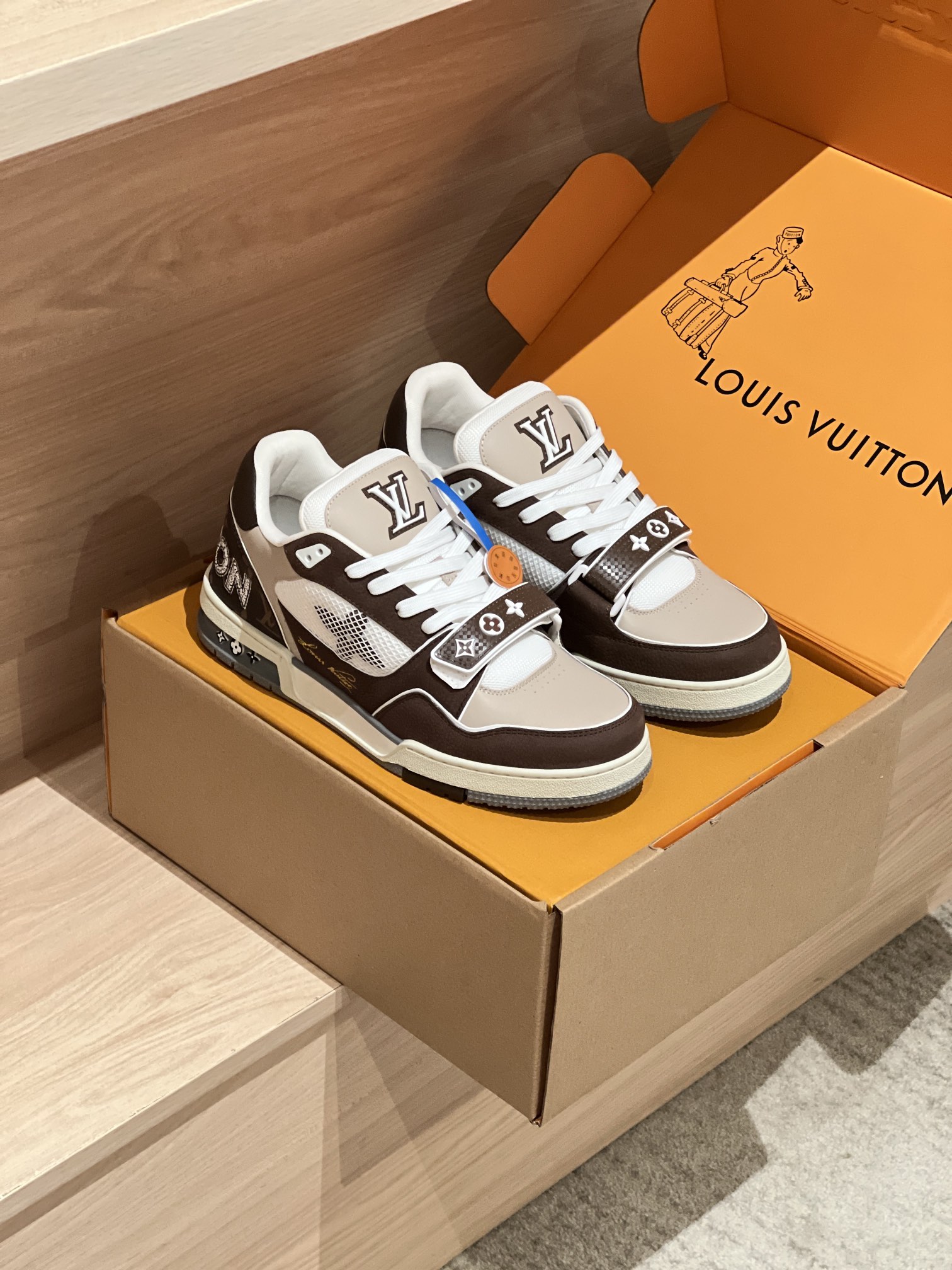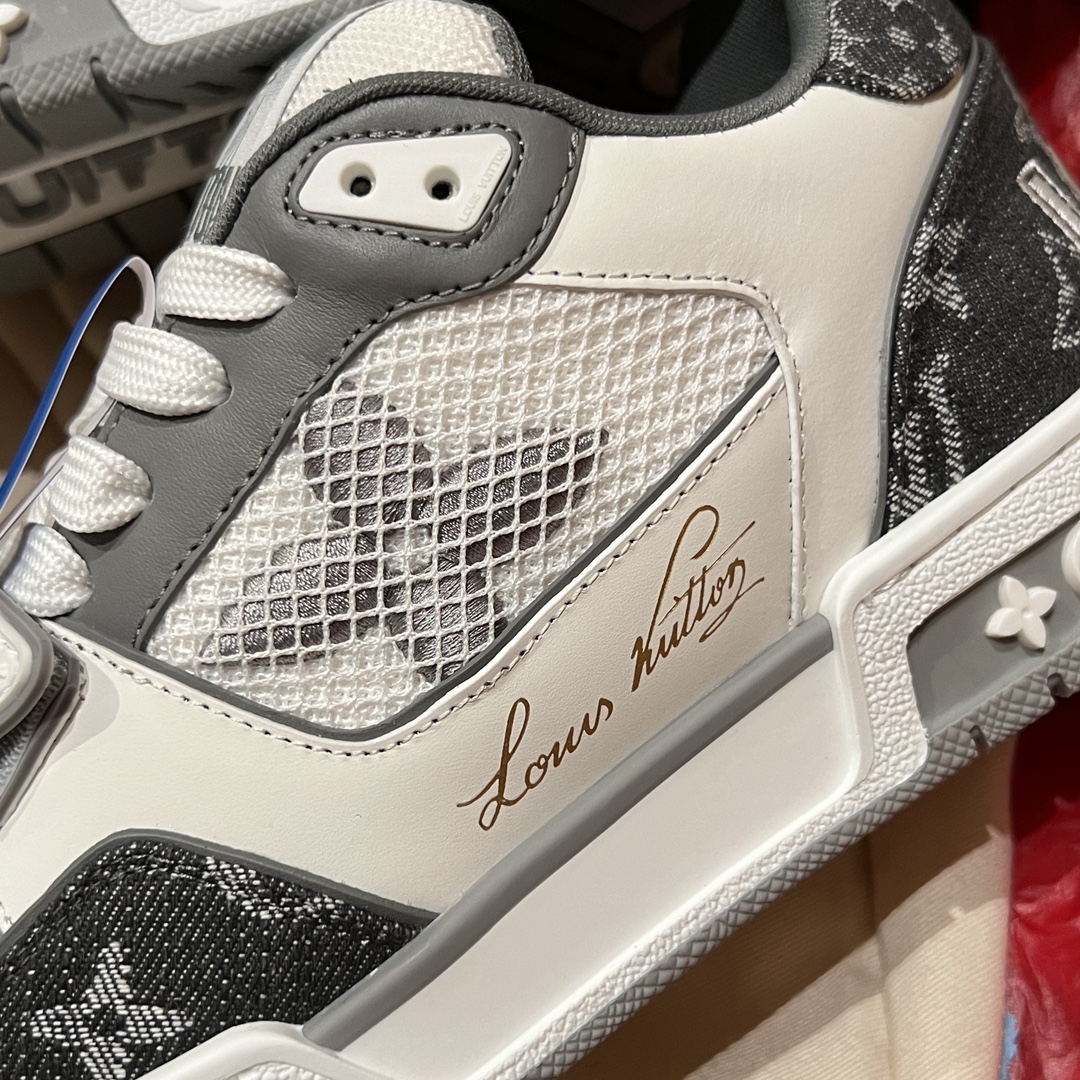 Новая интерпретация легендарных кроссовок LV Trainer сочетает в себе гладкую и зернистую кожу телёнка с деталями из канвы Monogram. Вдохновением для уникального дизайна послужила винтажная баскетбольная обувь. Крупный цветок Monogram и асимметричные подписи Louis и Vuitton завершают образ.