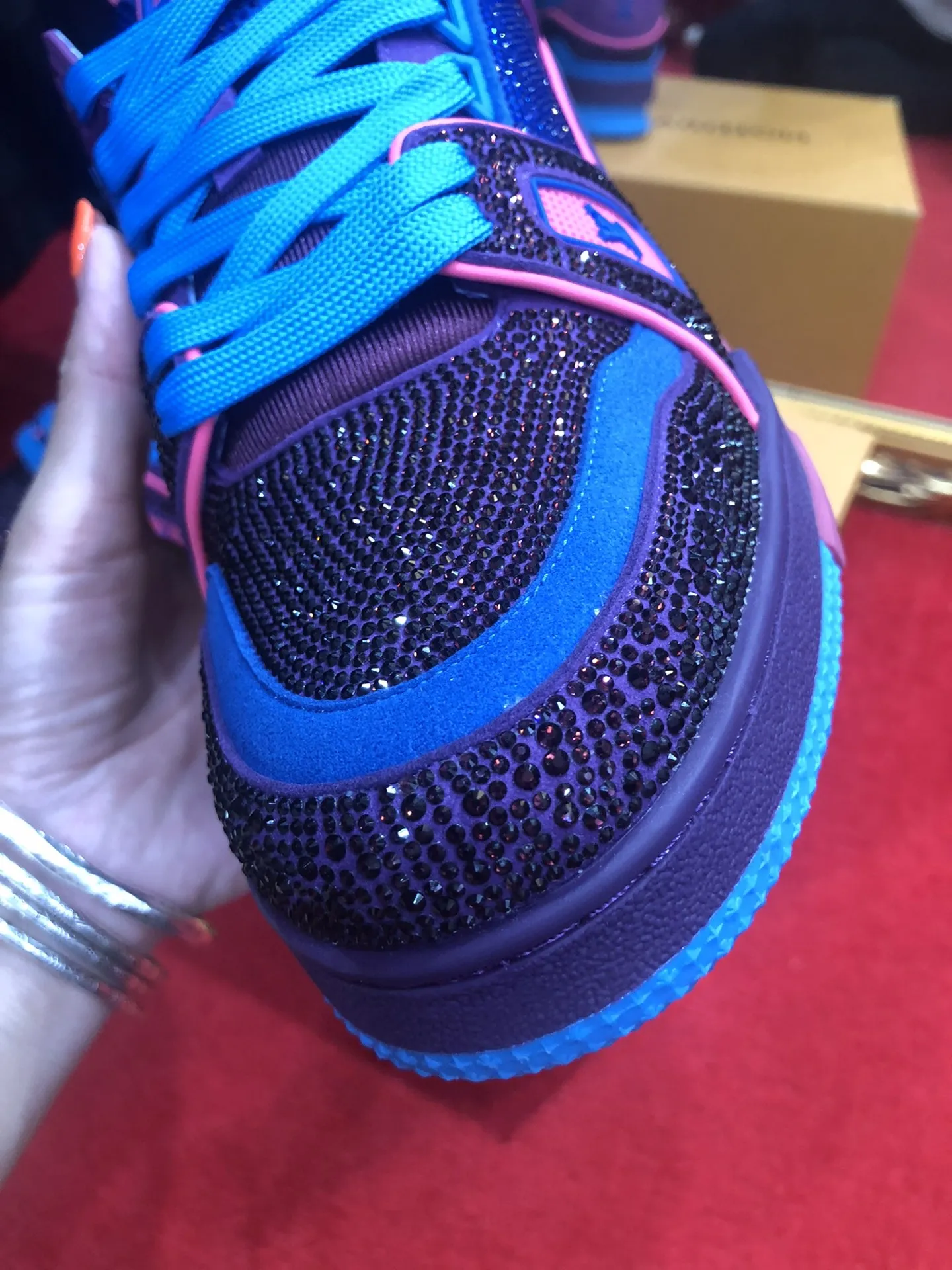 Элегантные и роскошные кроссовки от Louis Vuitton с дизайном из страз в новом цвете. Изготовленные из высококачественной телячьей кожи, выделяются своим стильным логотипом и подписью бренда, элегантно расположенными на боковой части. Подушечки для ног из воловьей кожи дополнены сетчатым покрытием, что обеспечивает невероятный комфорт и поддержку во время ношения. Стильная двухцветная комбинированная подошва из ТПУ, является не только эстетически приятной, но и функциональной. Технология Goodyear, используемая для изготовления, гарантирует прочность и долговечность изделия благодаря качественной строчке и оверлоку.