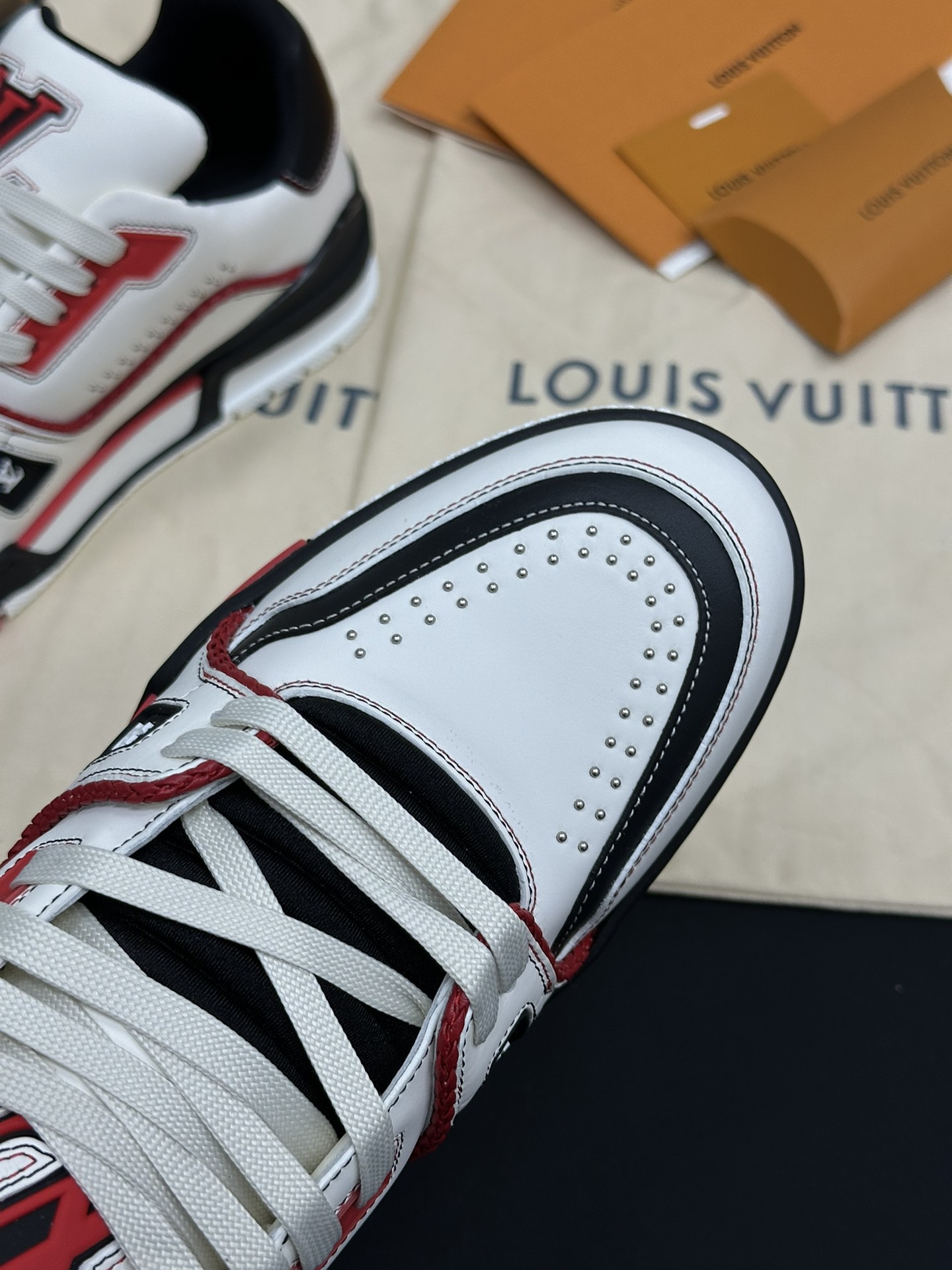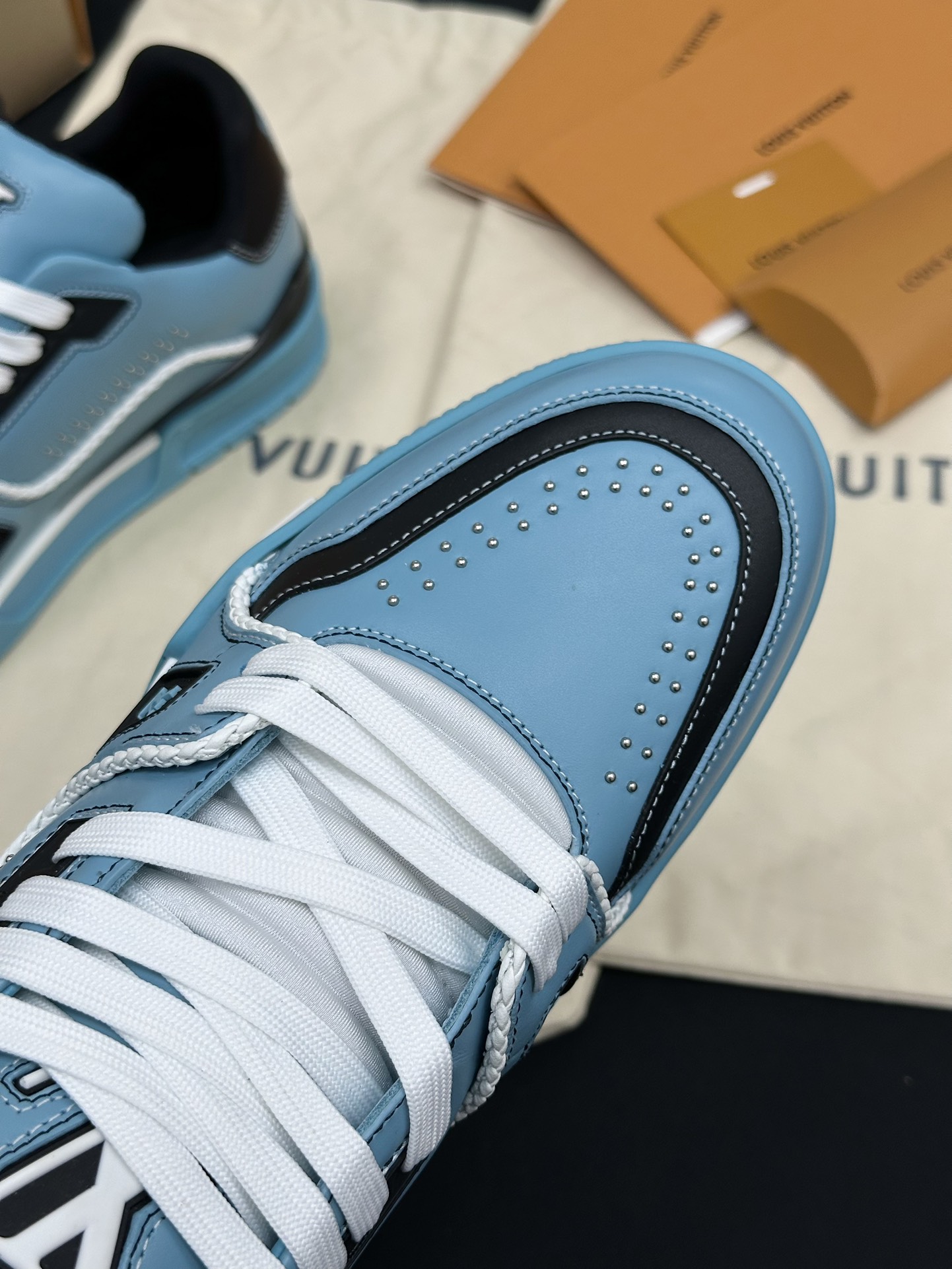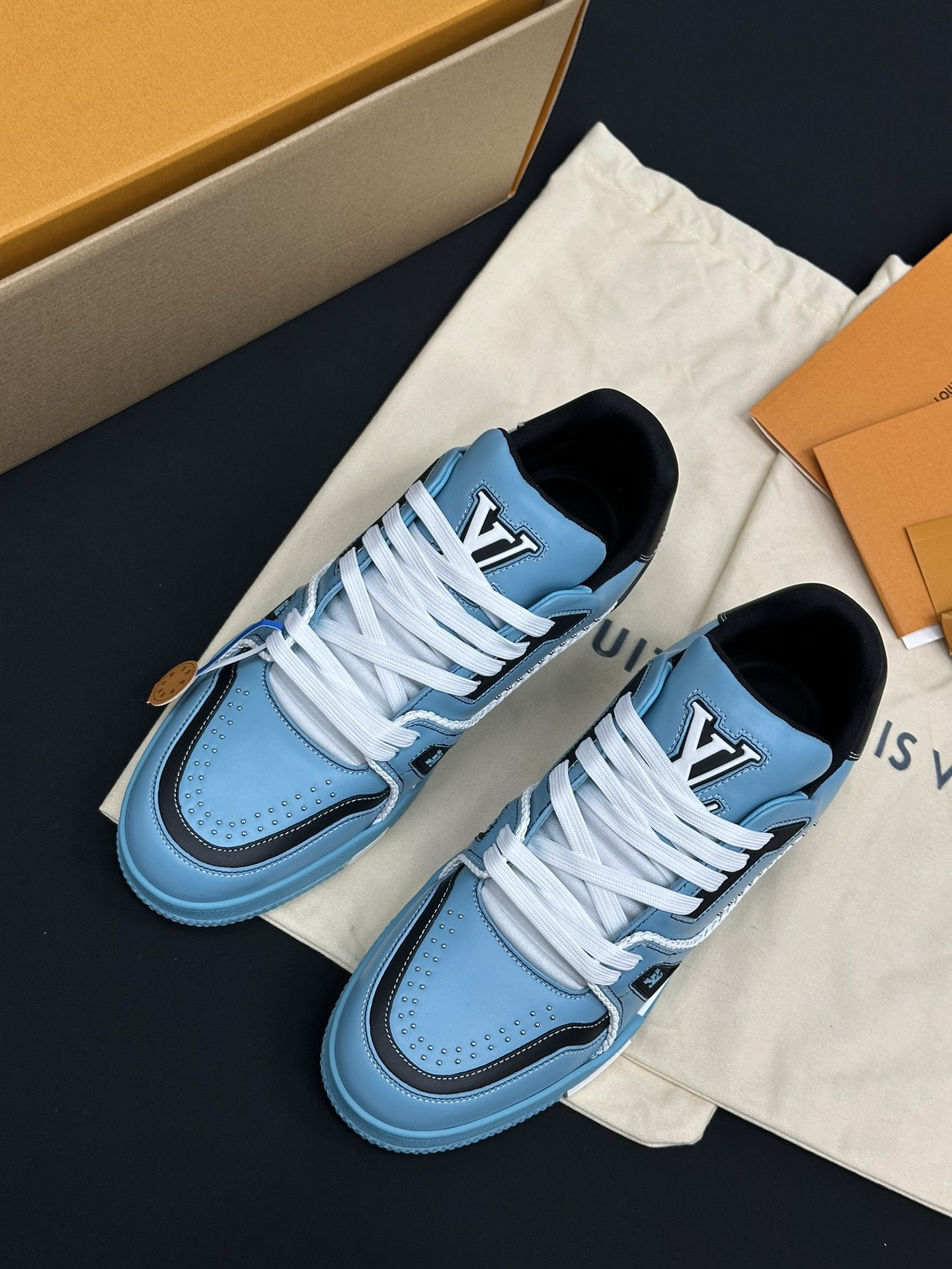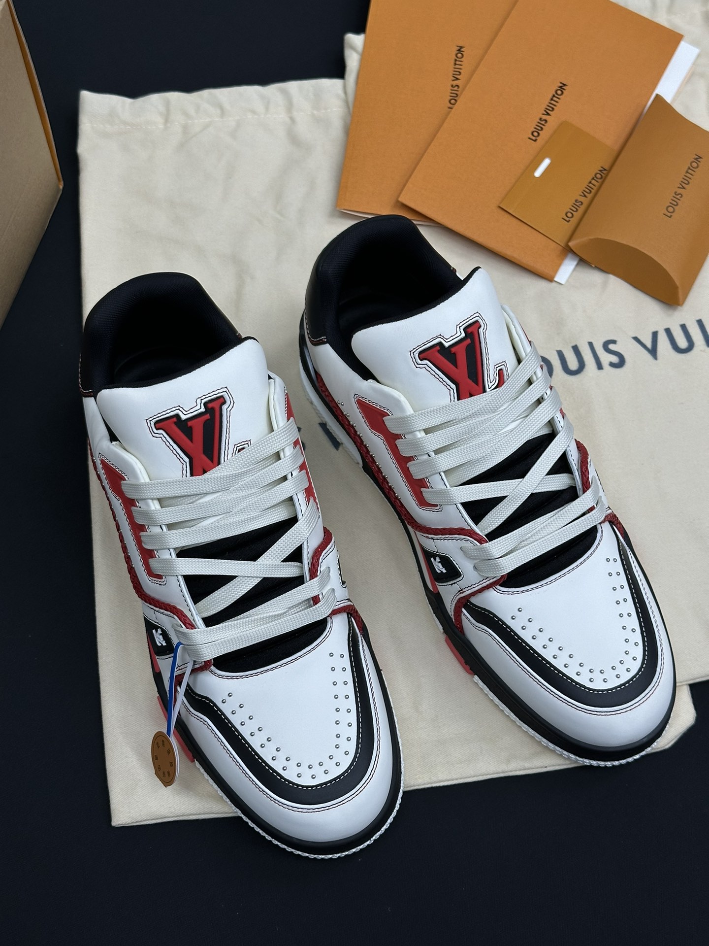 • Фирменные детали: Каждая модель украшена логотипом Louis Vuitton и контрастными декоративными элементами, что подчеркивает статус бренда и делает обувь настоящим произведением искусства.
