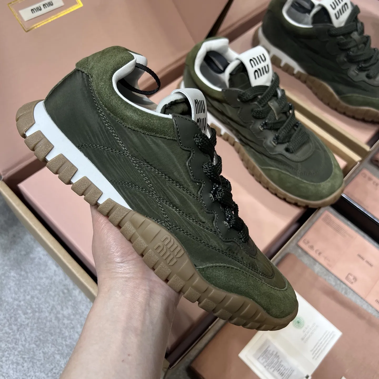 Освежите свой весенне-летний гардероб этими стильными и удобными кроссовками Miu Miu, вдохновленными культовым образом Forrest Gump. Сочетая в себе непринужденность и роскошь, эта модель идеально подходит для создания модных повседневных образов. Эксклюзивная комбинация фирменной ткани Miu Miu и мягкой коровьей замши создает эффектную текстуру и обеспечивает превосходный комфорт. Подкладка из высококачественной импортной овчины дарит ощущение мягкости и уюта на протяжении всего дня. Легкая и прочная подошва из ТПУ, гарантирует надежное сцепление с поверхностью и устойчивость к износу.
