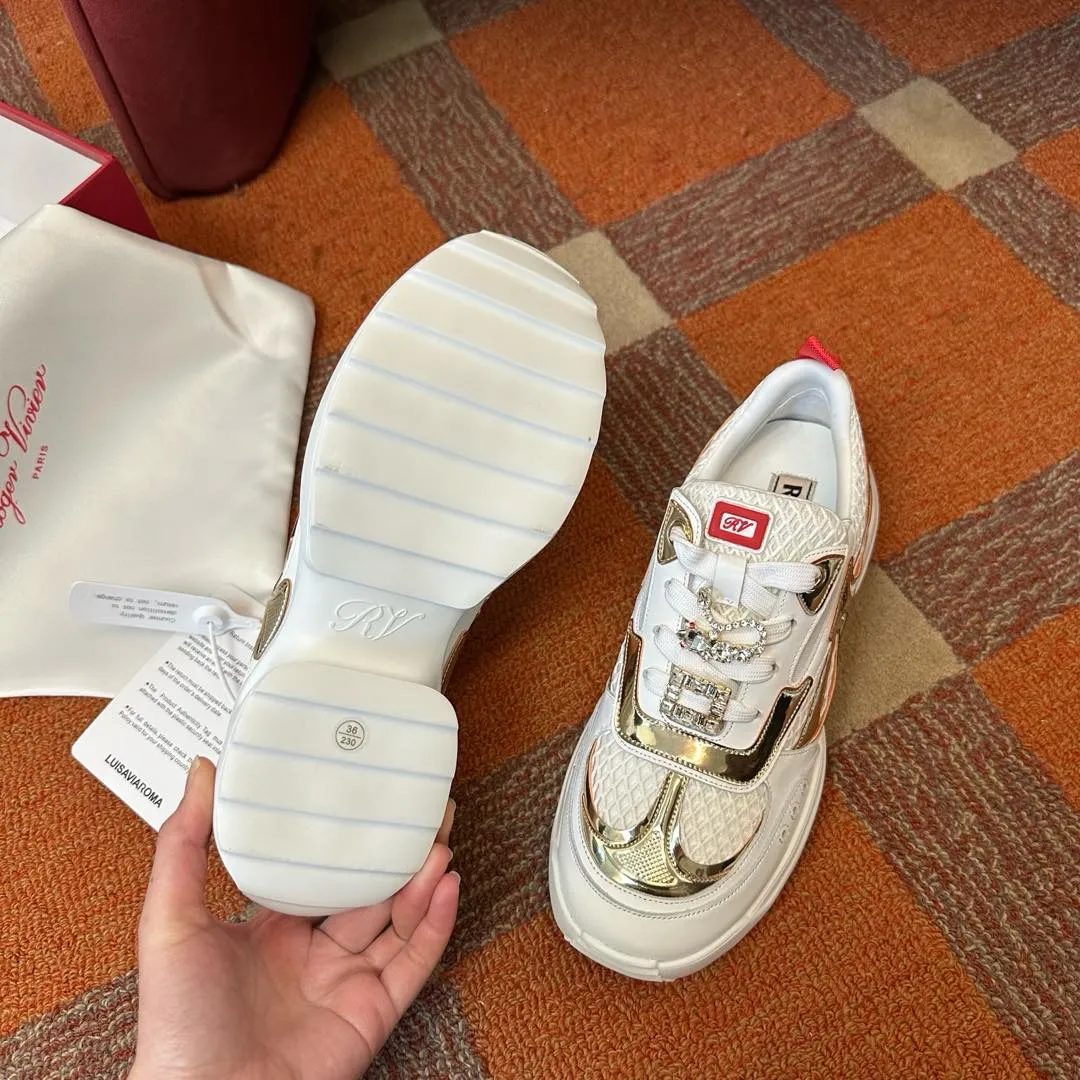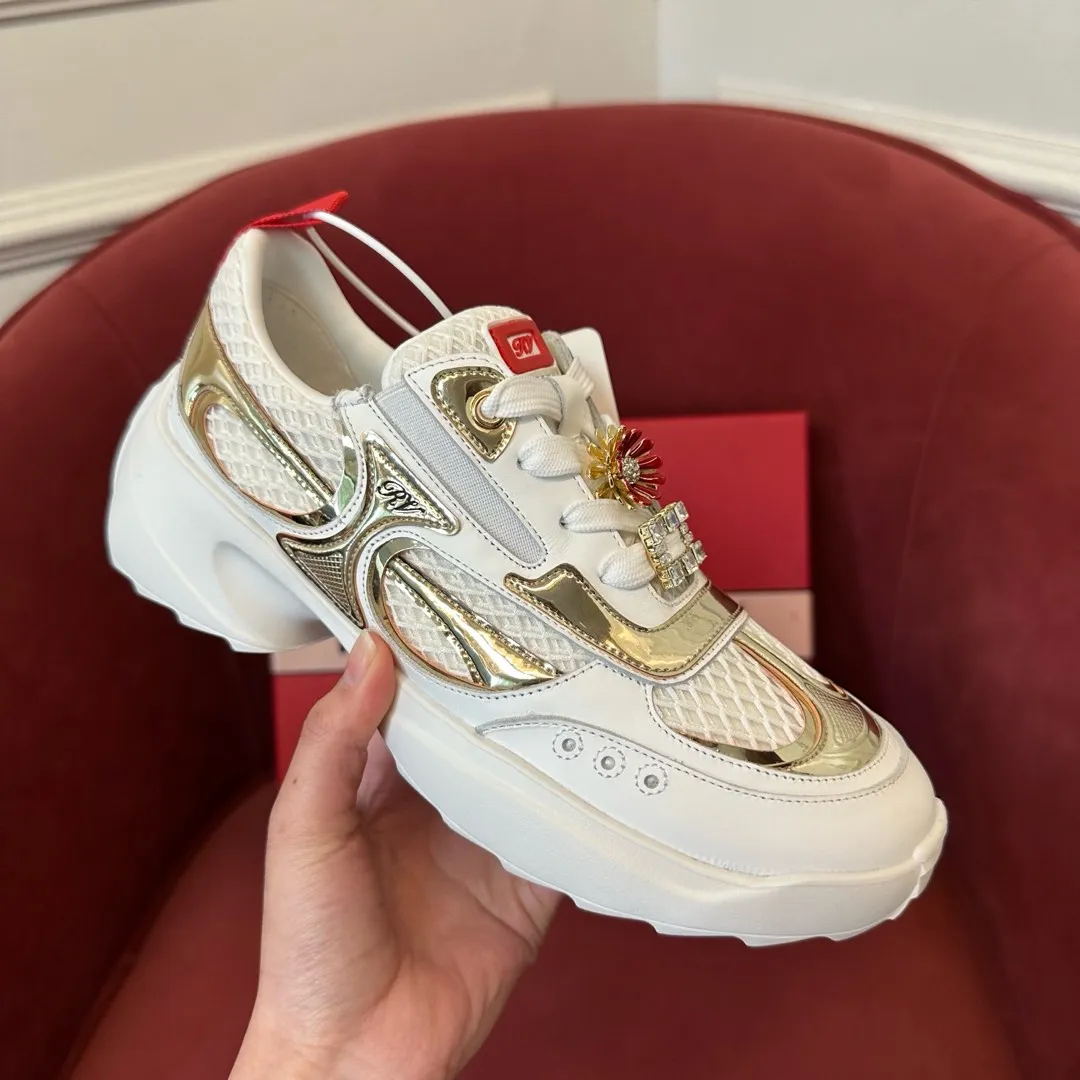 Женские кроссовки Roger Vivier — это воплощение элегантности и роскоши в спортивном стиле. Каждая пара отличается уникальным декором: изысканные кристаллы, фирменные пряжки и модные металлизированные элементы придают обуви особую утонченность.