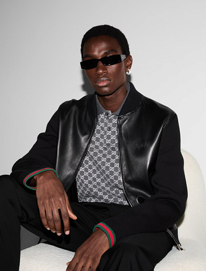 GUCCI Мужской кожаный бомбер с вязанными рукавами