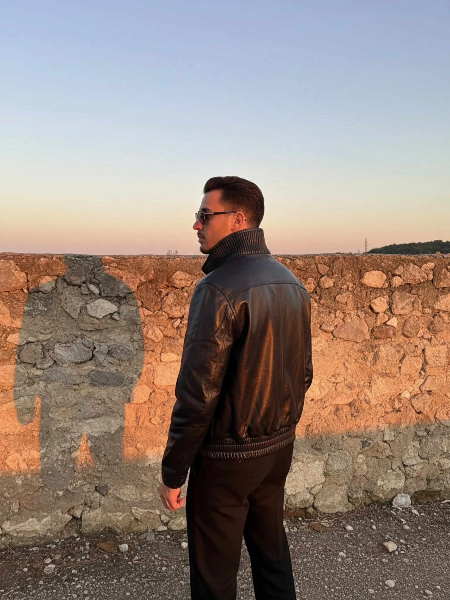 Строгая и современная кожаная куртка в лаконичном черном цвете — идеальный выбор для тех, кто ценит минимализм и продуманную функциональность. Сдержанные линии, рельефная конструкция и высокая рубчатая стойка придают изделию архитектурный силуэт и актуальный городской характер.