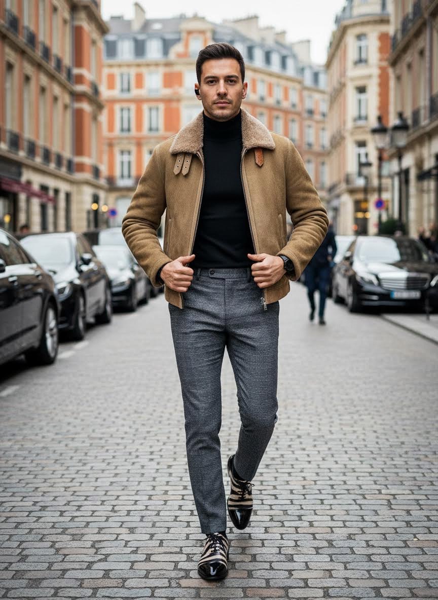 • Силуэт и посадка: укороченная модель в стиле авиатор/бомбер — прямой, слегка просторный крой, подходящий для многослойности. Длина до линии пояса.