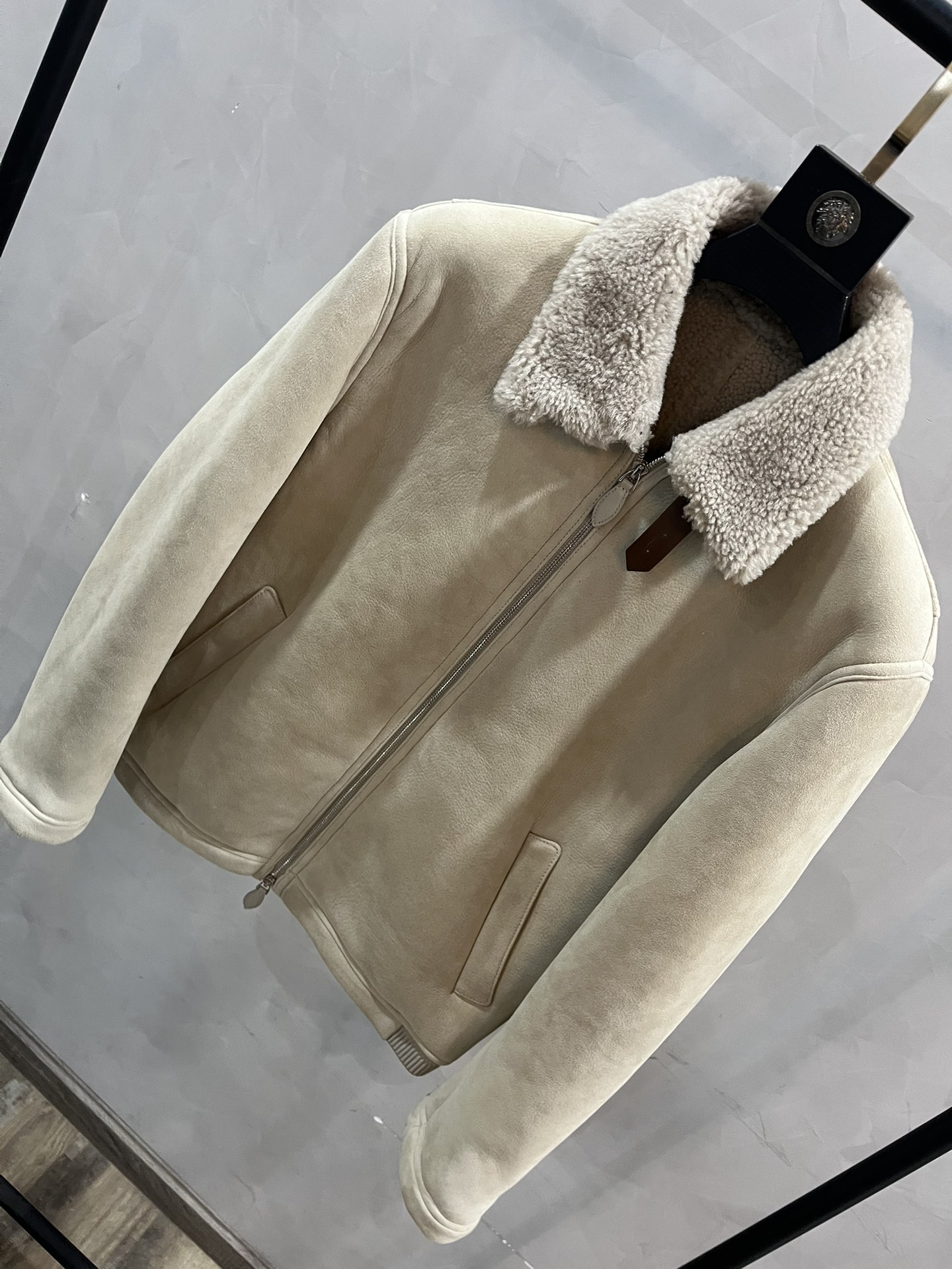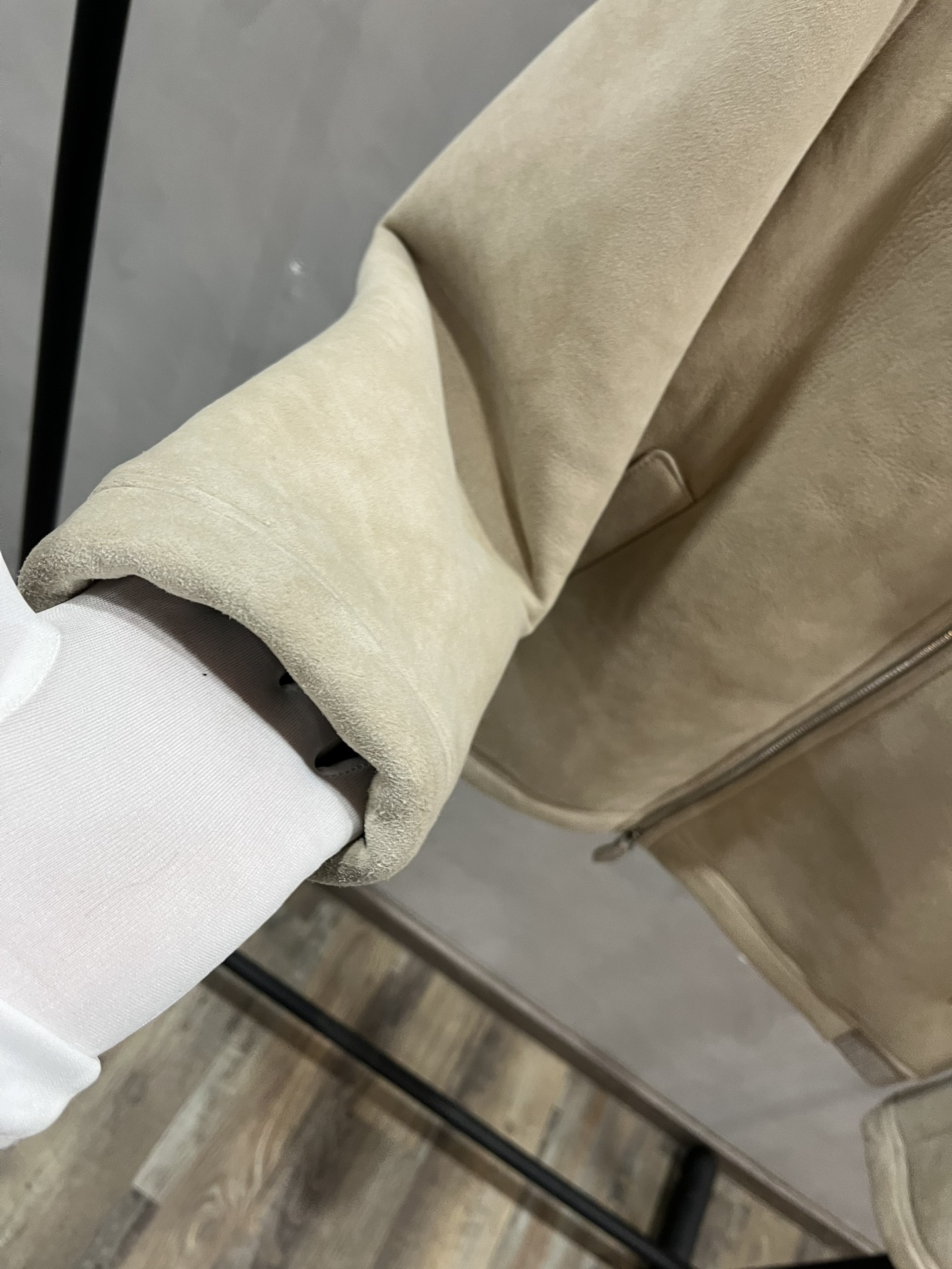 Элегантная мужская куртка от Berluti, выполненная из высококачественной замши, представляет собой идеальное сочетание стиля и комфорта. Мягкая текстура материала обеспечивает приятные тактильные ощущения, а светлый оттенок добавляет изысканности и утонченности в образ.