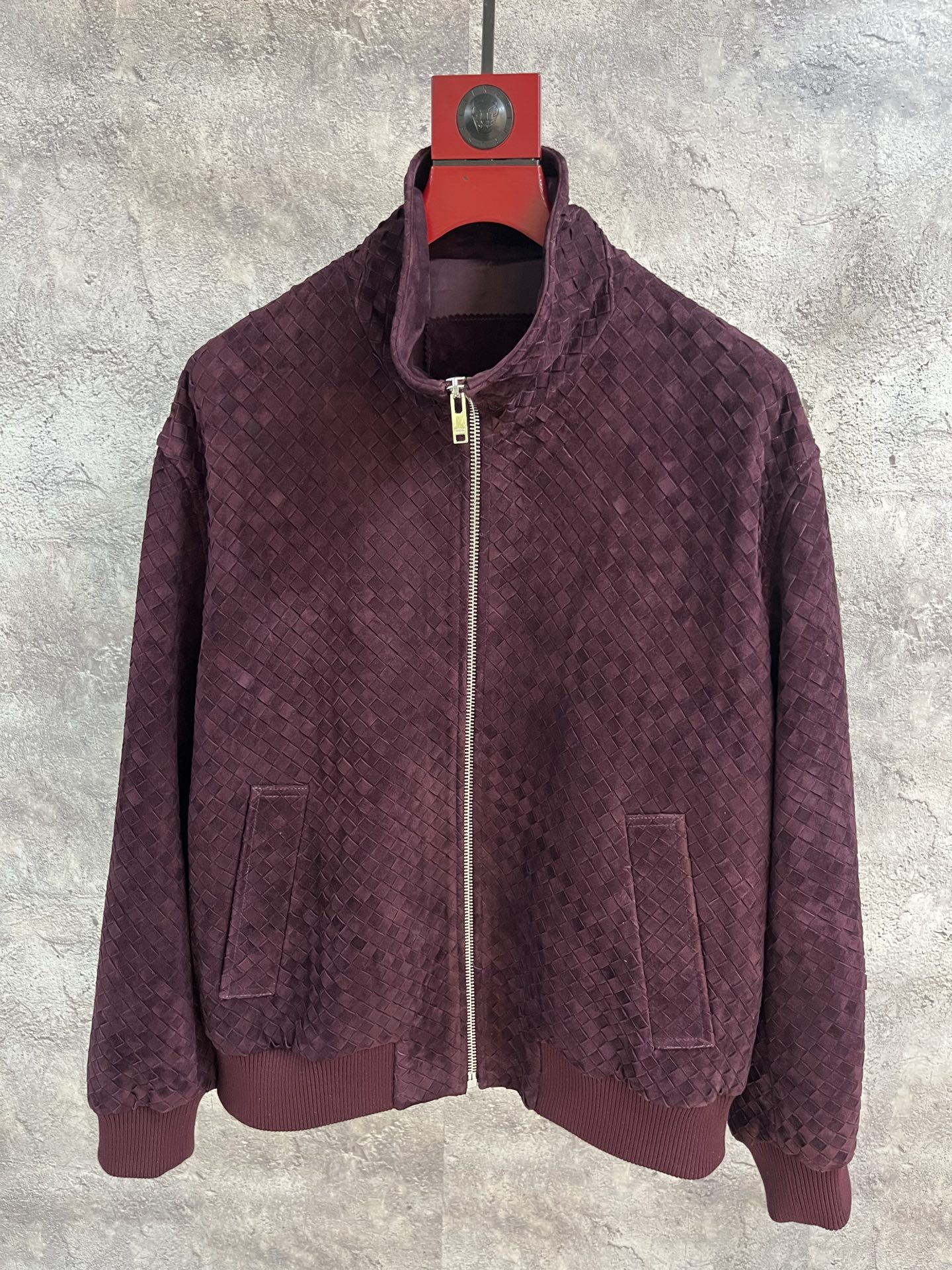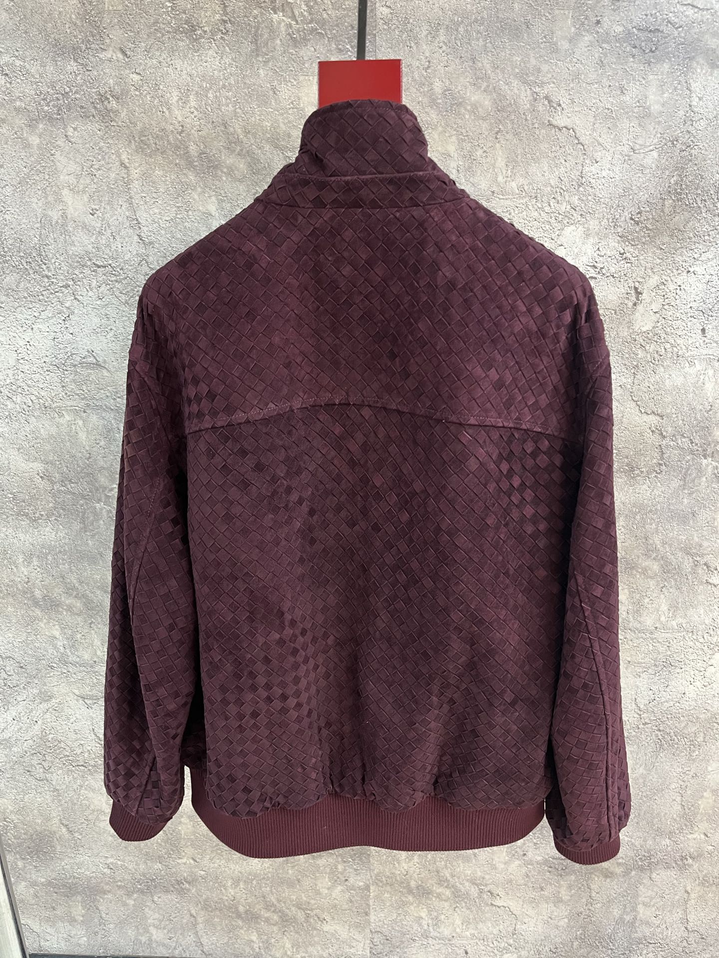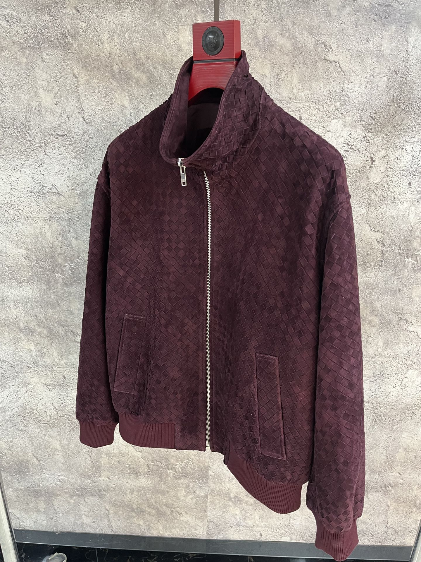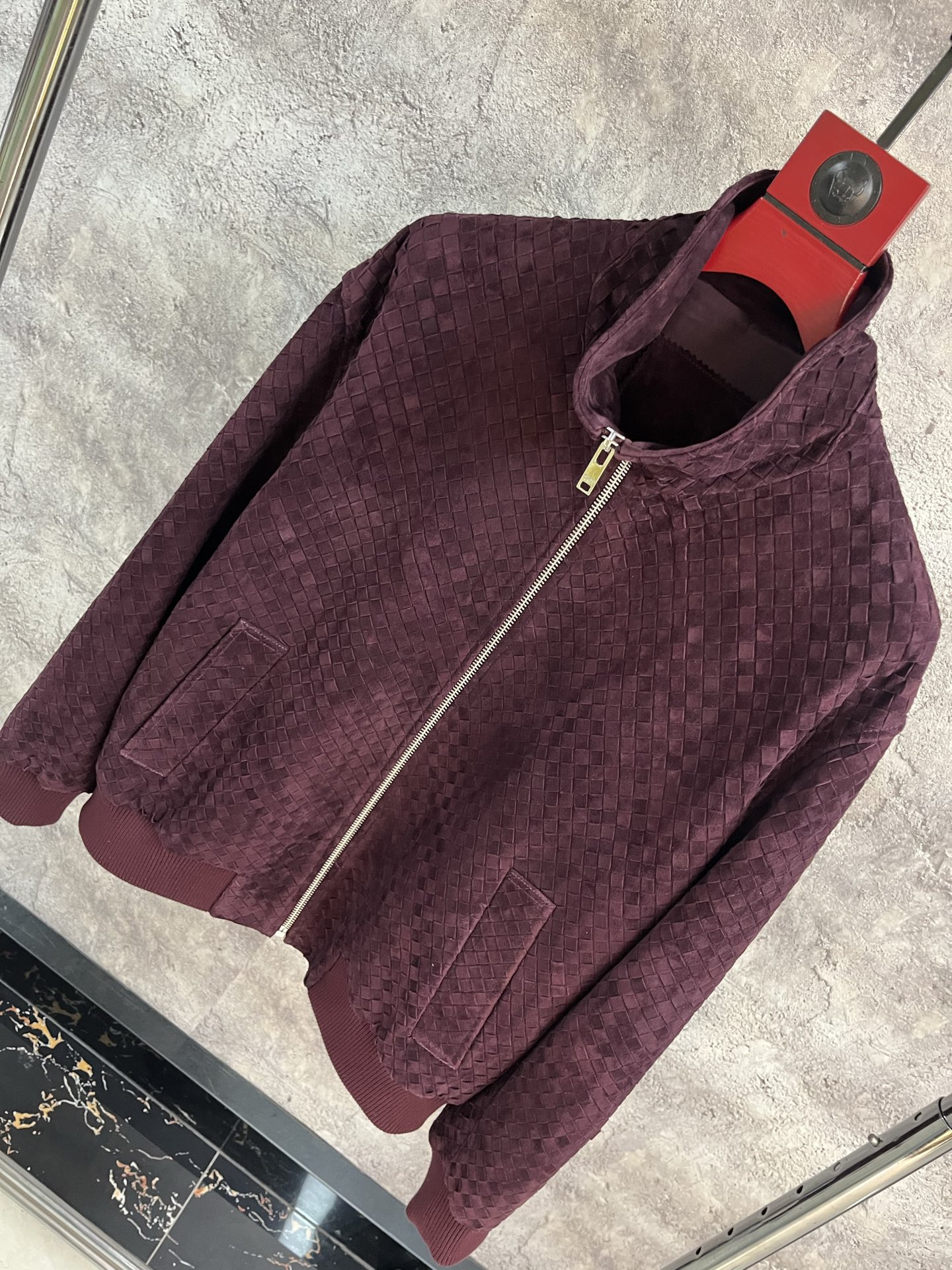 Мужская куртка от Bottega Veneta выполнена из высококачественной овечьей замши, что придаёт ей роскошный и элегантный вид.