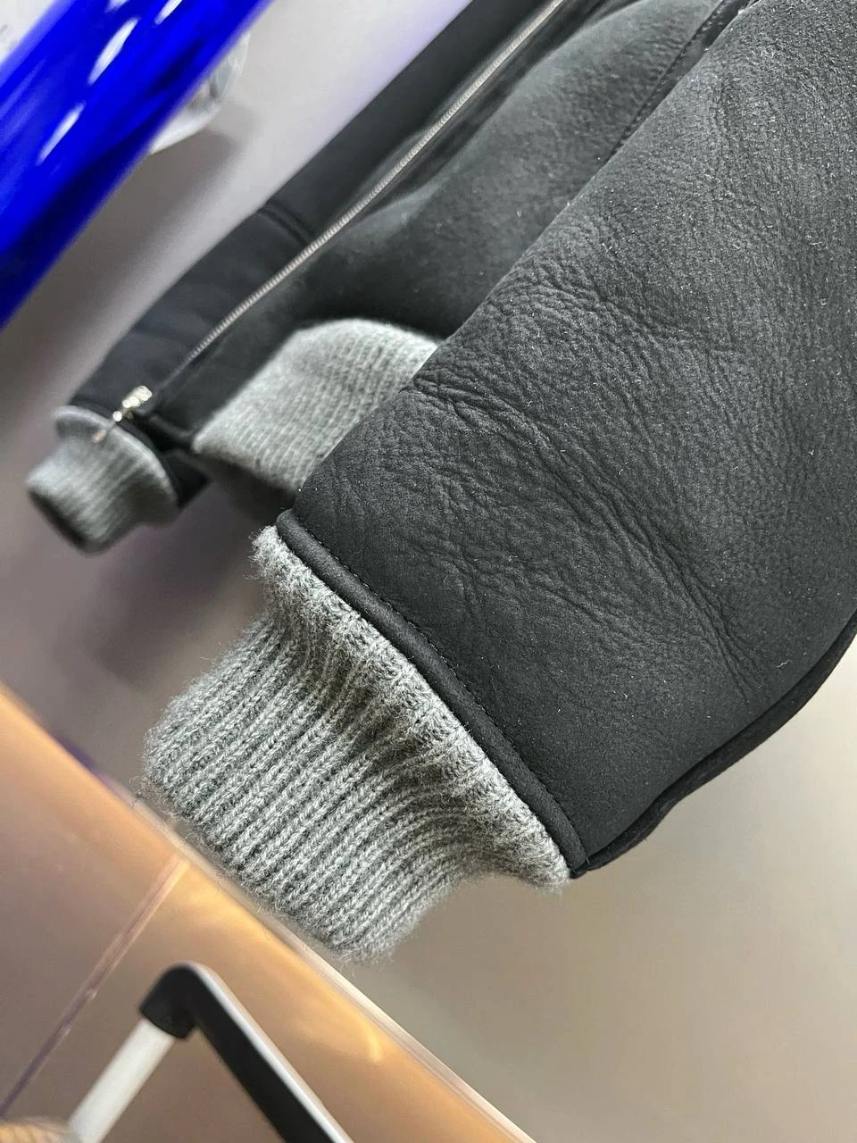 • Подол и манжеты: вязаный эластичный трикотаж серого цвета для комфортной посадки и защиты от продувания.