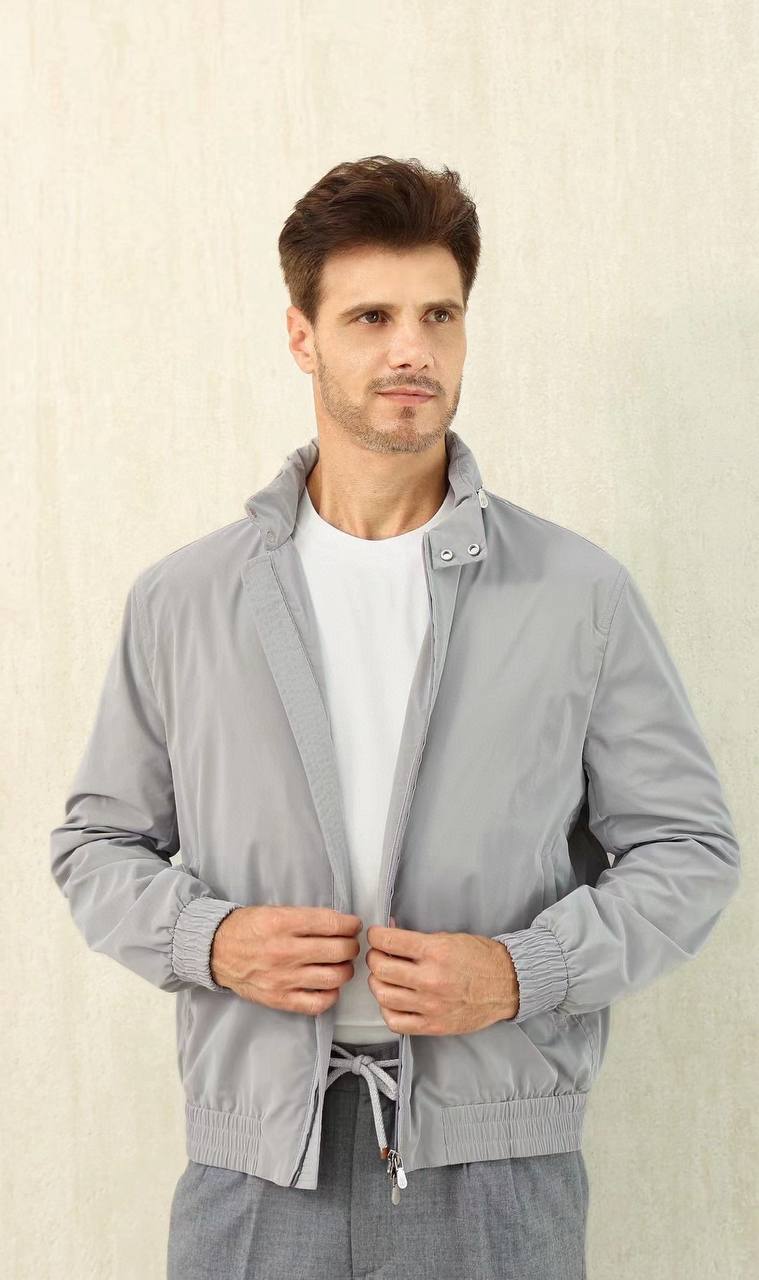 Куртка выполнена в сдержанном светло-сером оттенке, который отлично сочетается с различными стилями и цветами гардероба. Модель отличается минималистичным дизайном с прямым кроем и высоким воротником на кнопках, обеспечивающим дополнительную защиту от ветра. Центральная застёжка на молнию придаёт куртке современный и практичный вид. Манжеты и нижняя часть изделия оформлены эластичными сборками, которые обеспечивают комфортную посадку и защищают от проникновения холодного воздуха. Куртка изготовлена из качественных материалов, что гарантирует долговечность и комфорт в носке. Идеальный выбор для стильного и функционального образа в межсезонье.