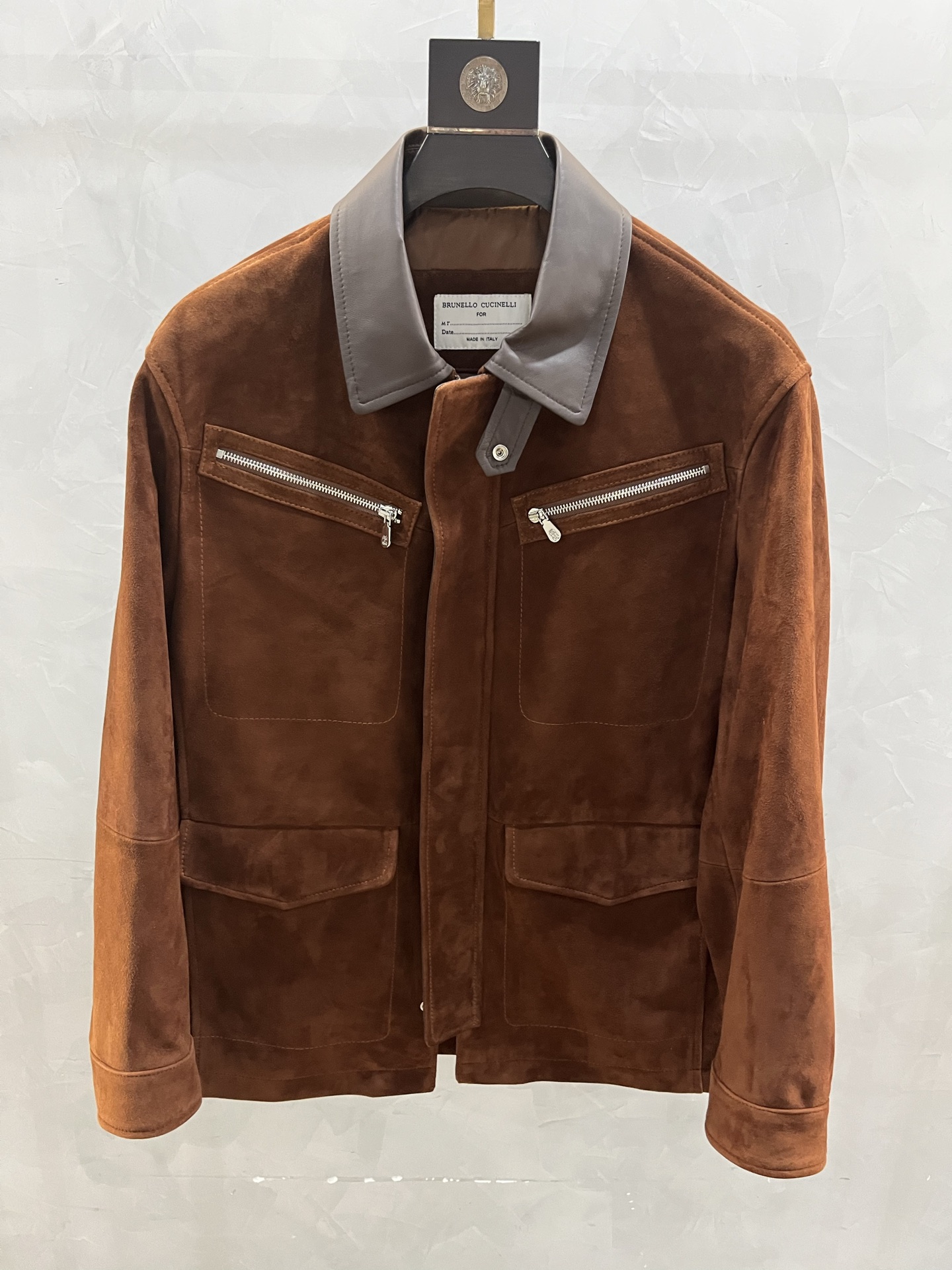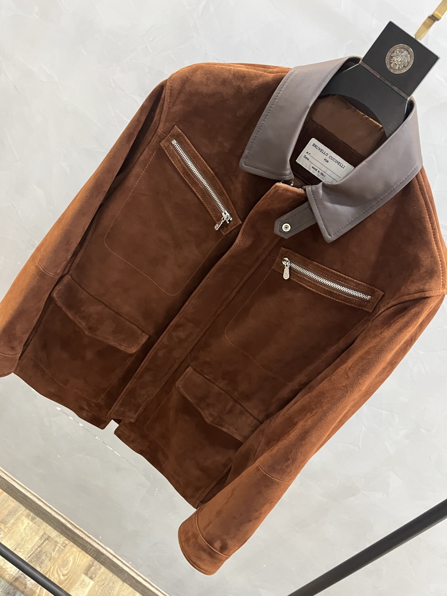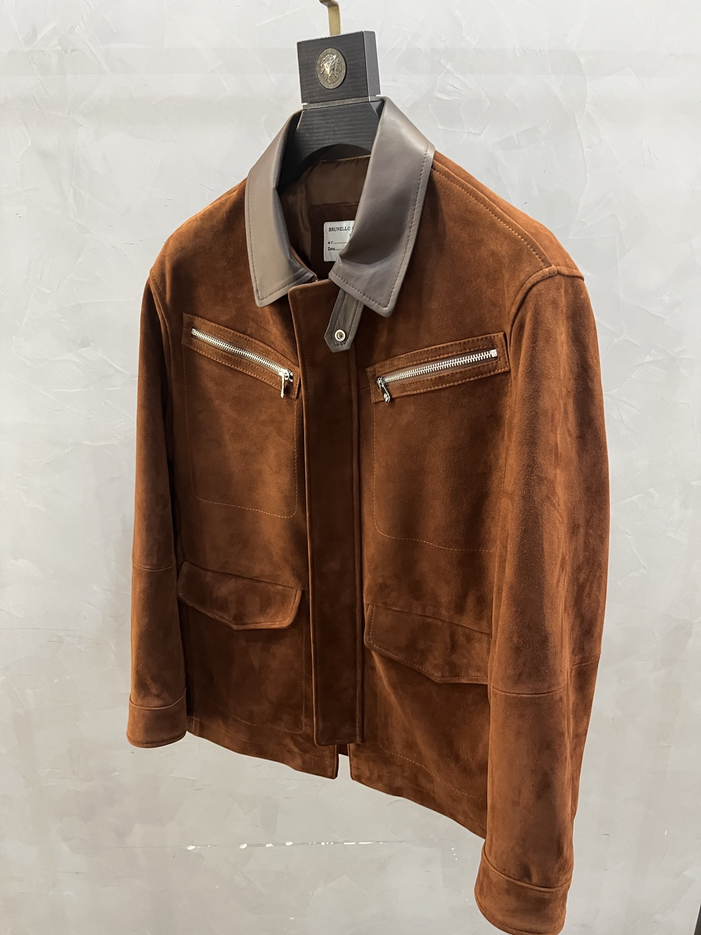 BRUNELLO CUCINELLI Мужская куртка из замши с контрастным воротником