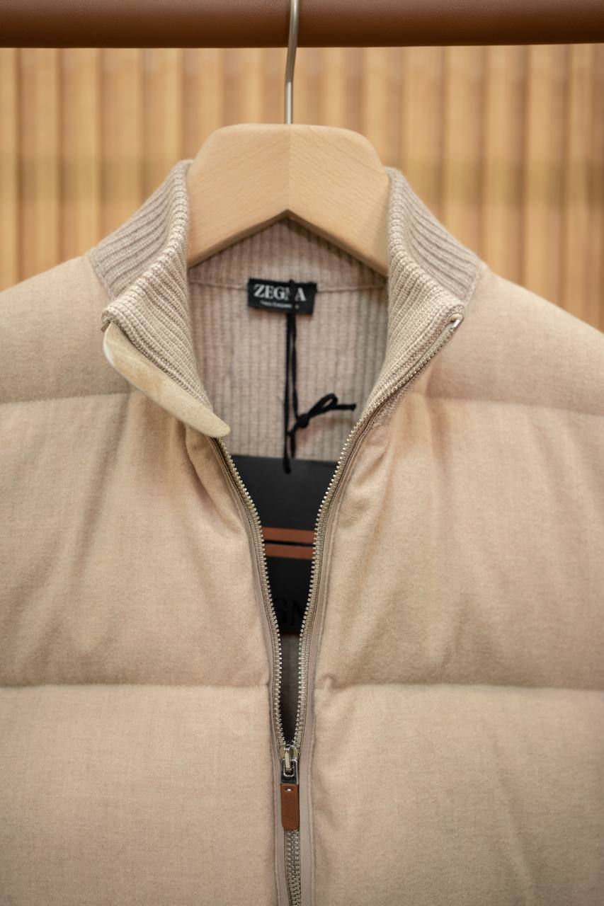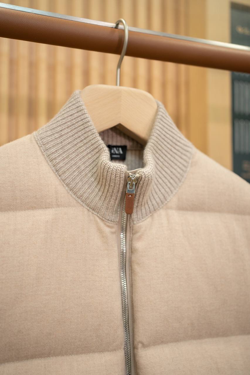 Элегантная многослойная куртка Ermenegildo Zegna в сдержанном бежевом оттенке сочетает в себе теплоту стёганой панели и комфорт трикотажных рукавов. Минималистичный дизайн, двухнаправленная молния и аккуратная отделка делают модель идеальной для городского smart-casual гардероба.