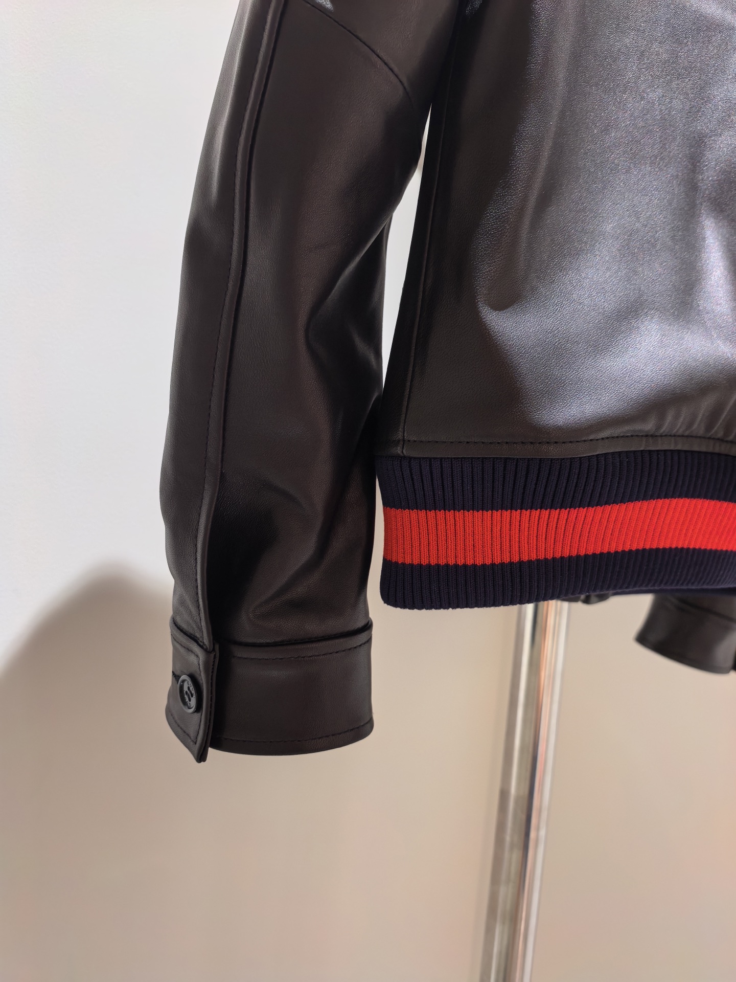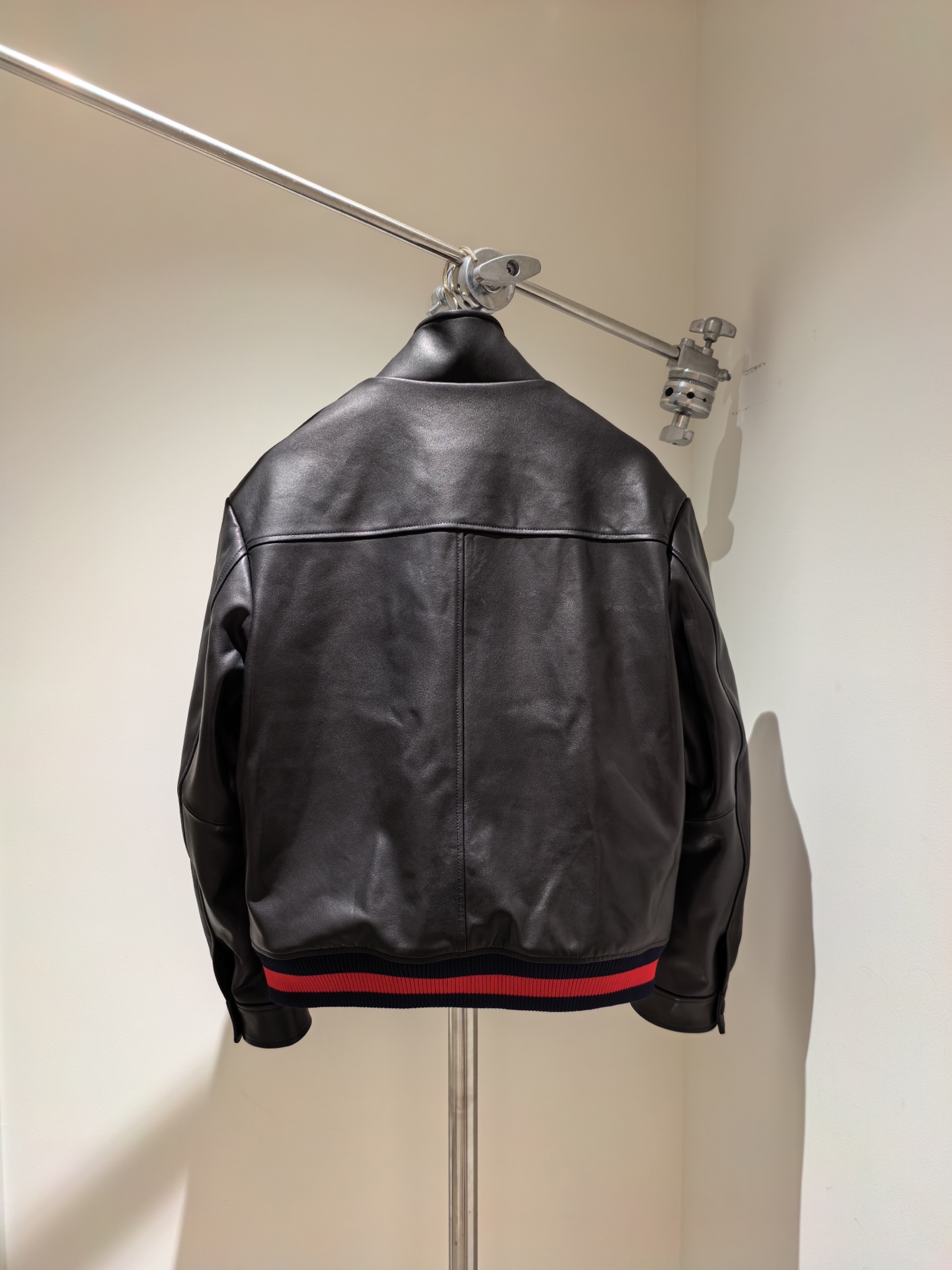 Мужская кожаная куртка Gucci выполнена в лаконичном и современном дизайне. Модель изготовлена из высококачественной черной гладкой кожи, что придает изделию элегантный вид.