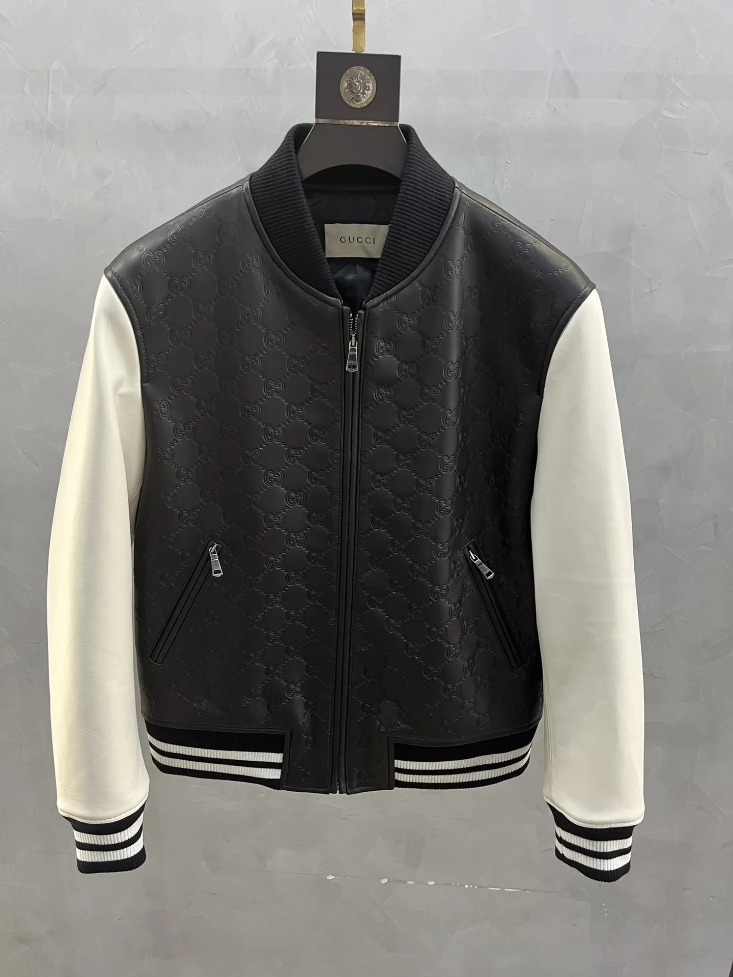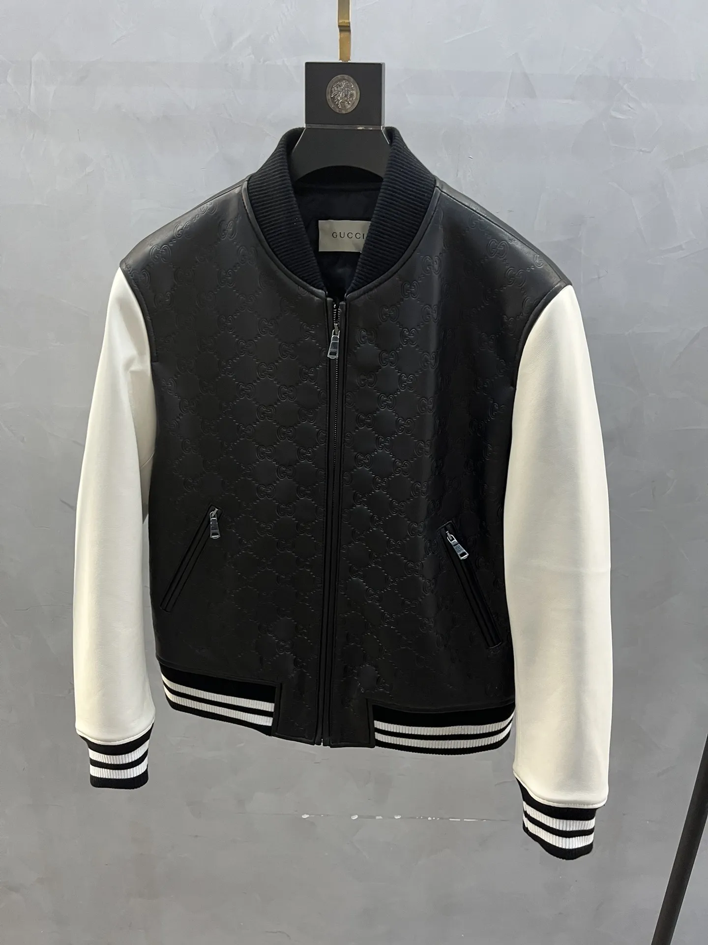 Мужской кожаный бомбер от Gucci из овчины, который воплощает в себе элегантность и современный стиль.