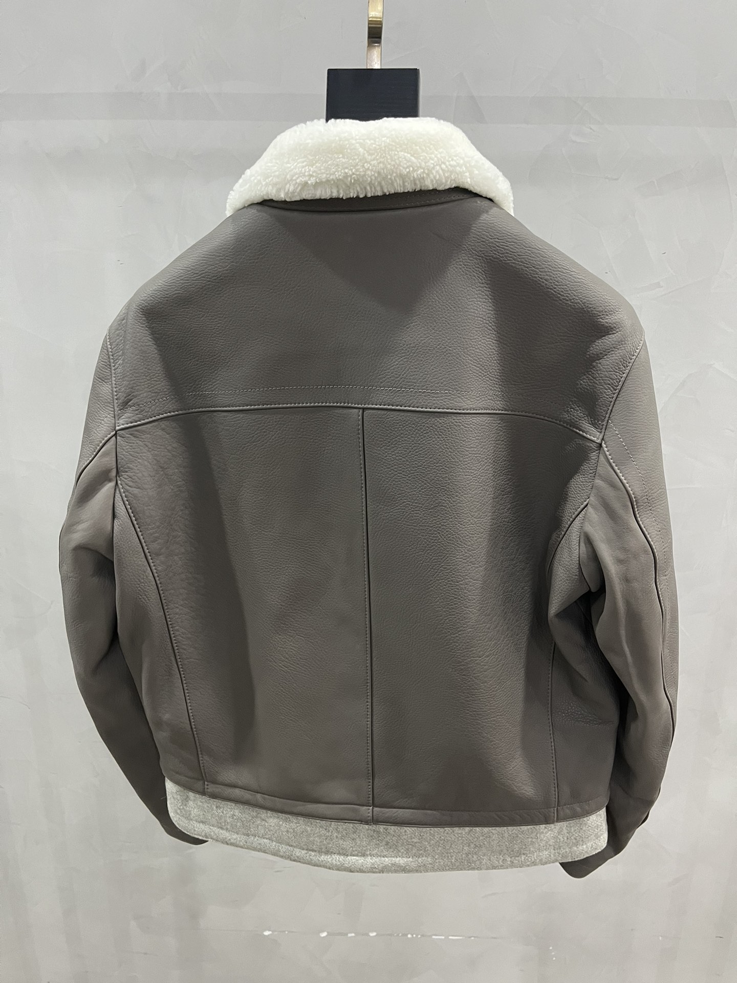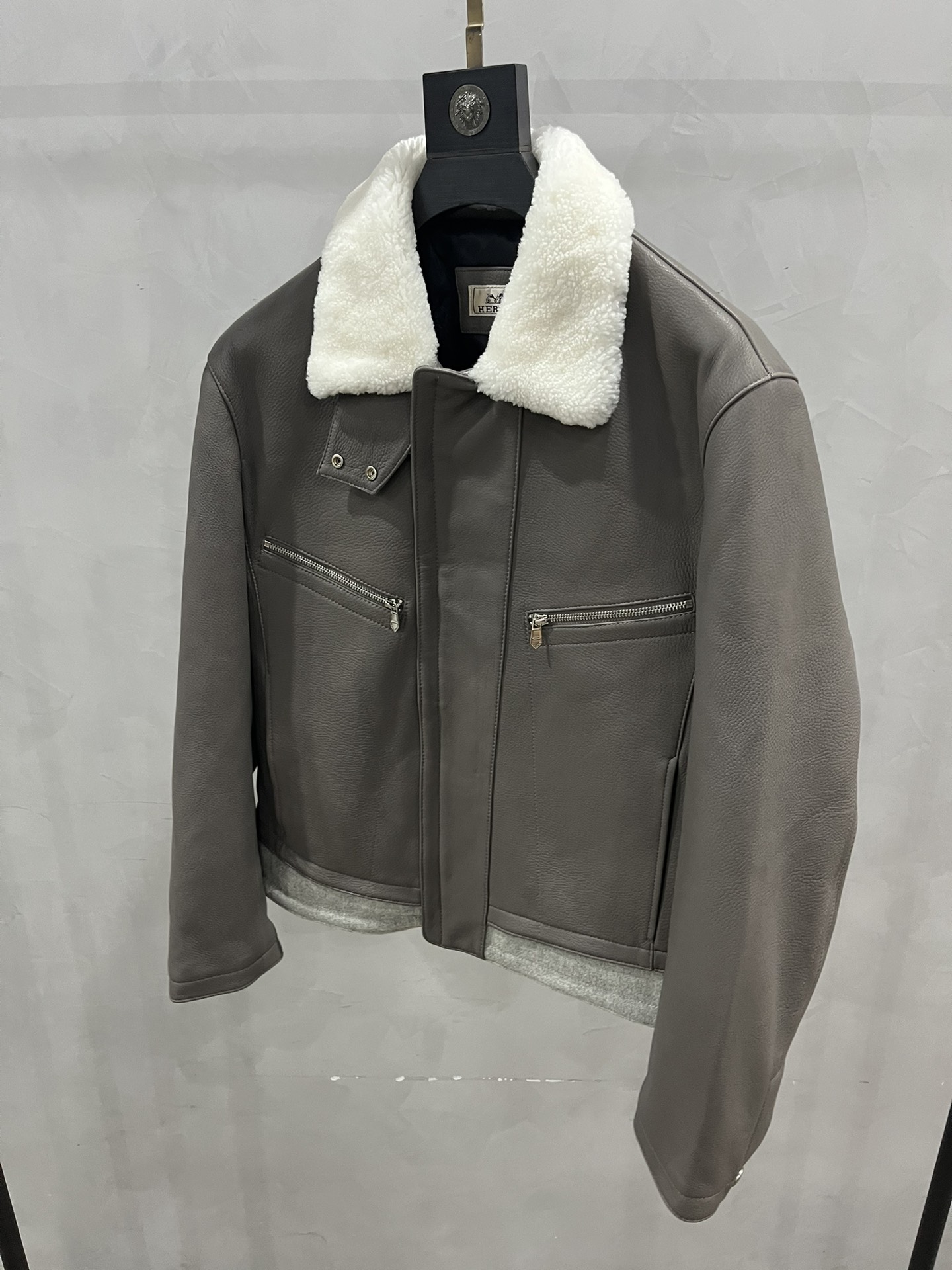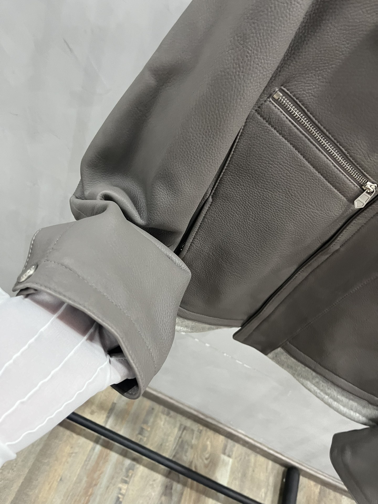 Особое внимание привлекает мягкий белый меховой воротник, добавляющий образу нотку роскоши и обеспечивающий дополнительное тепло в прохладную погоду. Два функциональных нагрудных кармана на молнии подчеркивают современный дизайн и практичность изделия.