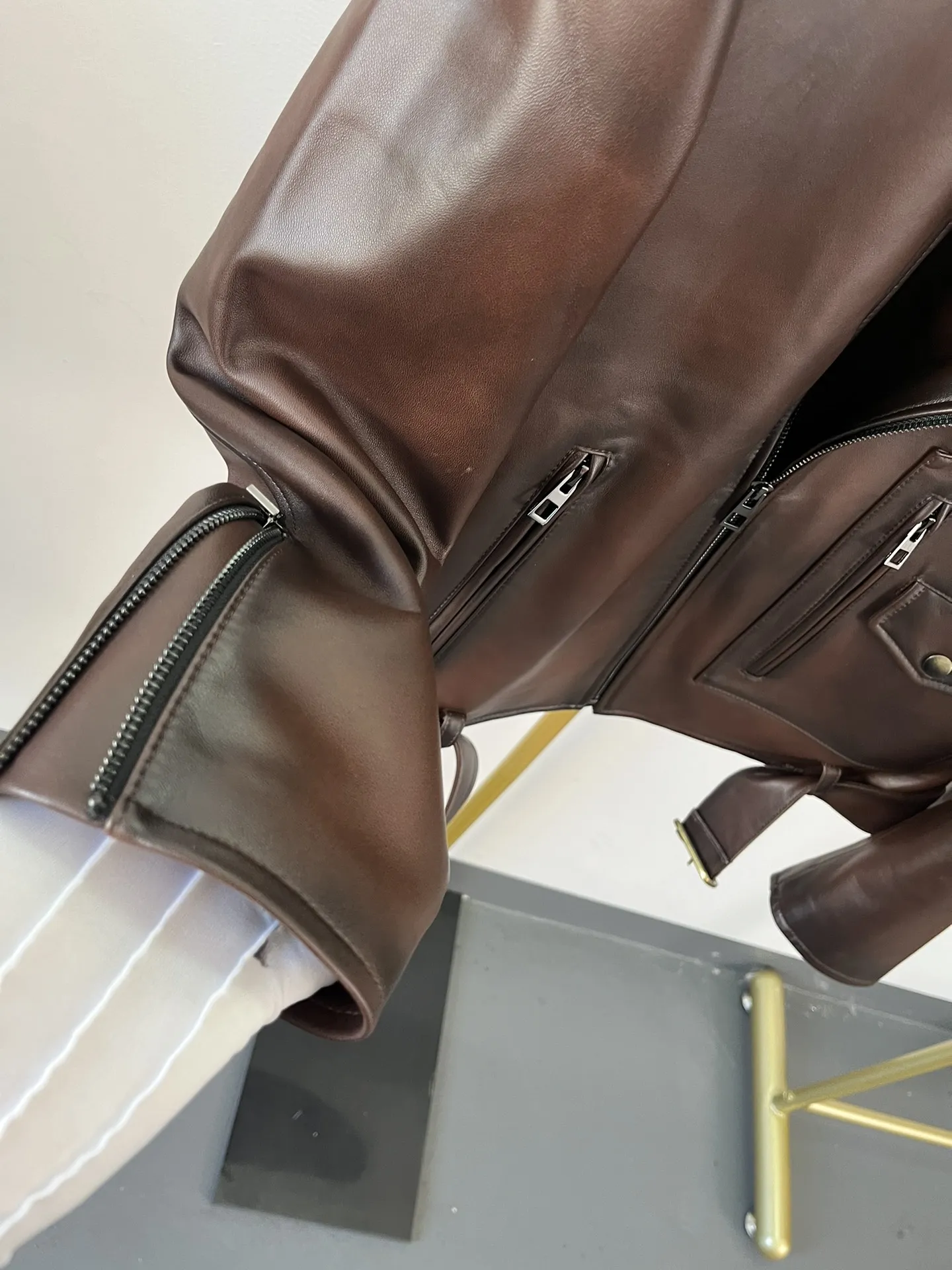 Мужская кожаная куртка от Loewe — воплощение элегантности и современного стиля. Изготовленная из высококачественной кожи, она отличается глубоким коричневым оттенком, который придаёт изделию роскошный и утончённый вид.