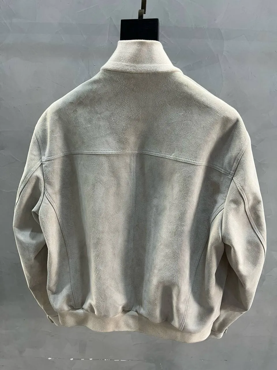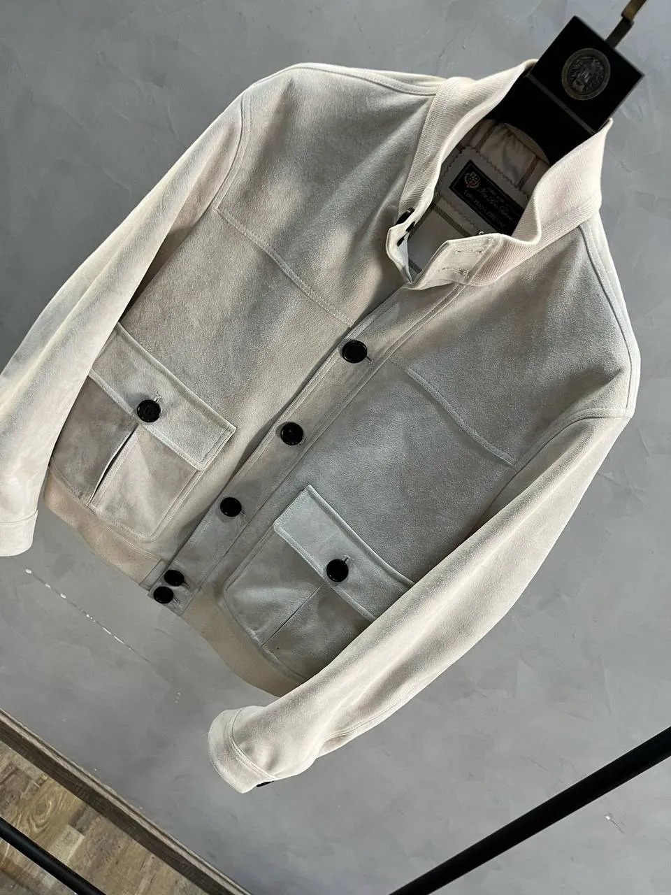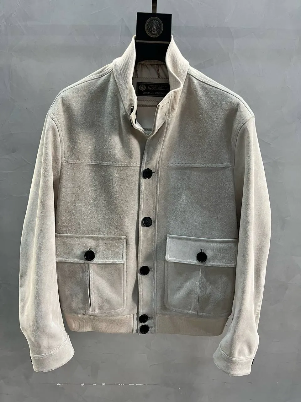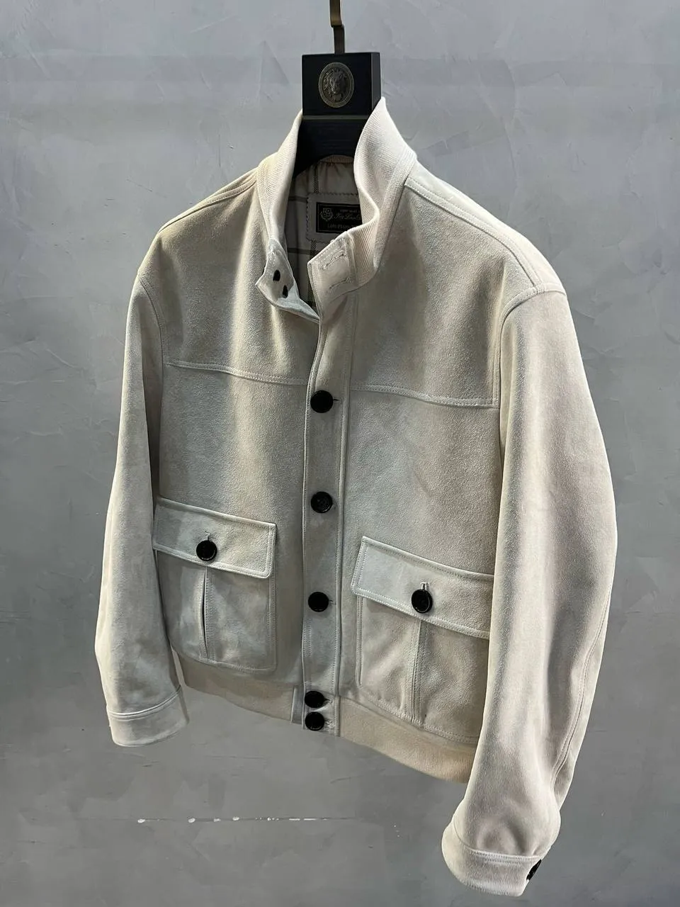 Мужская кожаная куртка от Loro Piana — воплощение безупречного итальянского стиля и первоклассного качества. Изготовленная из мягкой замши светлого оттенка, куртка отличается лаконичным, но элегантным дизайном.