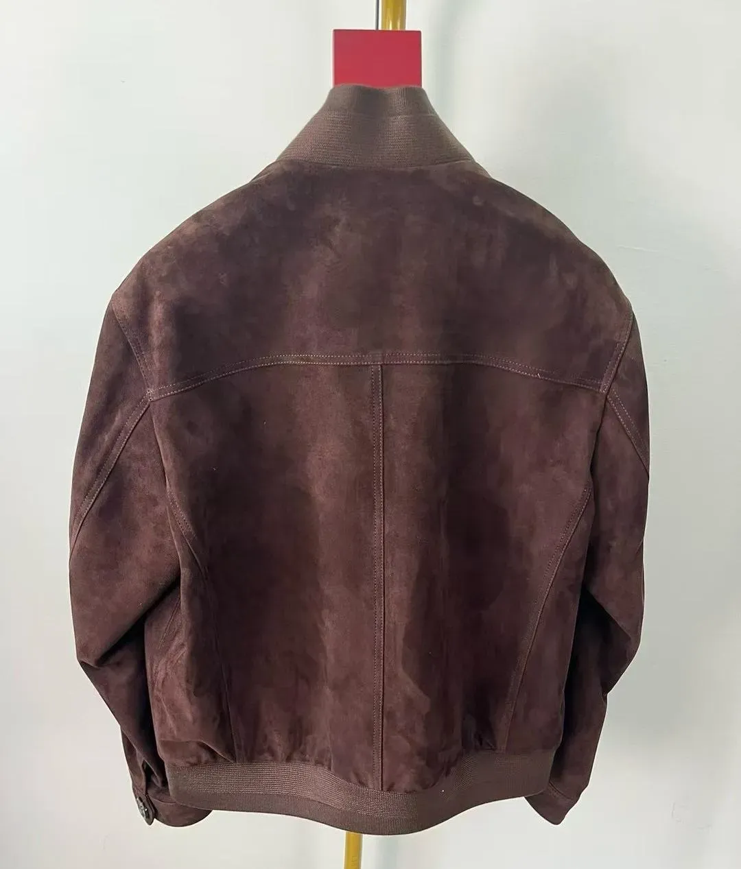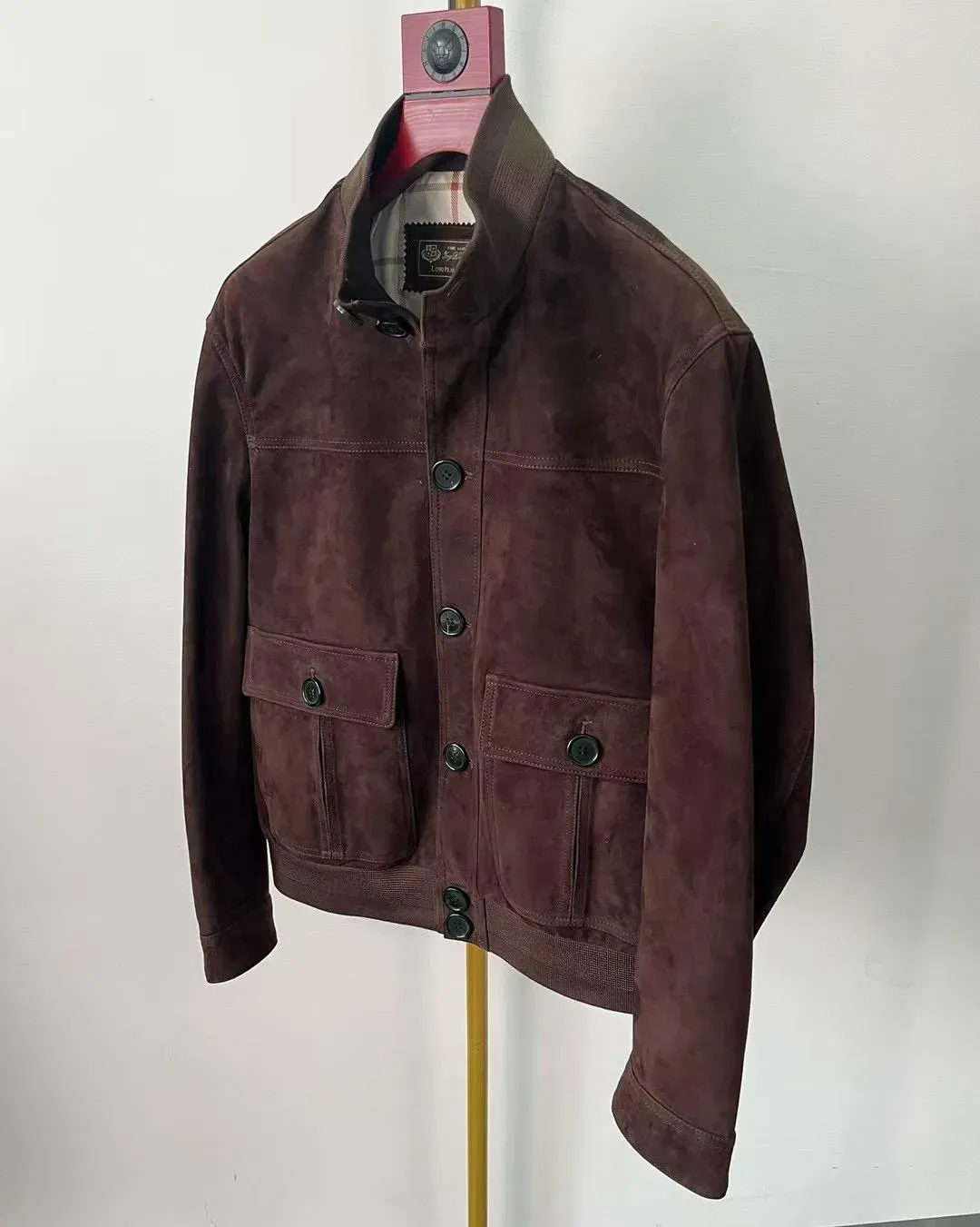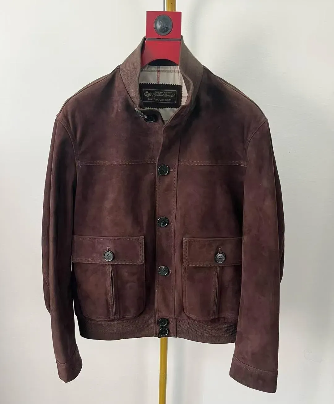 Мужская куртка от Loro Piana выполнена из высококачественной замши, что придаёт ей элегантный и утончённый вид.