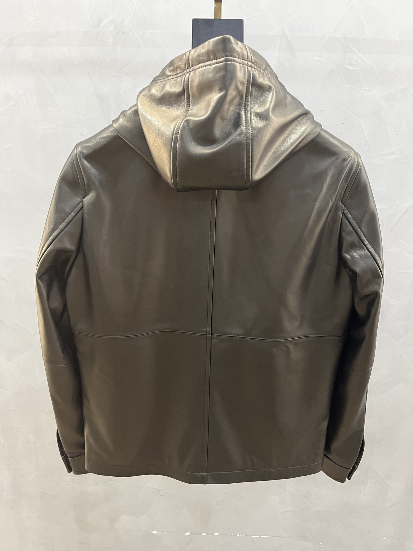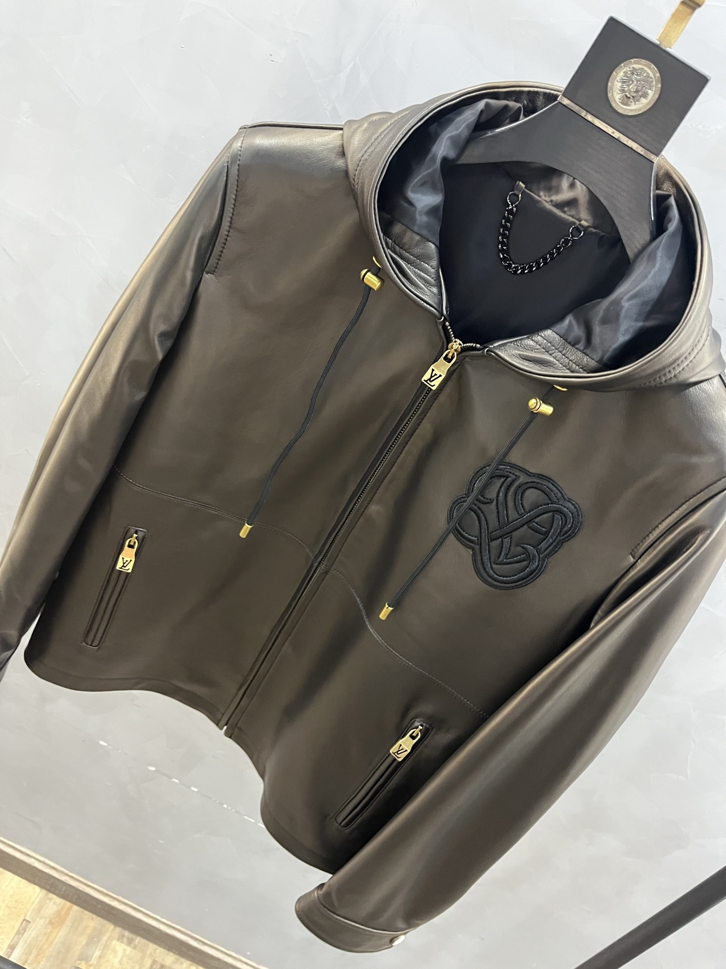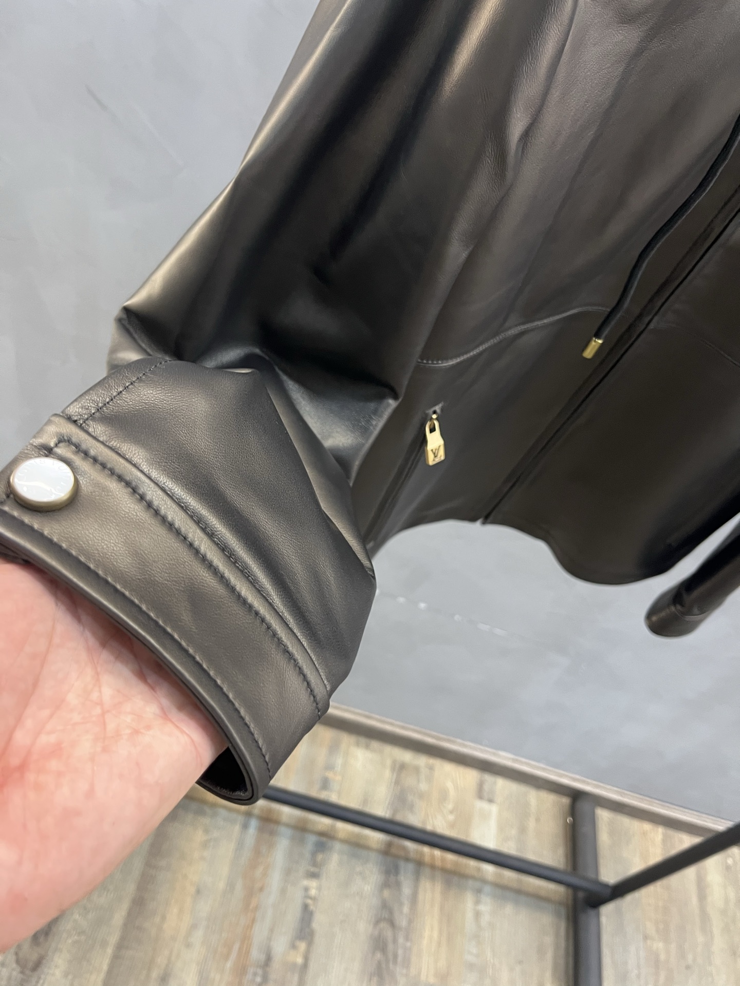 Мужская кожаная куртка от Louis Vuitton выполнена из мягкой натуральной овчины премиального качества. Куртка дополнена капюшоном с кулиской и металлическими наконечниками, а также застёжкой-молнией и прорезными карманами на молнии с гравировкой Louis Vuitton.