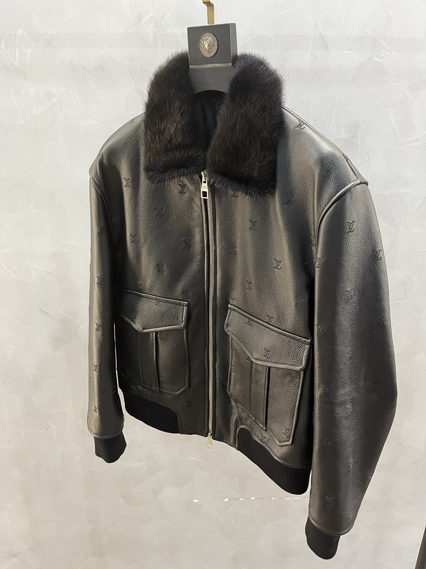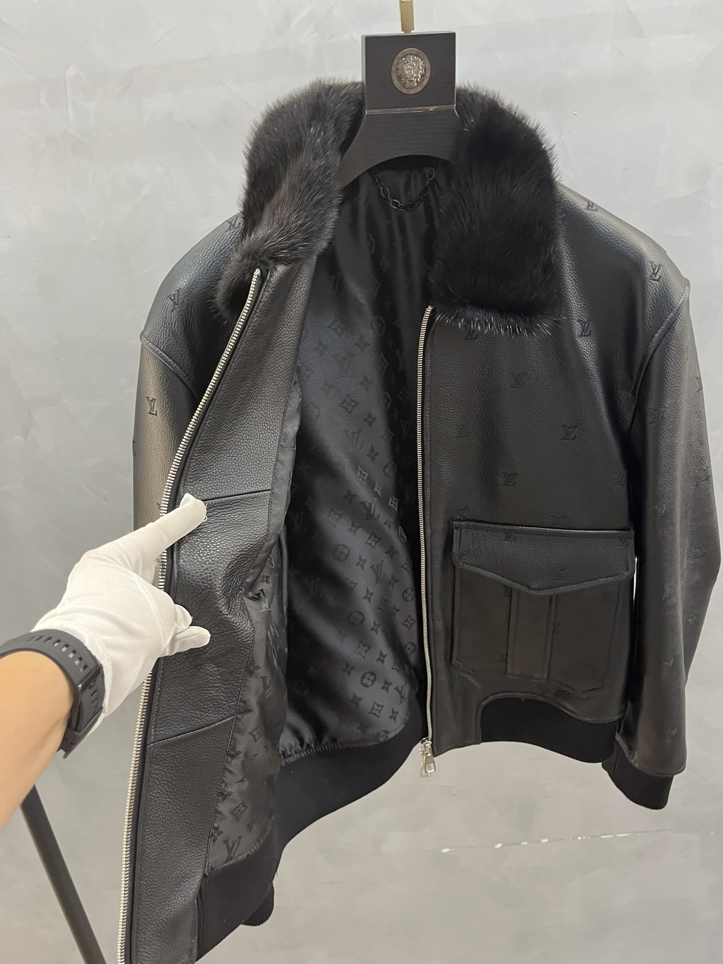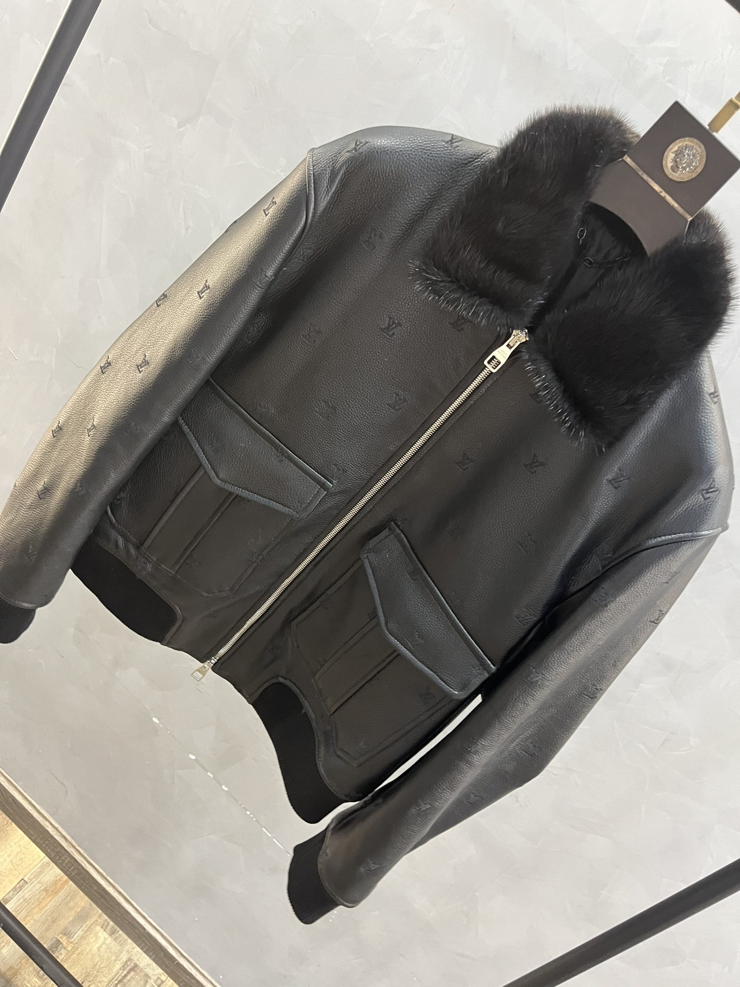 LOUIS VUITTON Мужская кожаная куртка с мехом