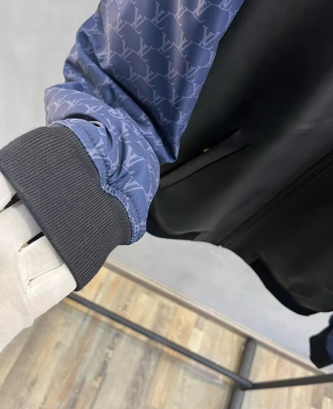 Рукава украшены фирменным узором LV Monogram в насыщенном синем цвете, который добавляет изысканный акцент и подчёркивает статус бренда. Классический отложной воротник и эластичные манжеты обеспечивают комфорт и идеальную посадку.